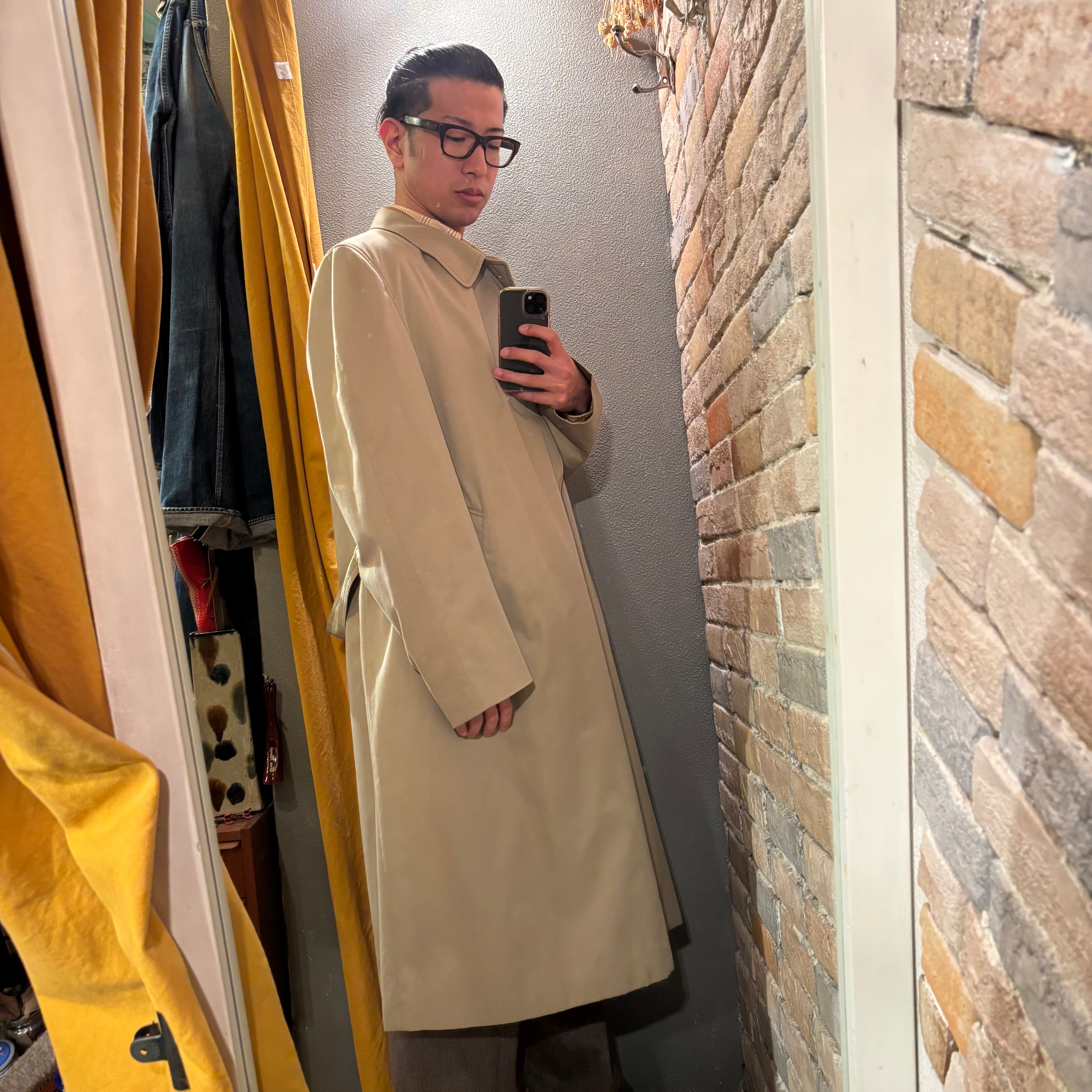 カチッとした肩の作りに長めの着丈、背中まで深く入るインバーテッドプリーツが特徴的なイングランド製ベルテッドコート。