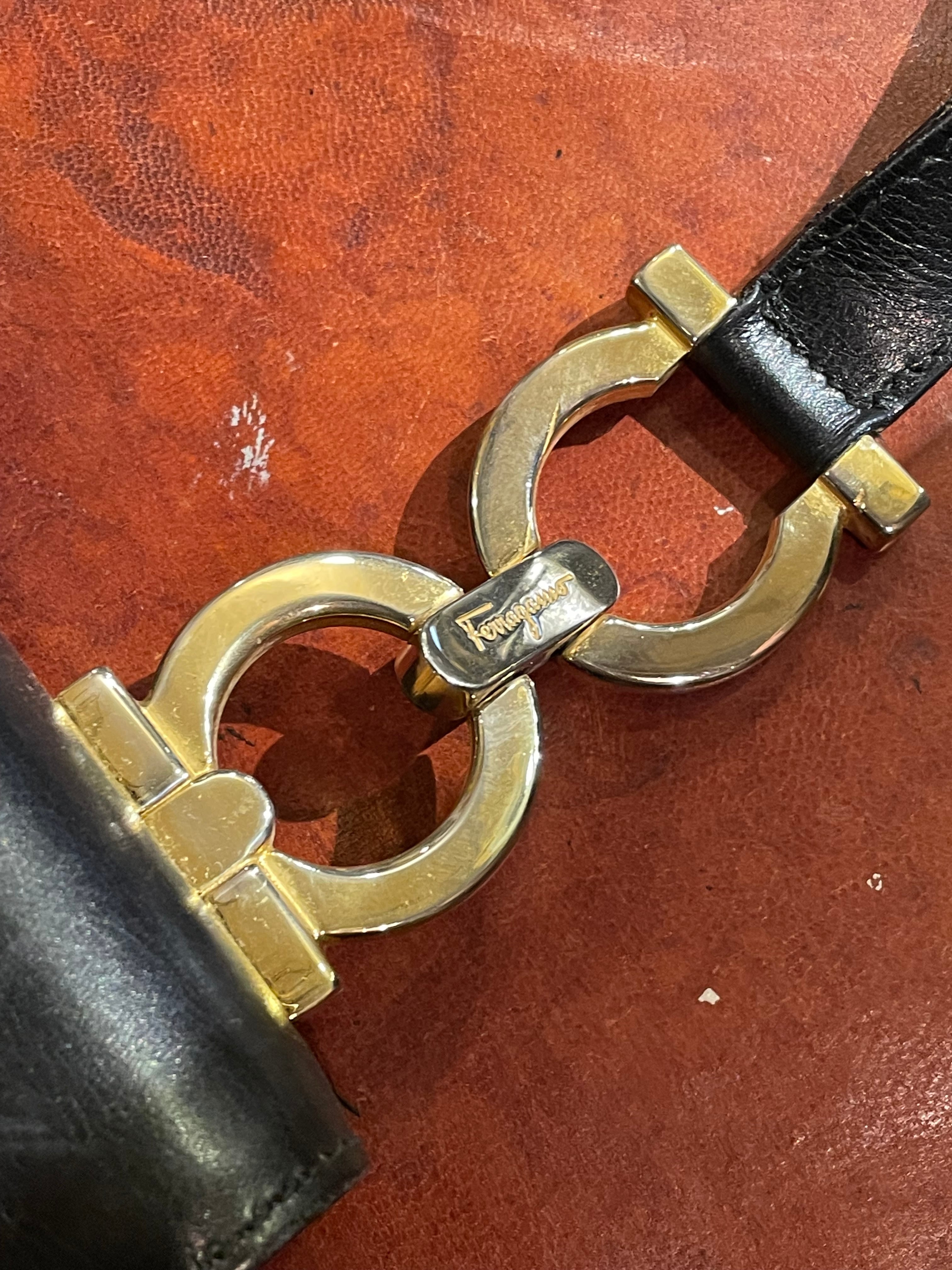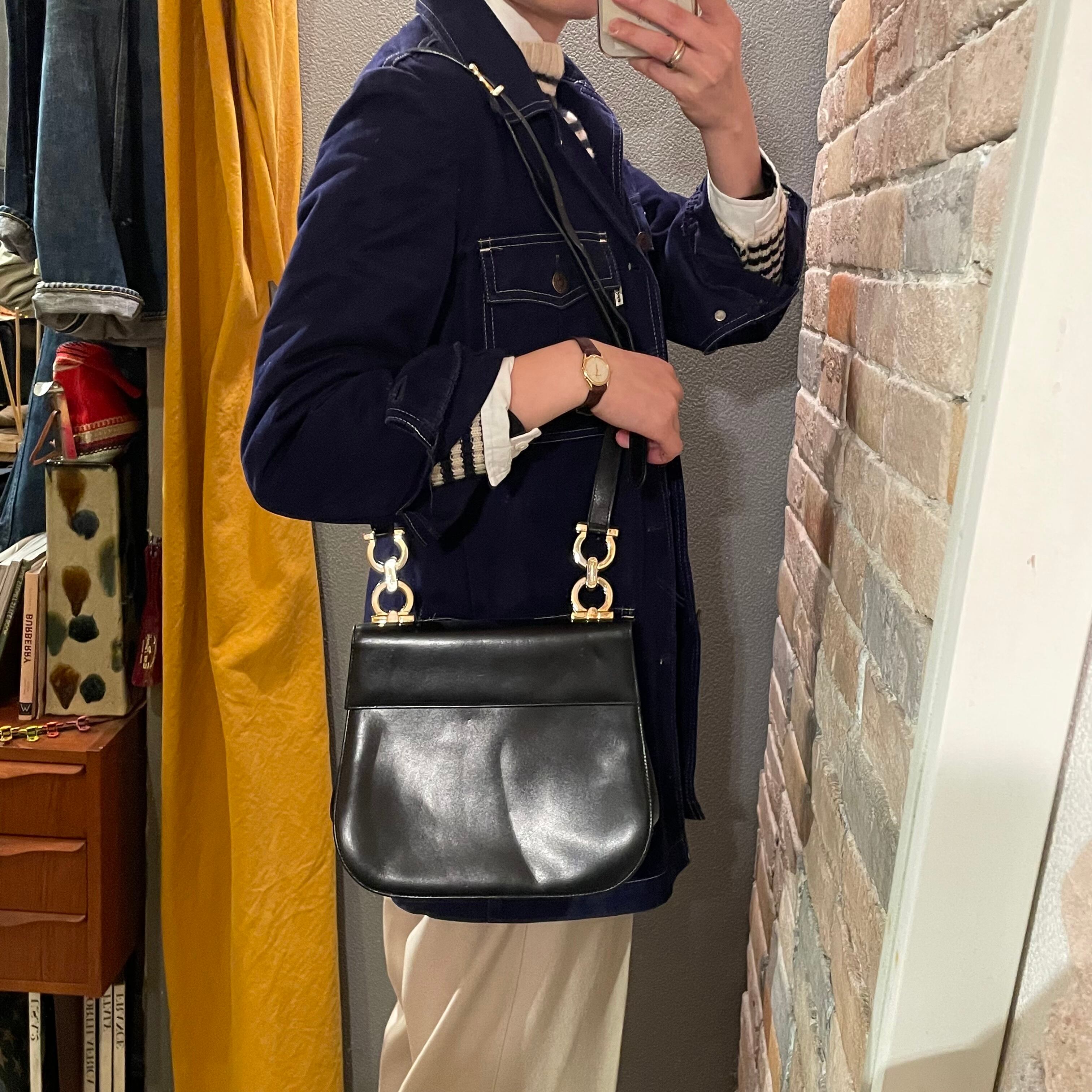 salvatore ferragamo “leather shoulder bag” black イタリア製 サルヴァトーレフェラガモ ガンチーニ ブラック