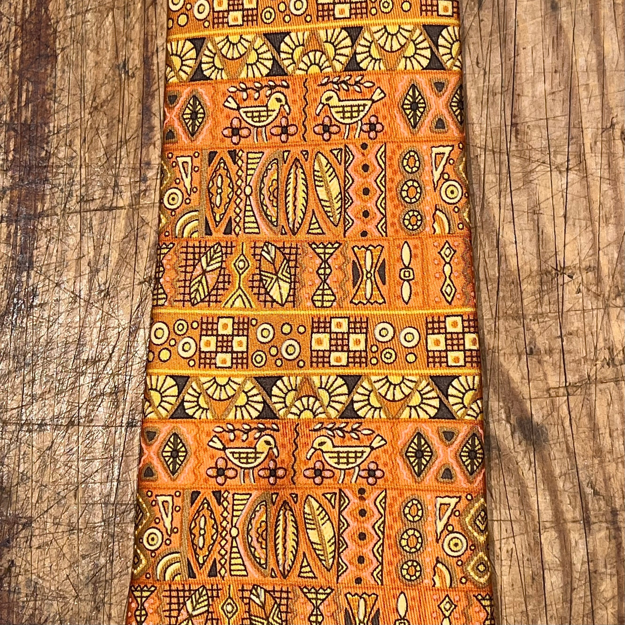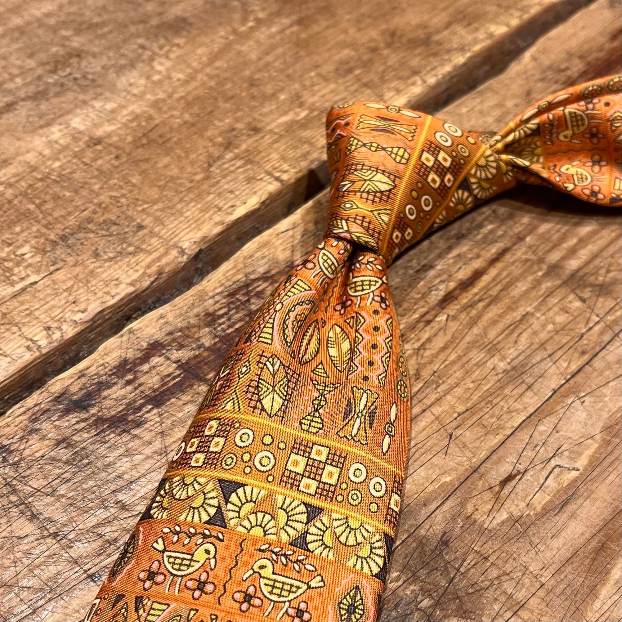 ポップな柄使いがコーディネートのポイントになるフランス製シルクタイ