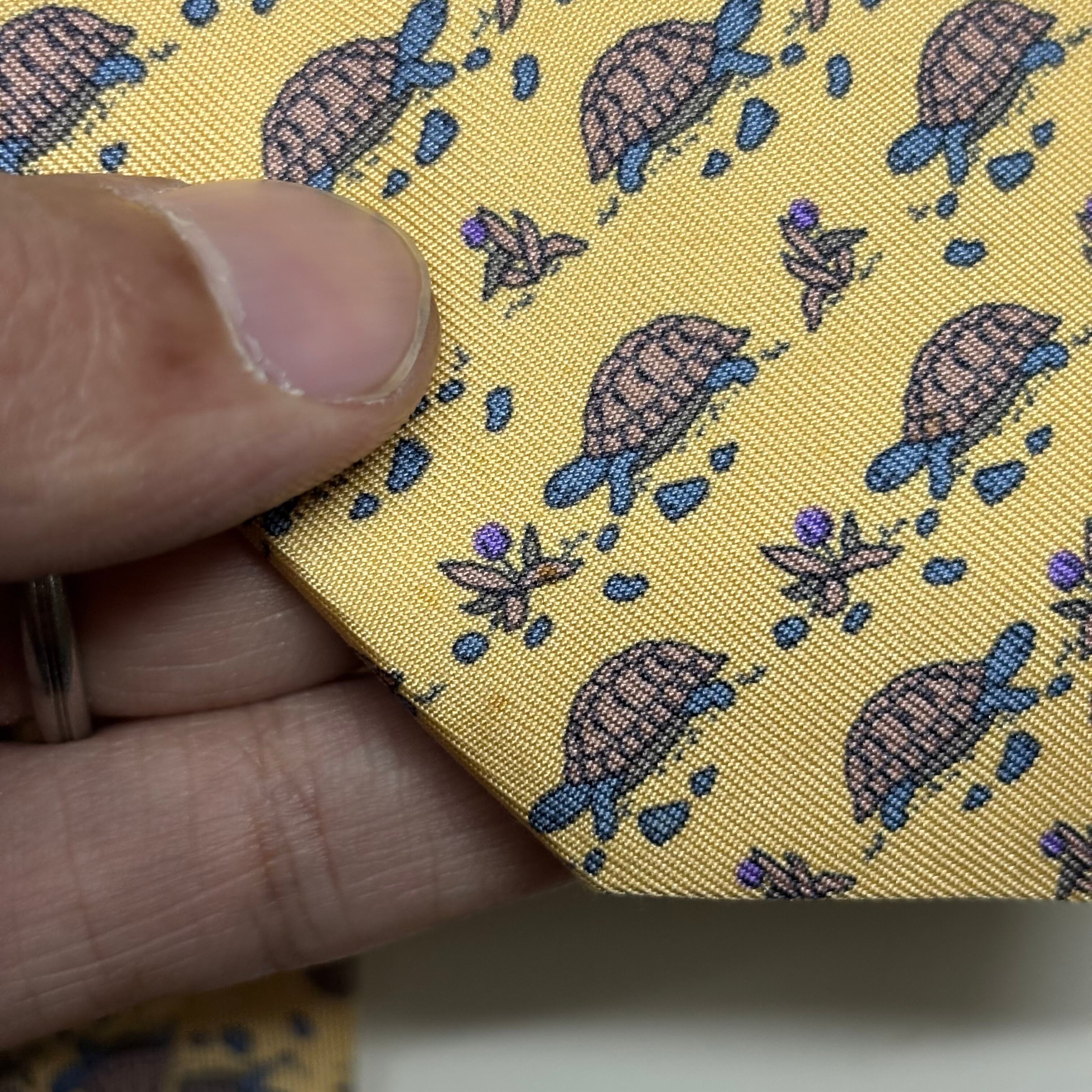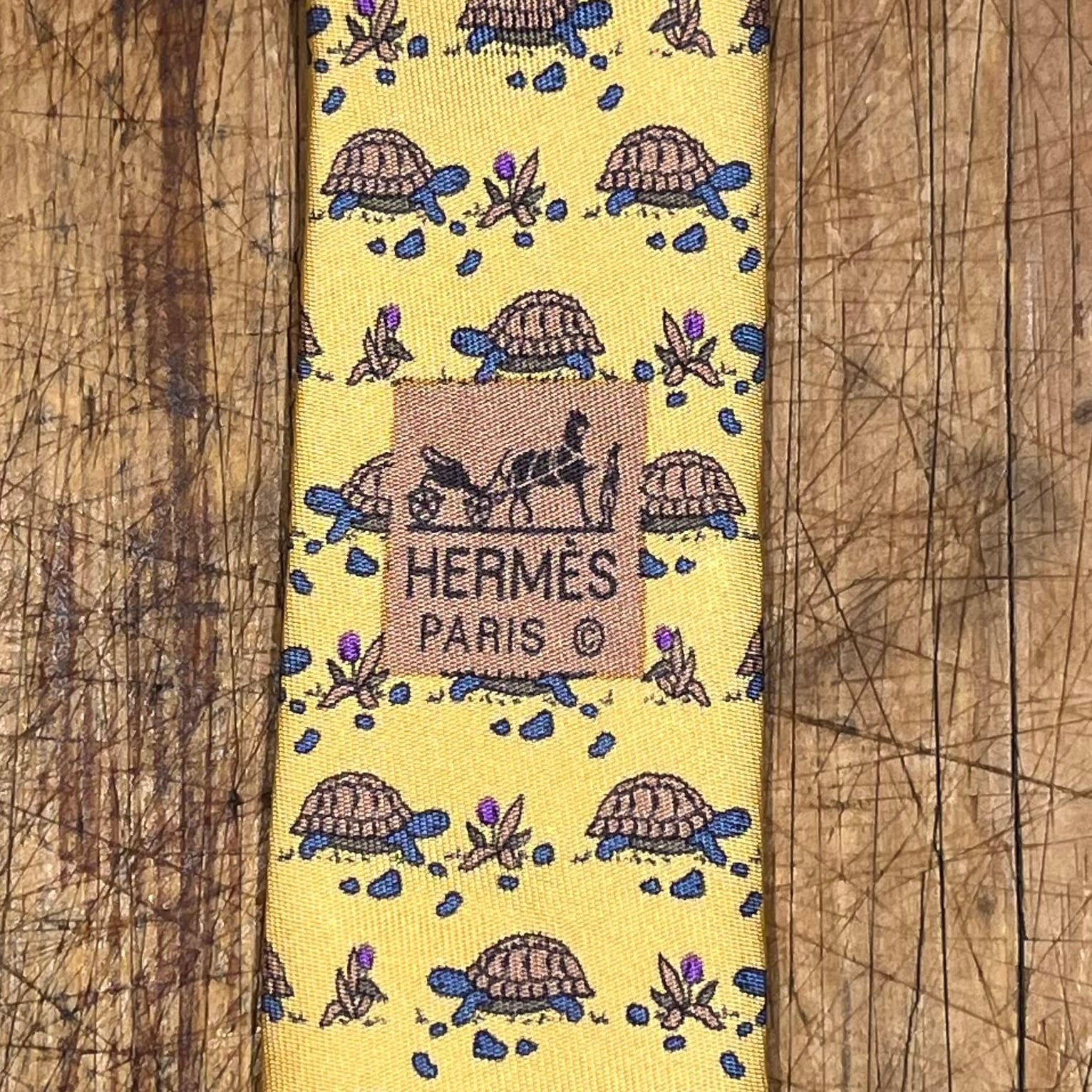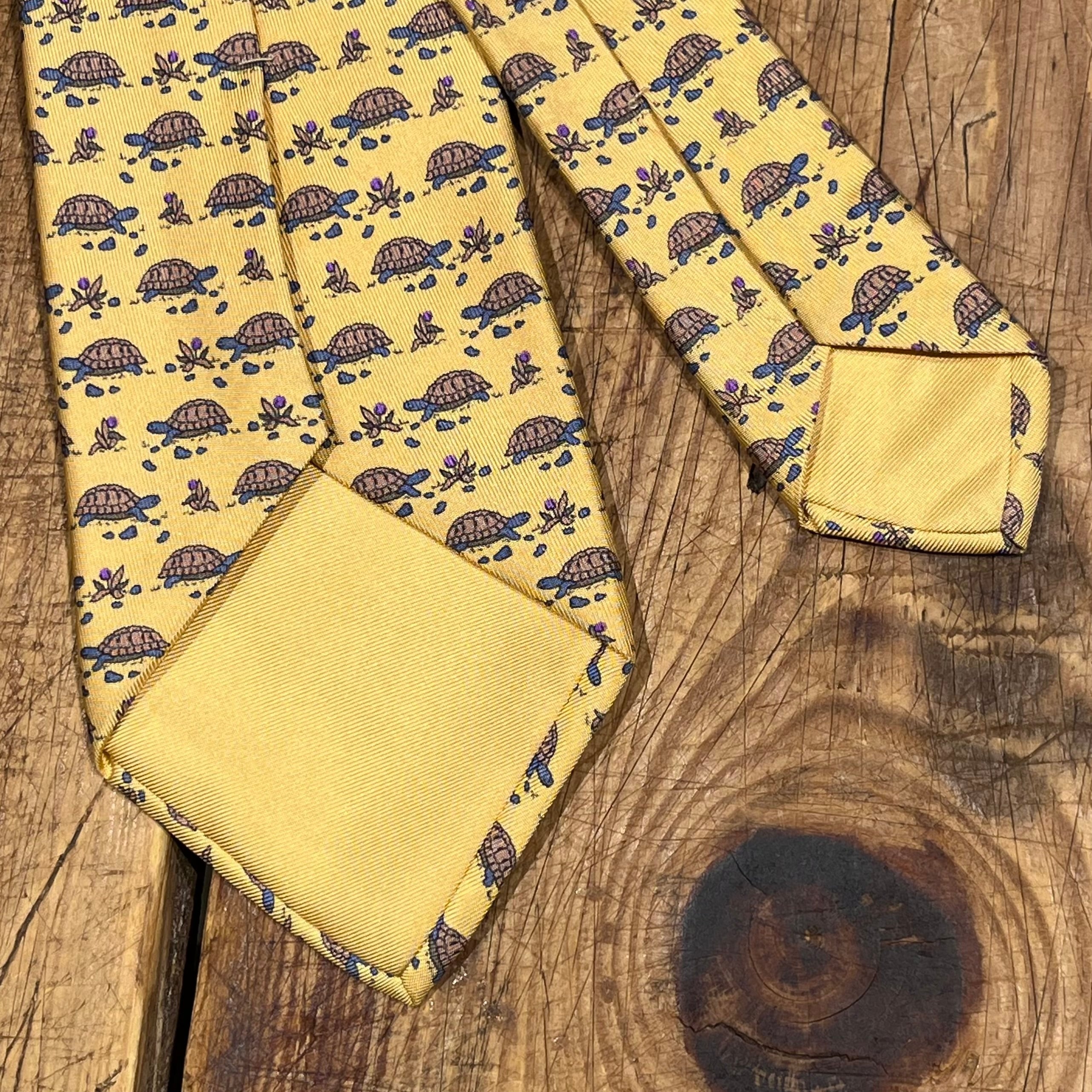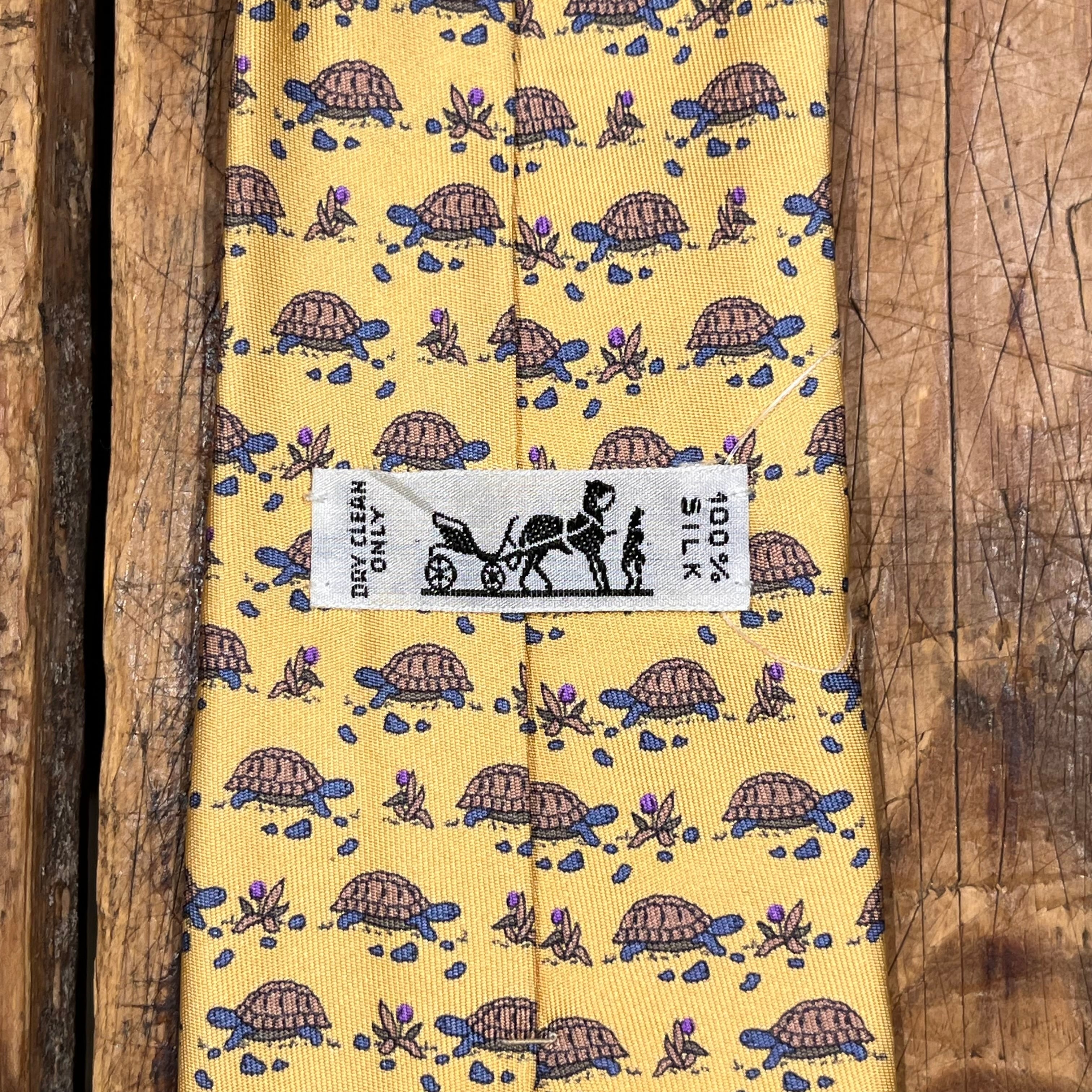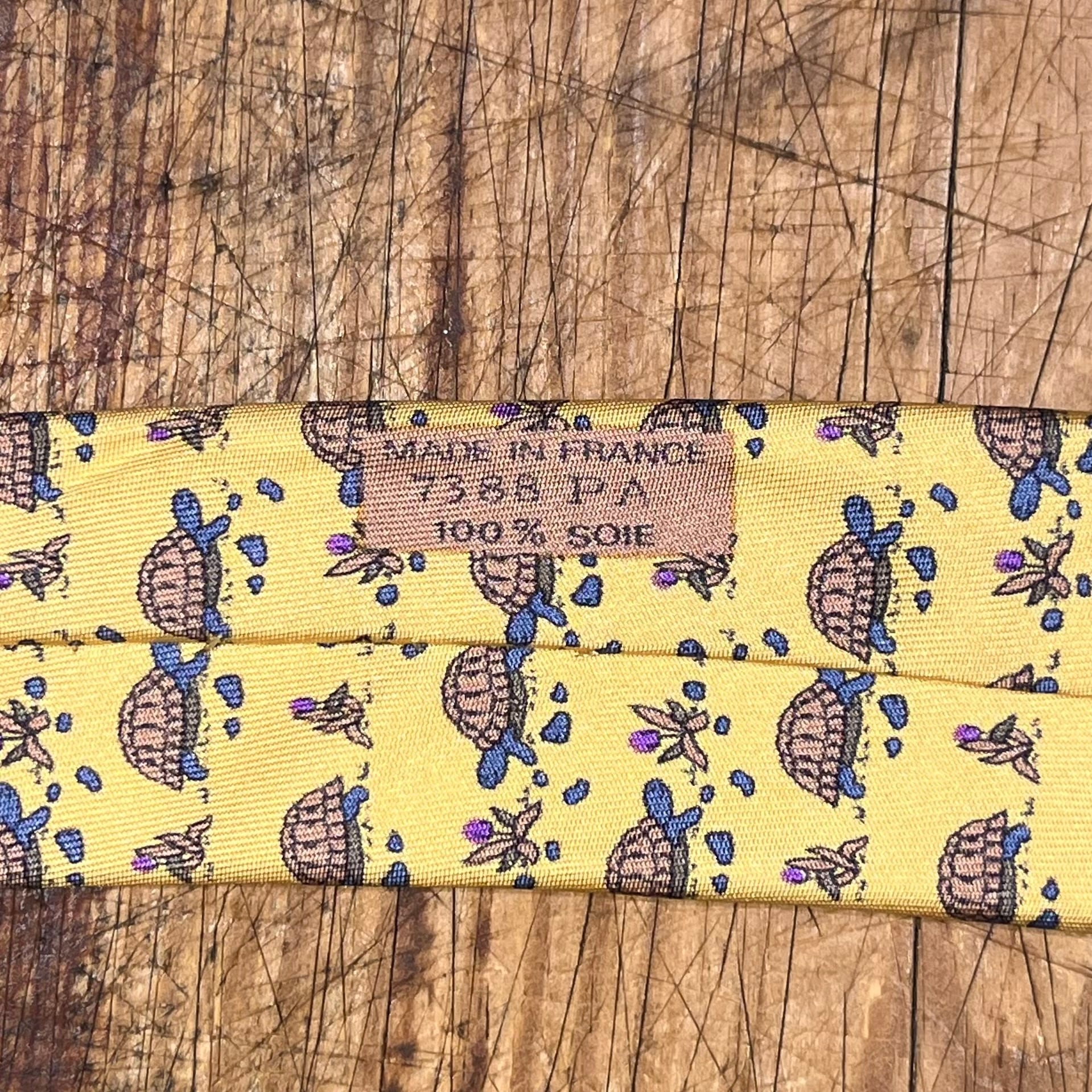 Hermes フランス製 シルクネクタイ イエロー 亀 エルメス