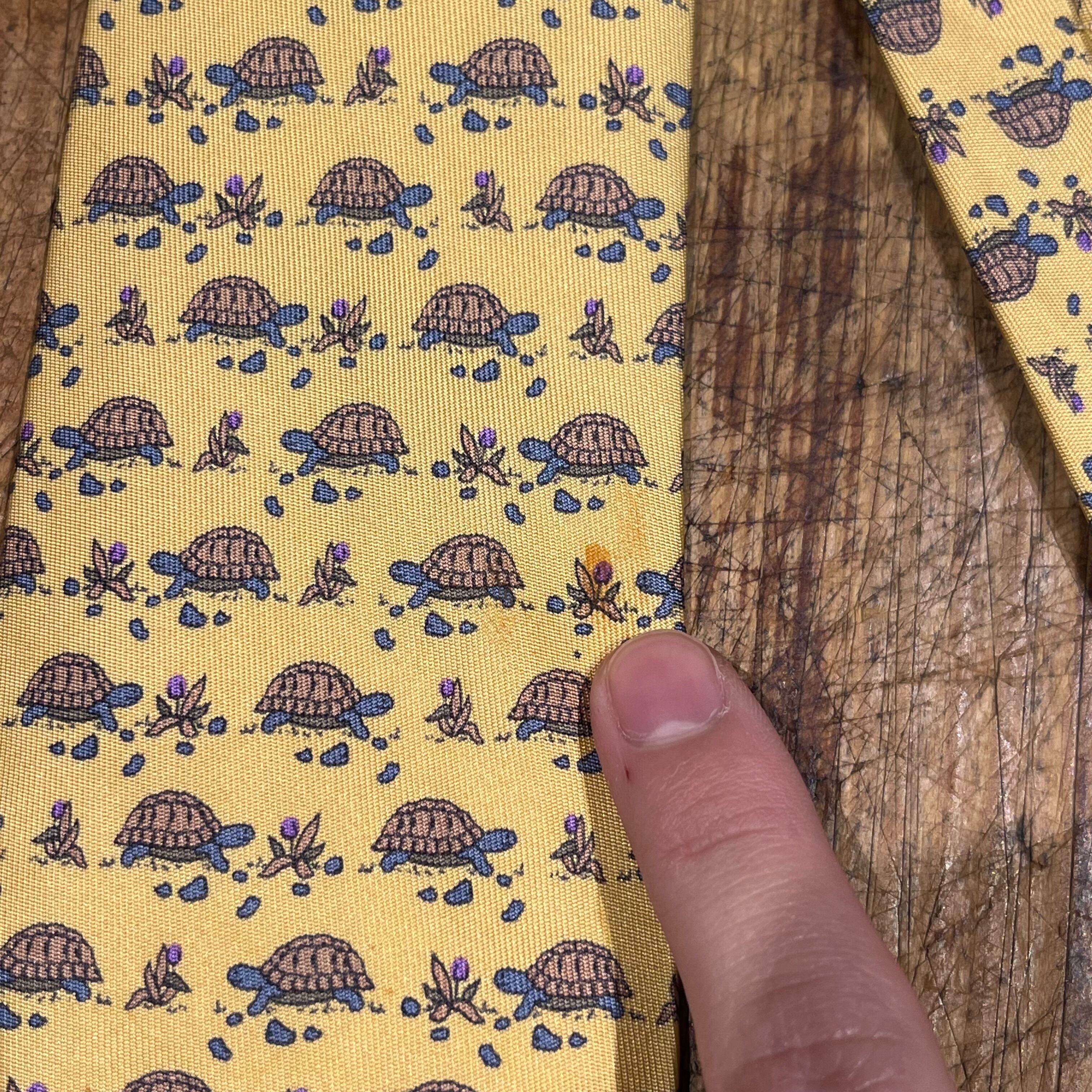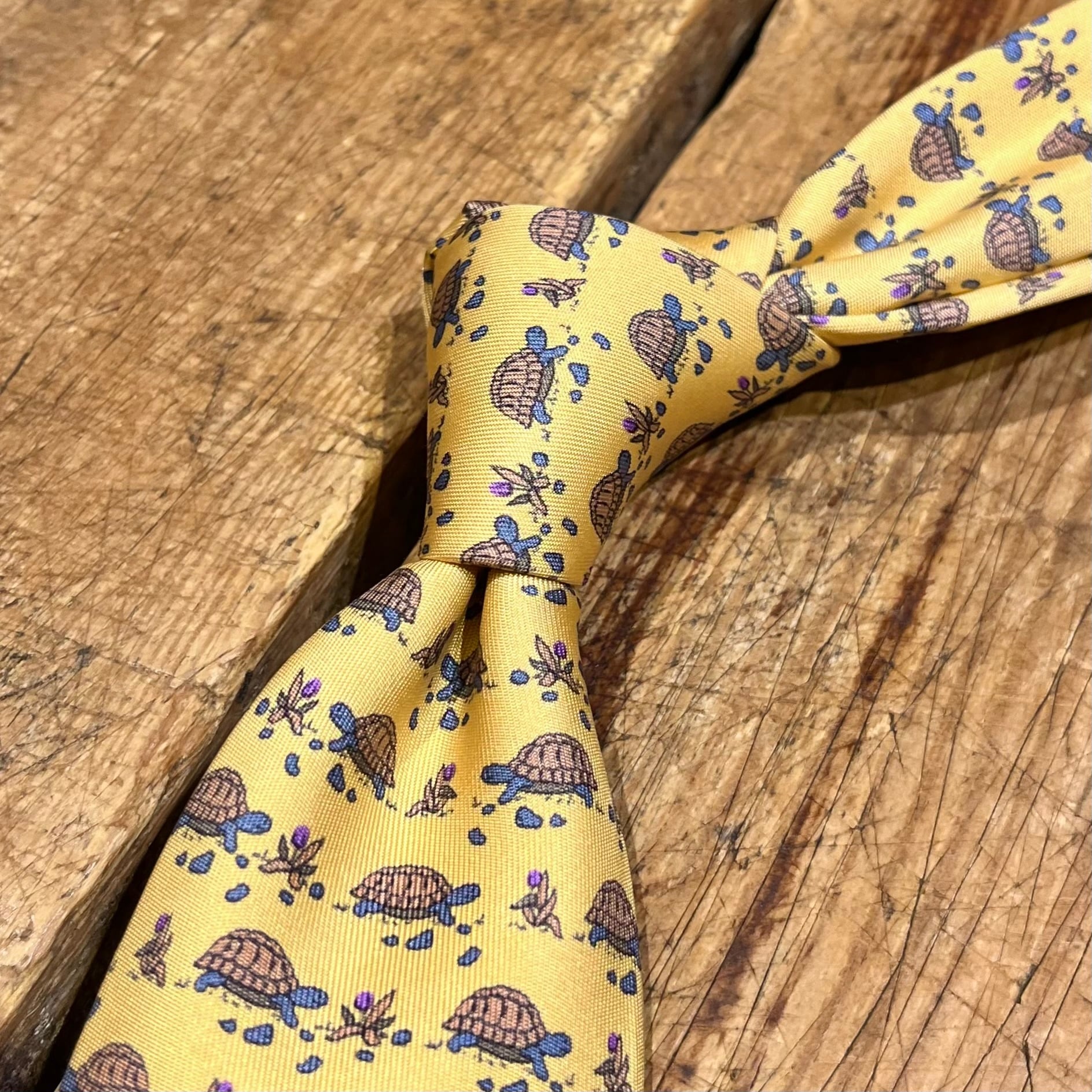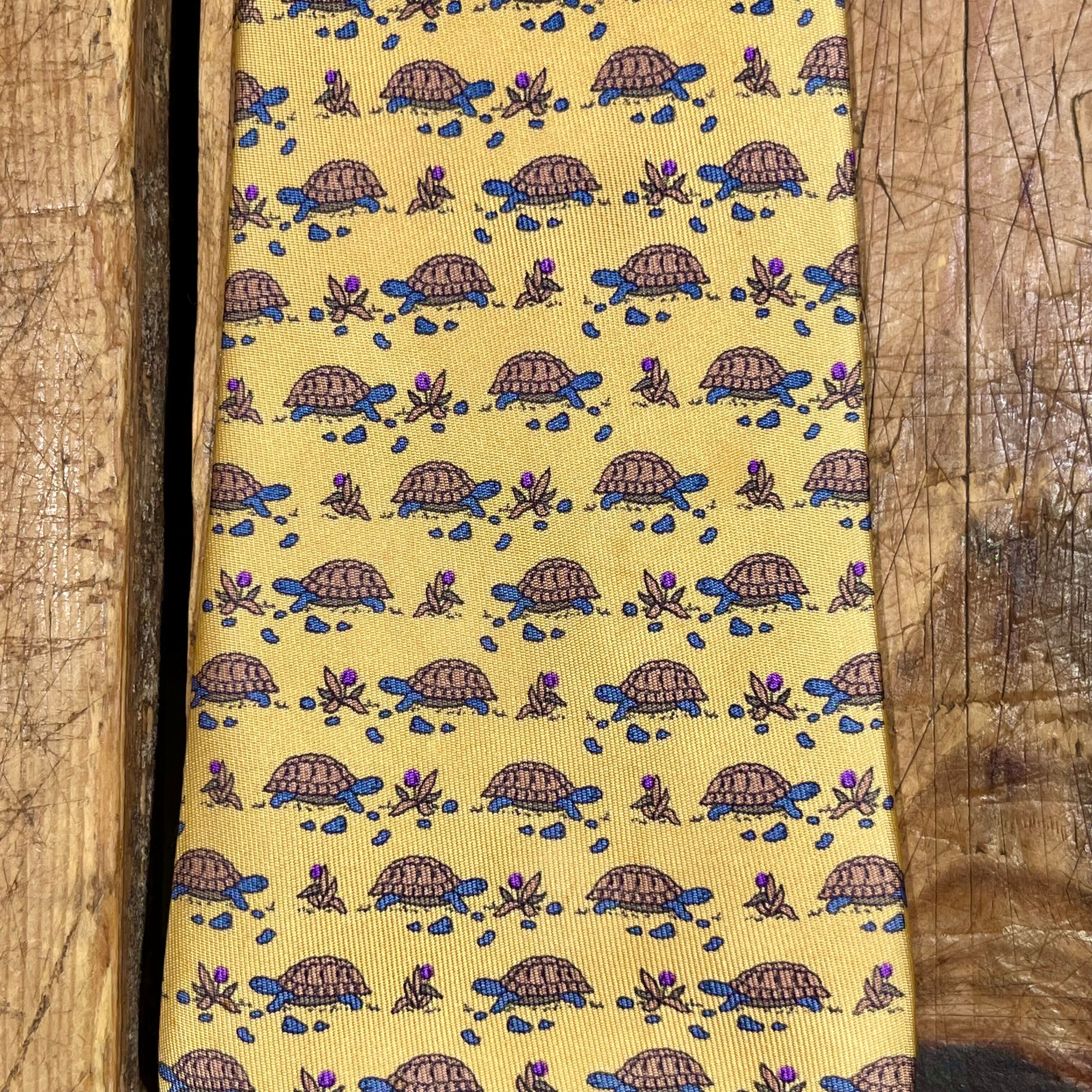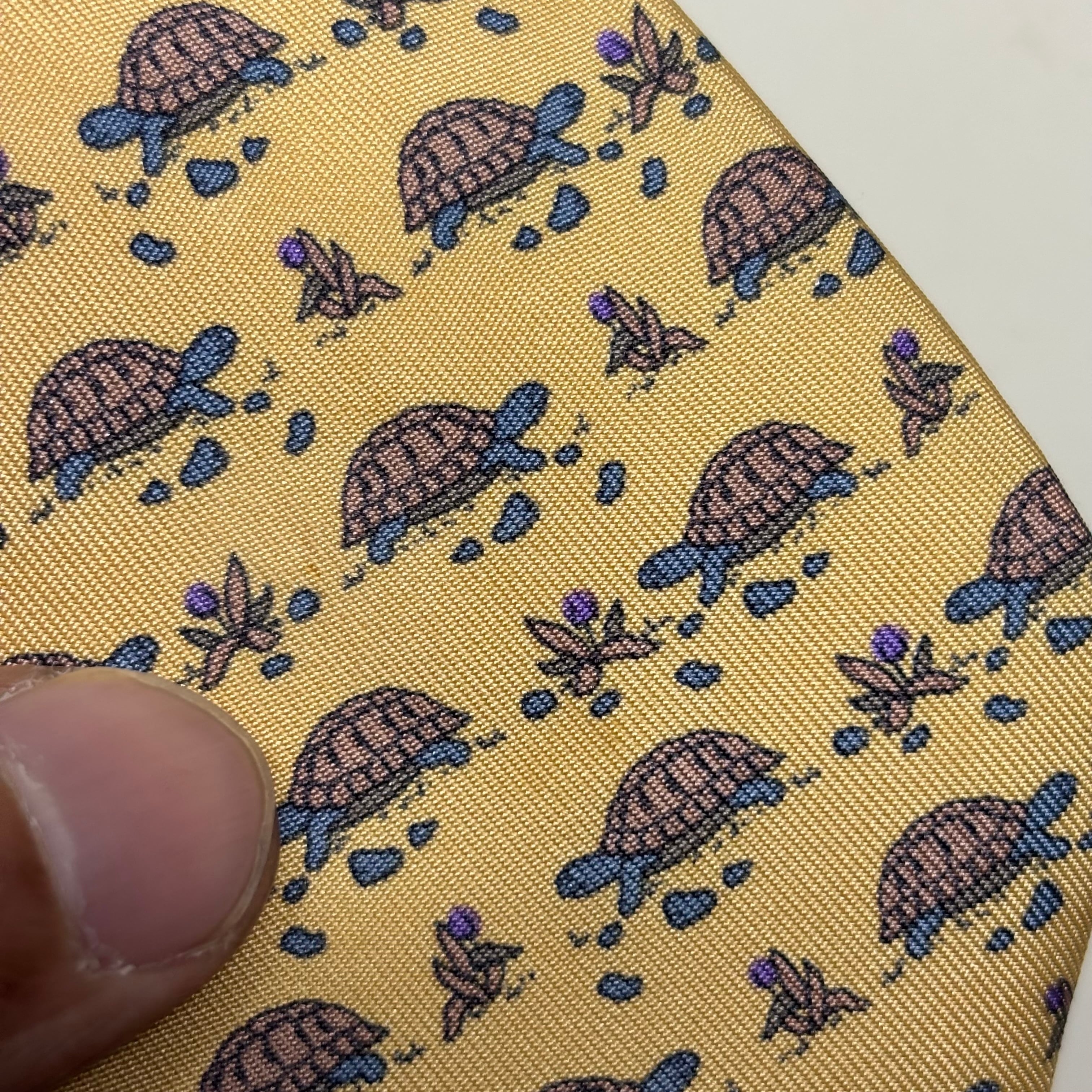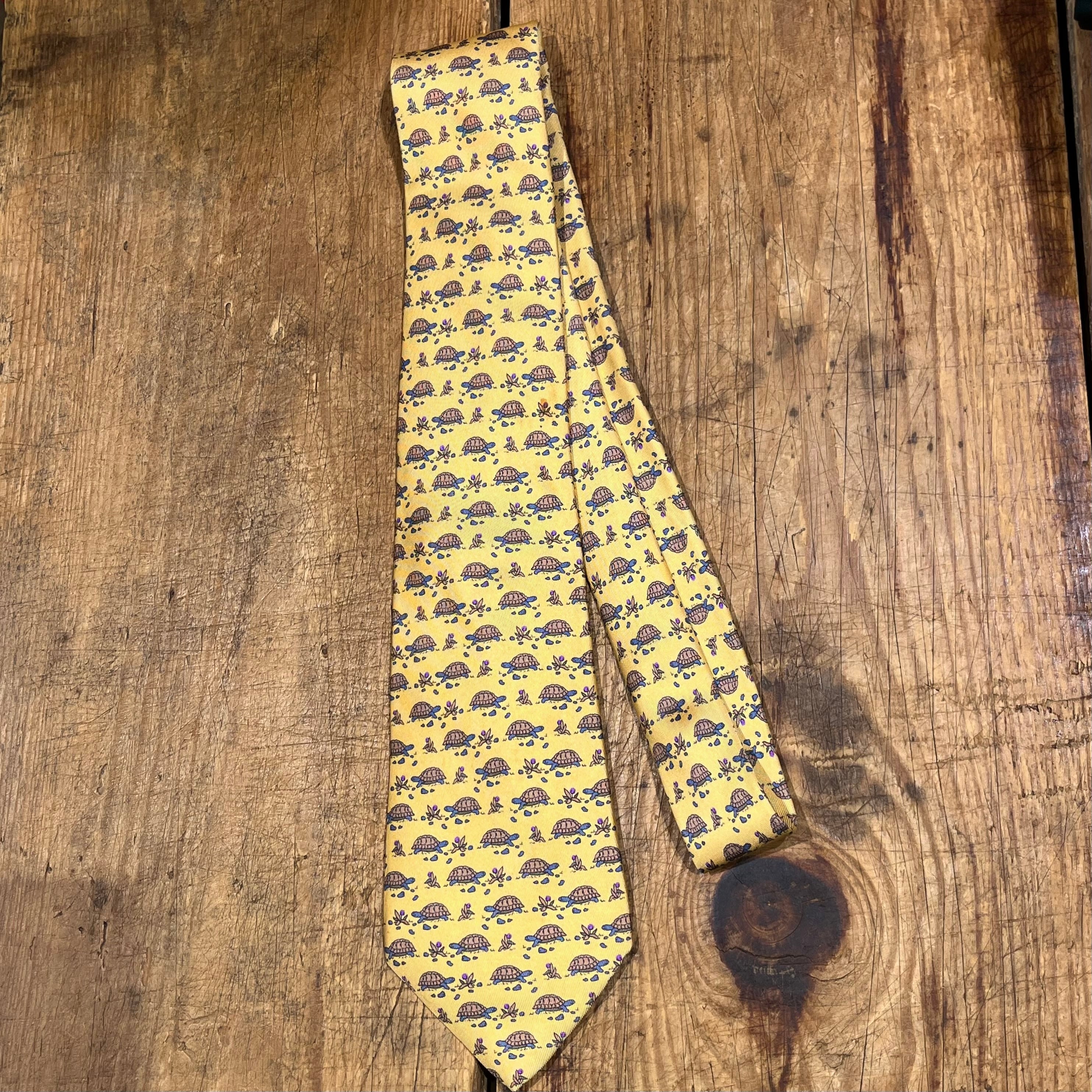Hermes フランス製 シルクネクタイ イエロー 亀 エルメス
