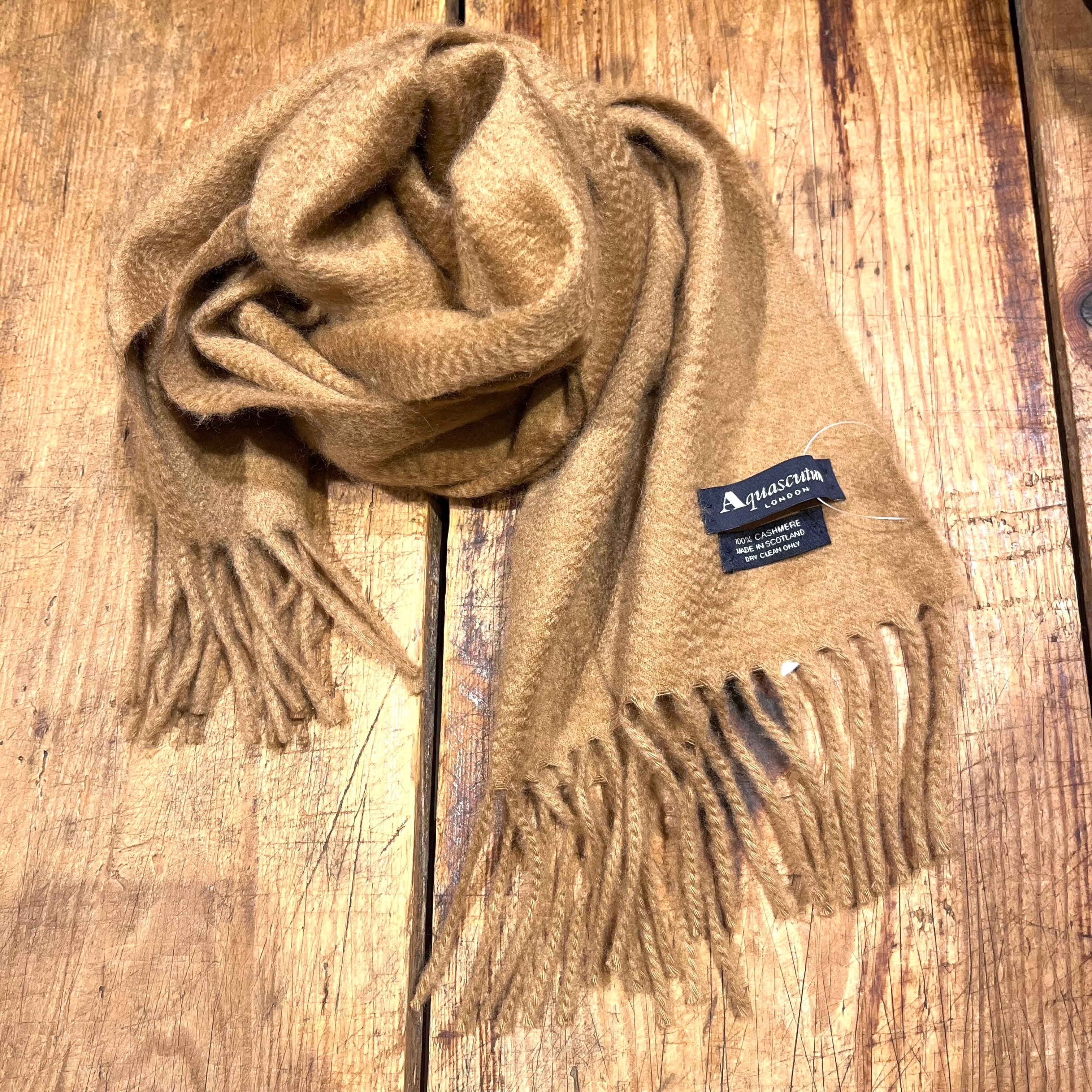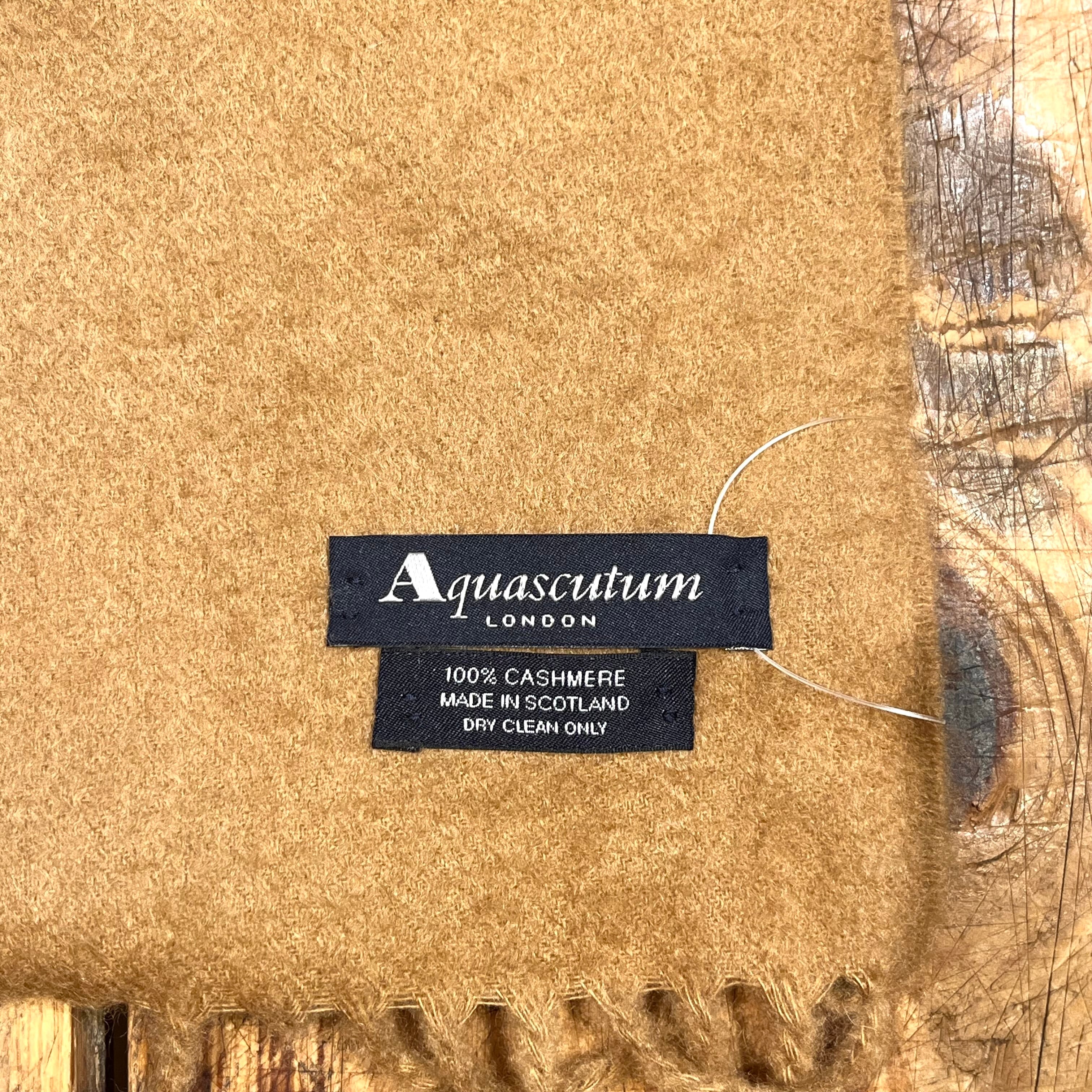 Aquascutum "gold cashmere stole"スコットランド製 カシミヤ100% ストール マフラー アクアスキュータム ゴールド ブラウン