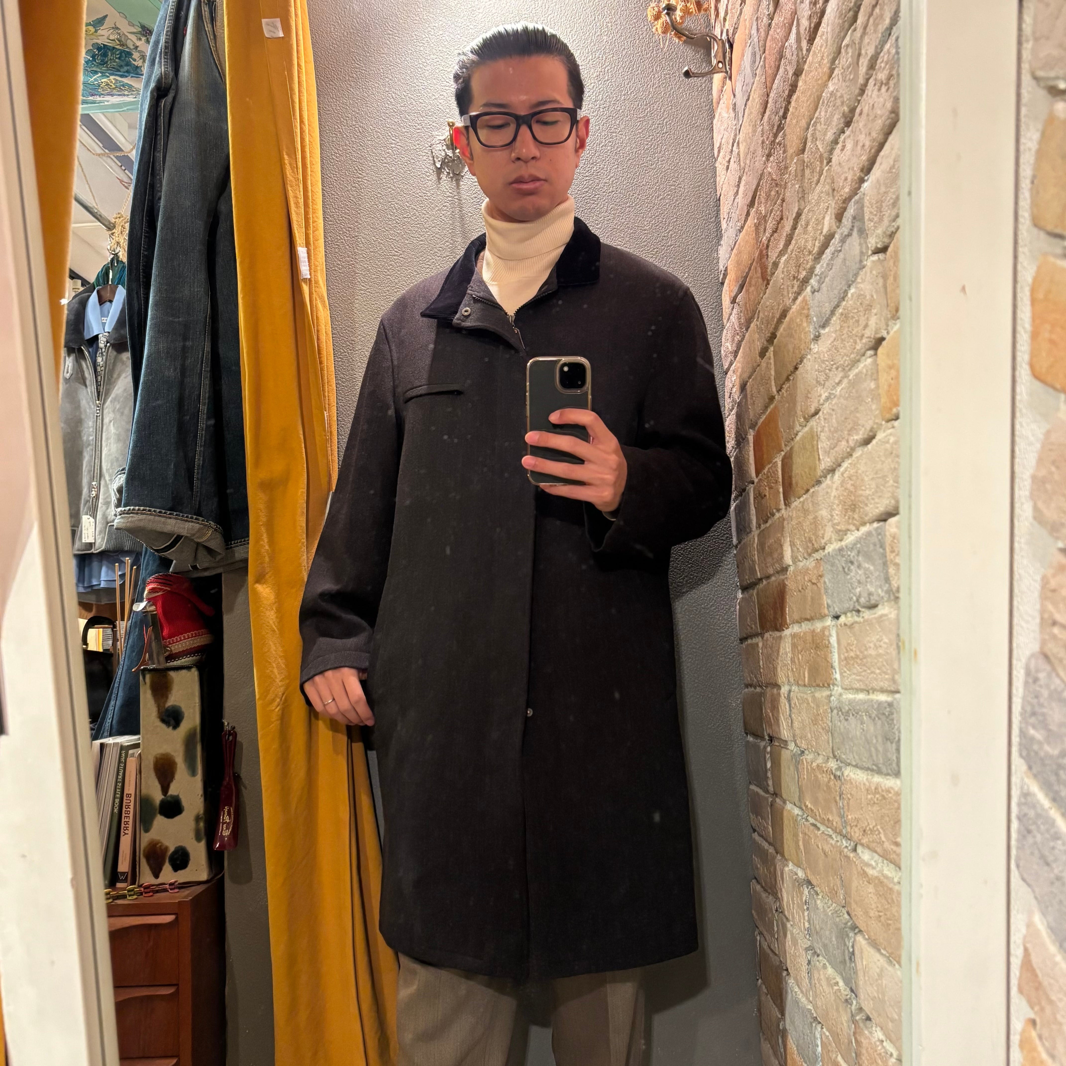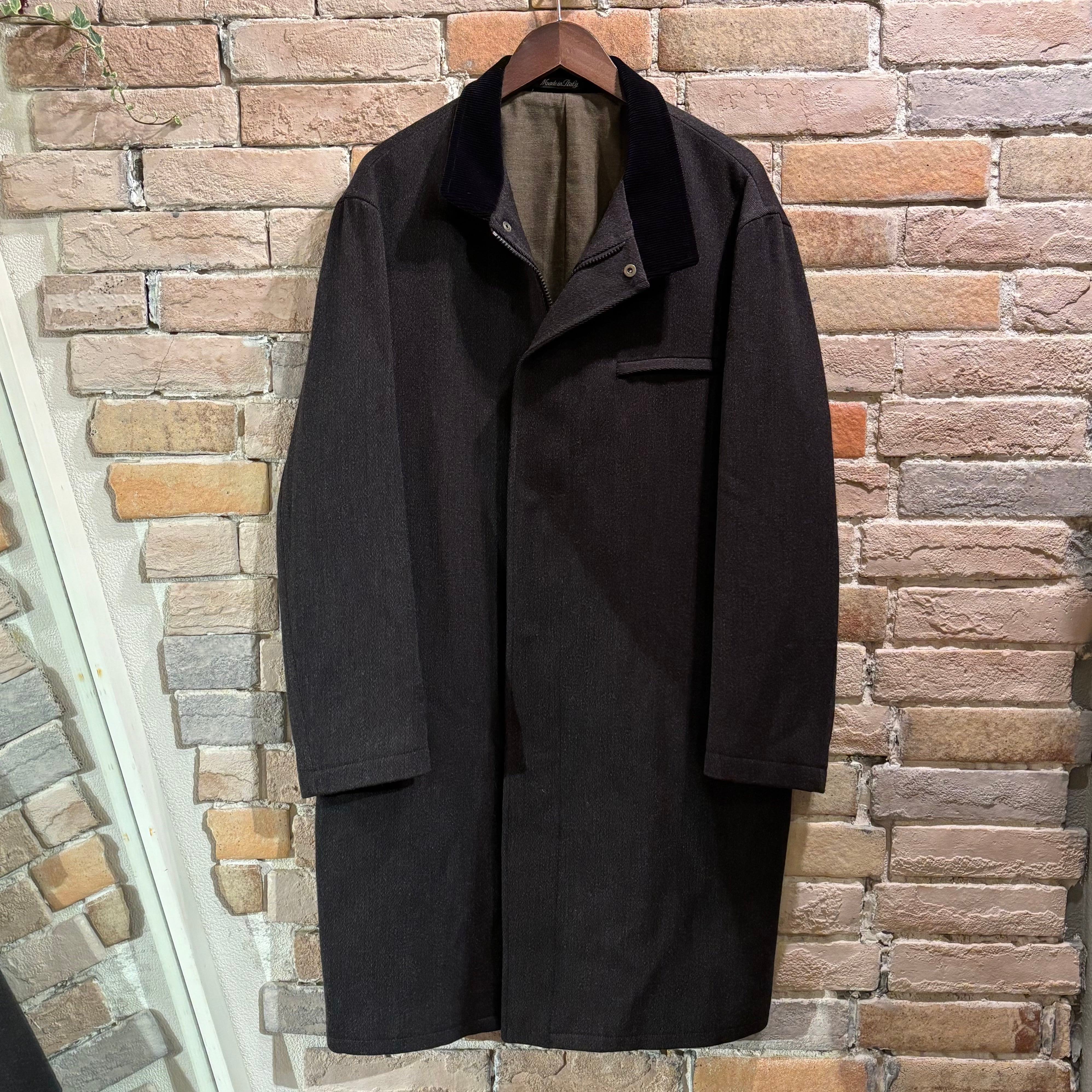 OLD ENGLAND 襟コーデュロイ チャコールウール×ナイロンコート イタリア製 オールドイングランド