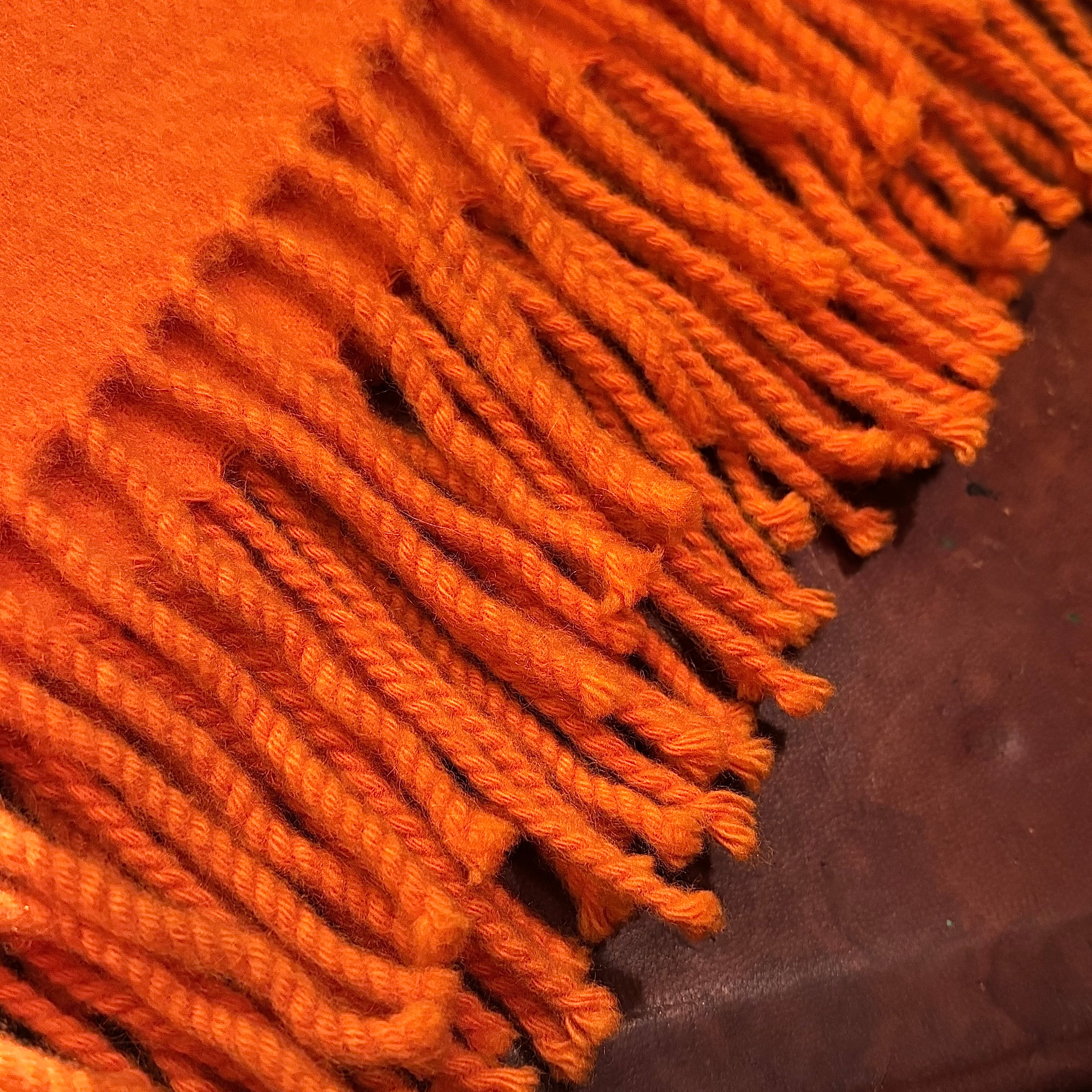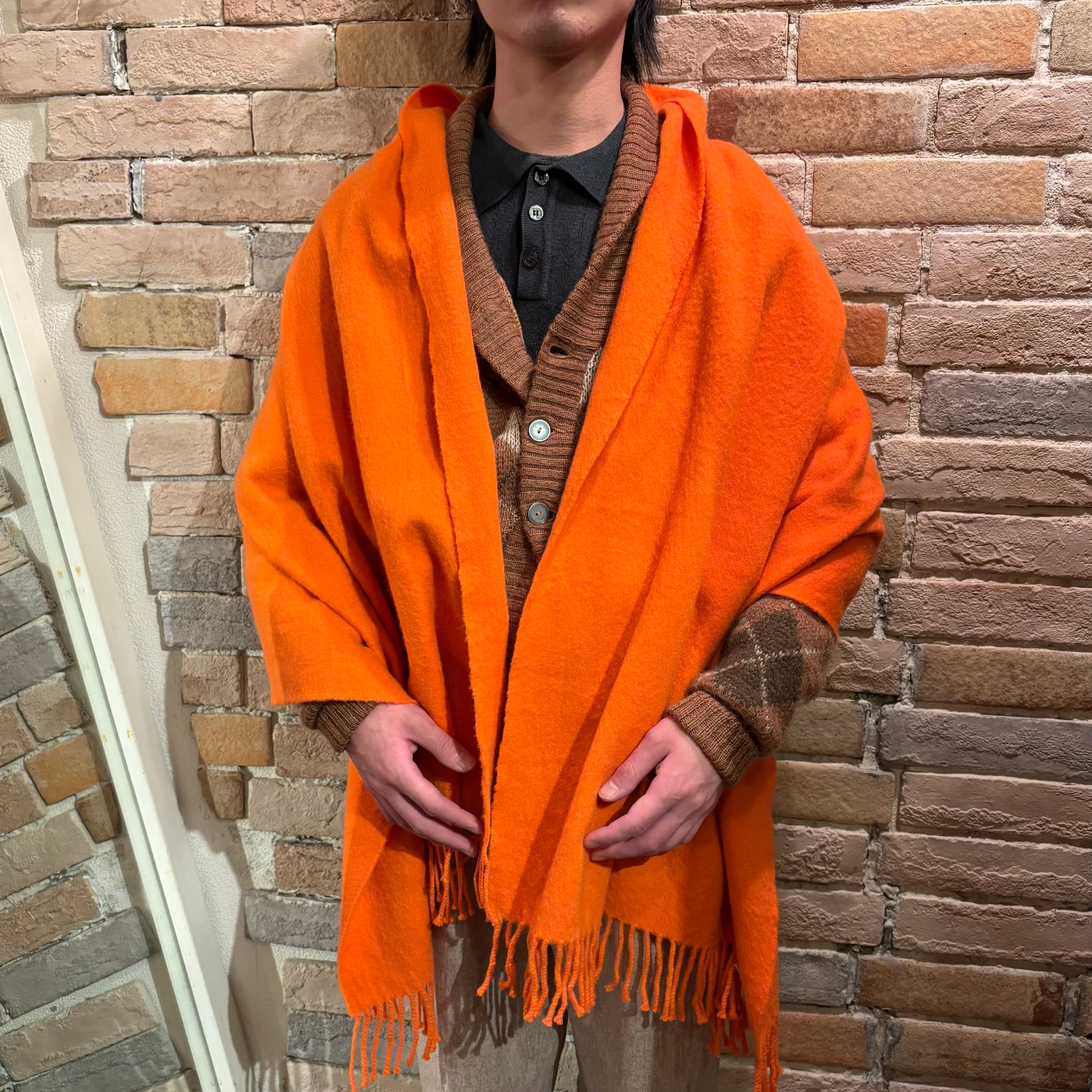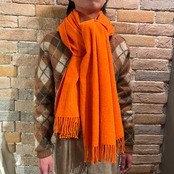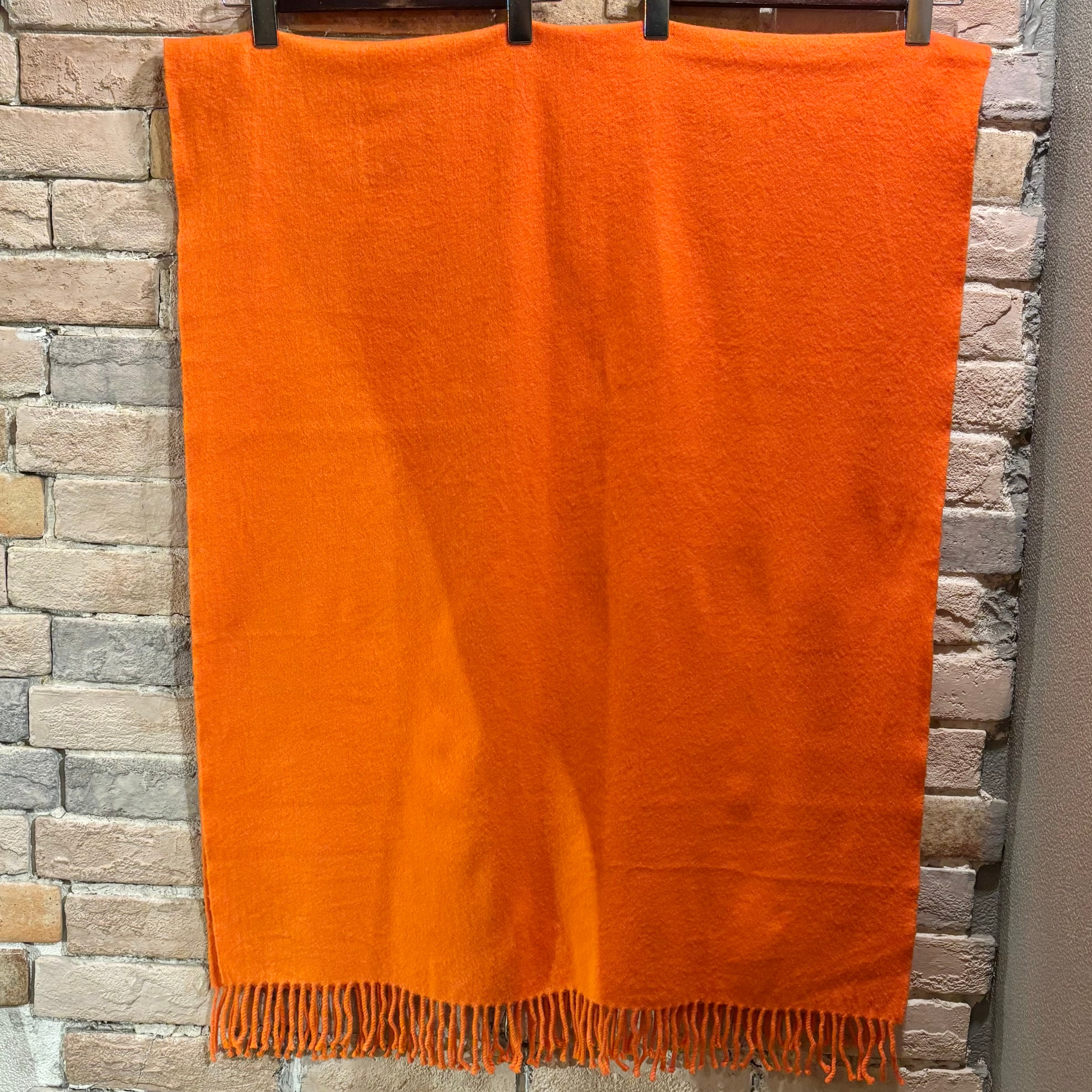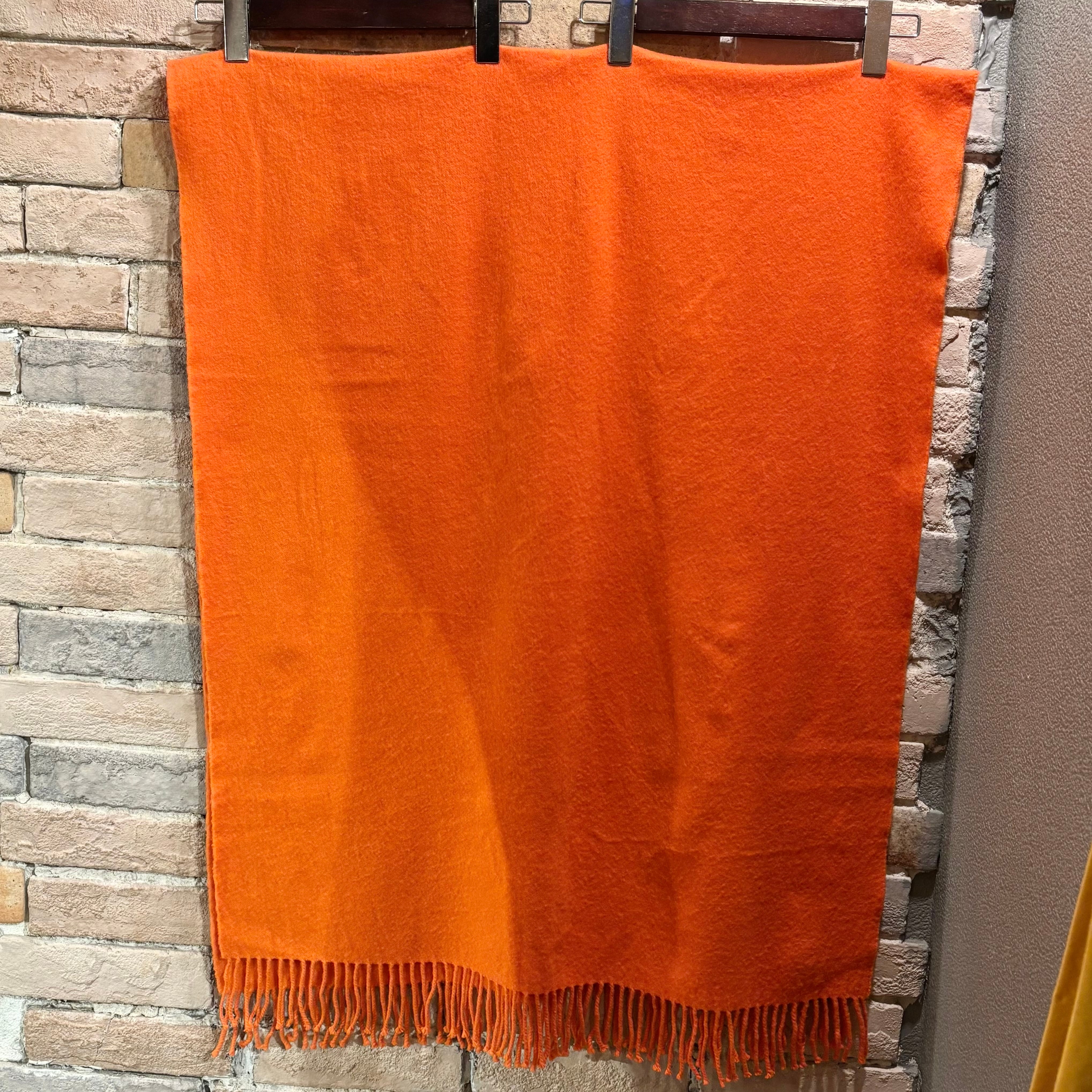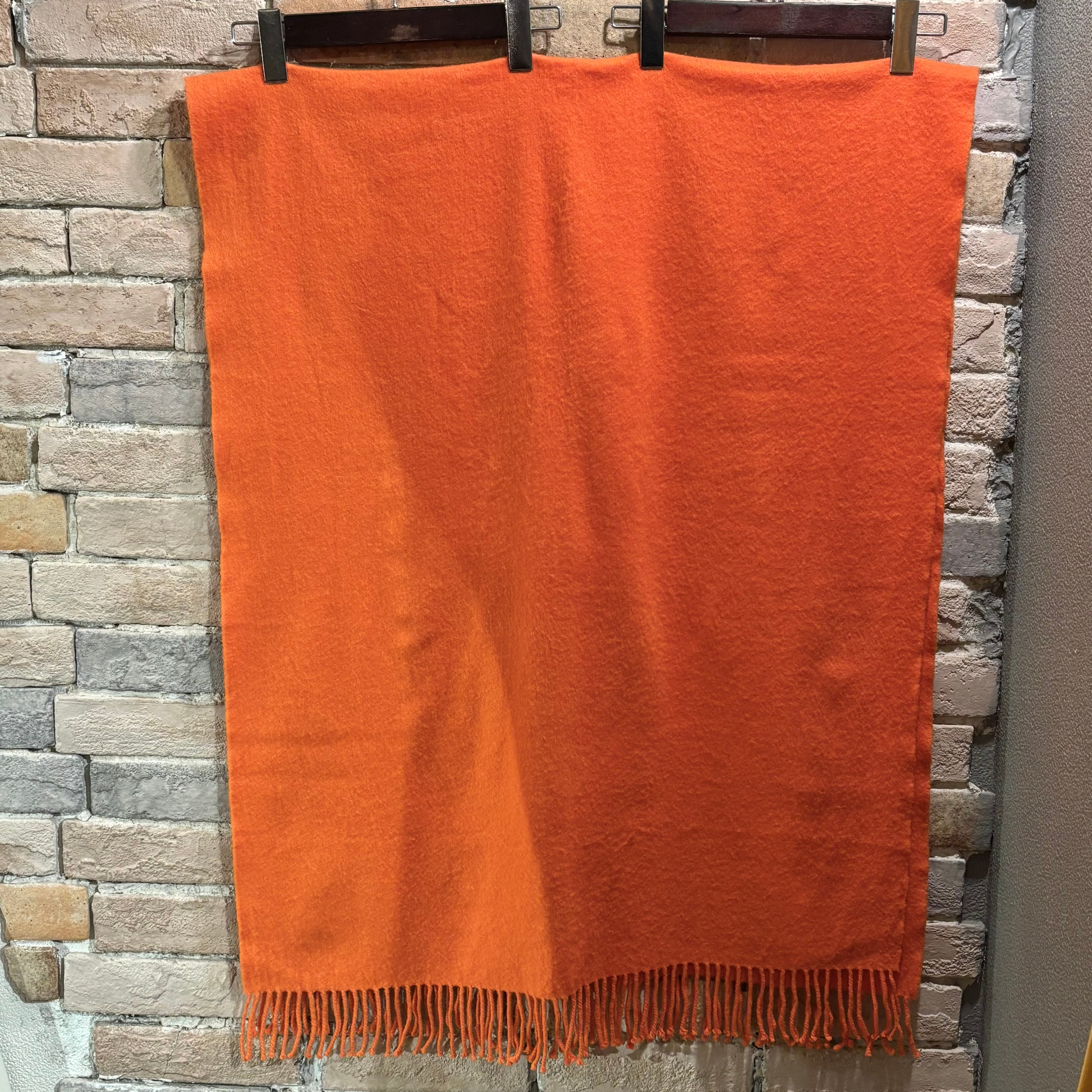 鮮やかな色合いのオレンジに肌触りの良い滑らかなカシミヤ生地のスコットランド製大判ストール。