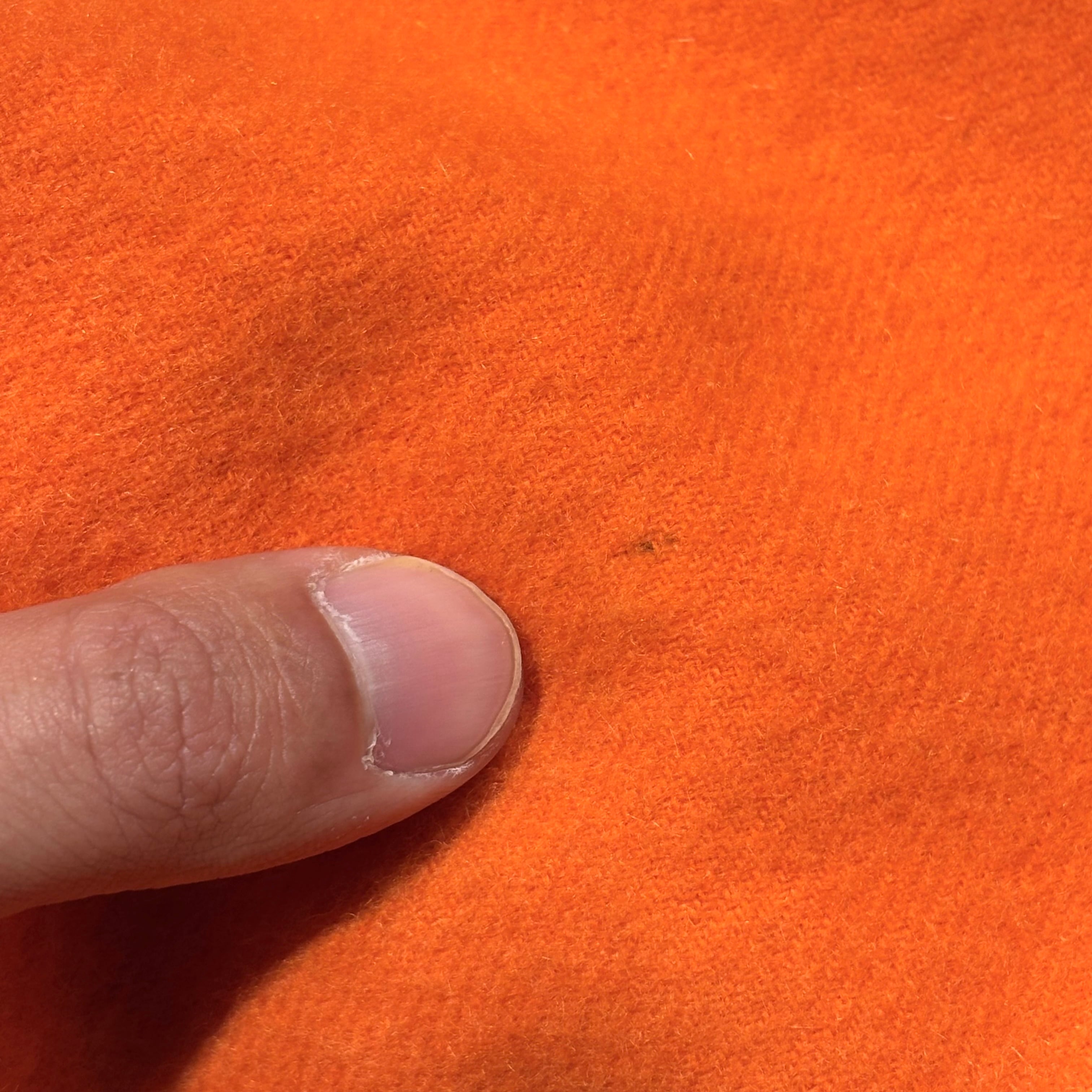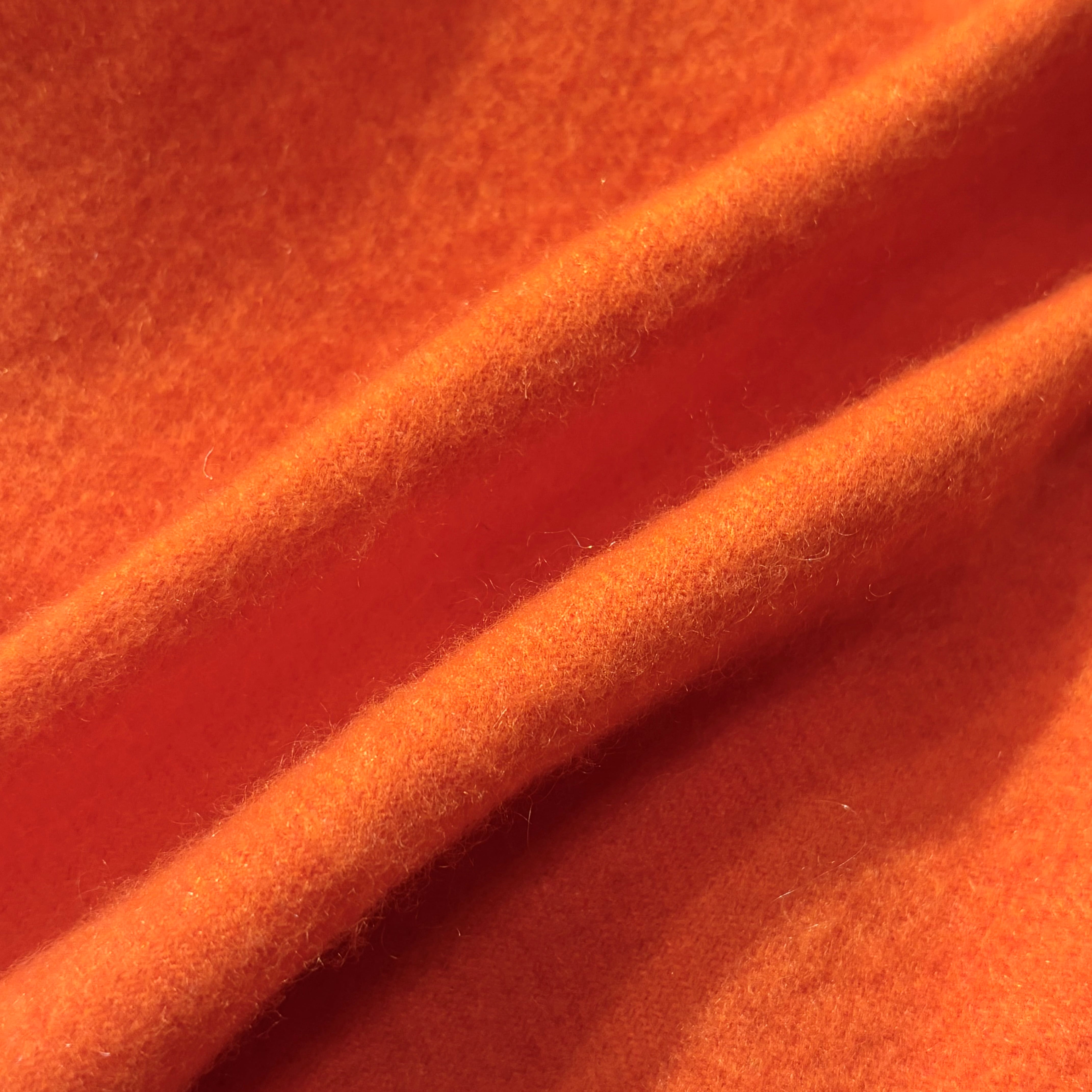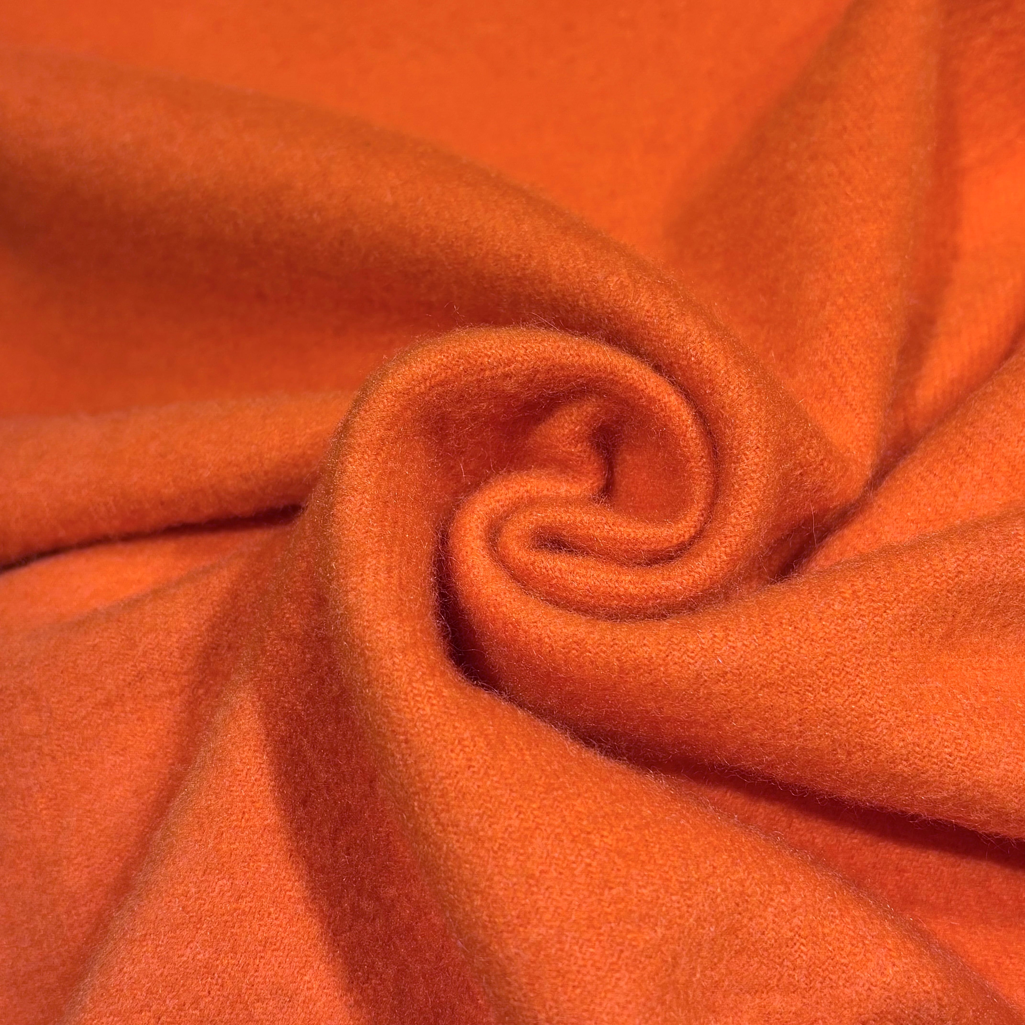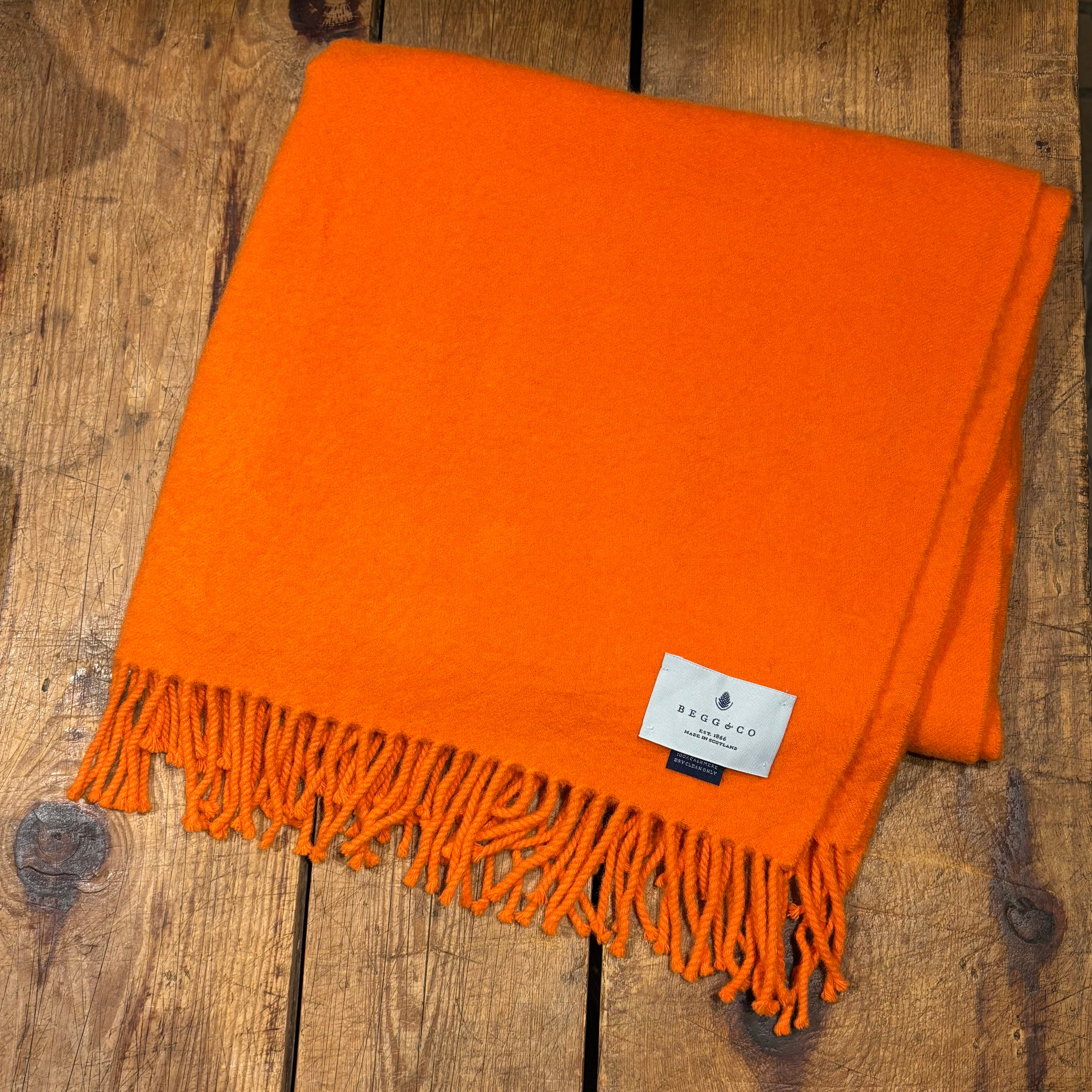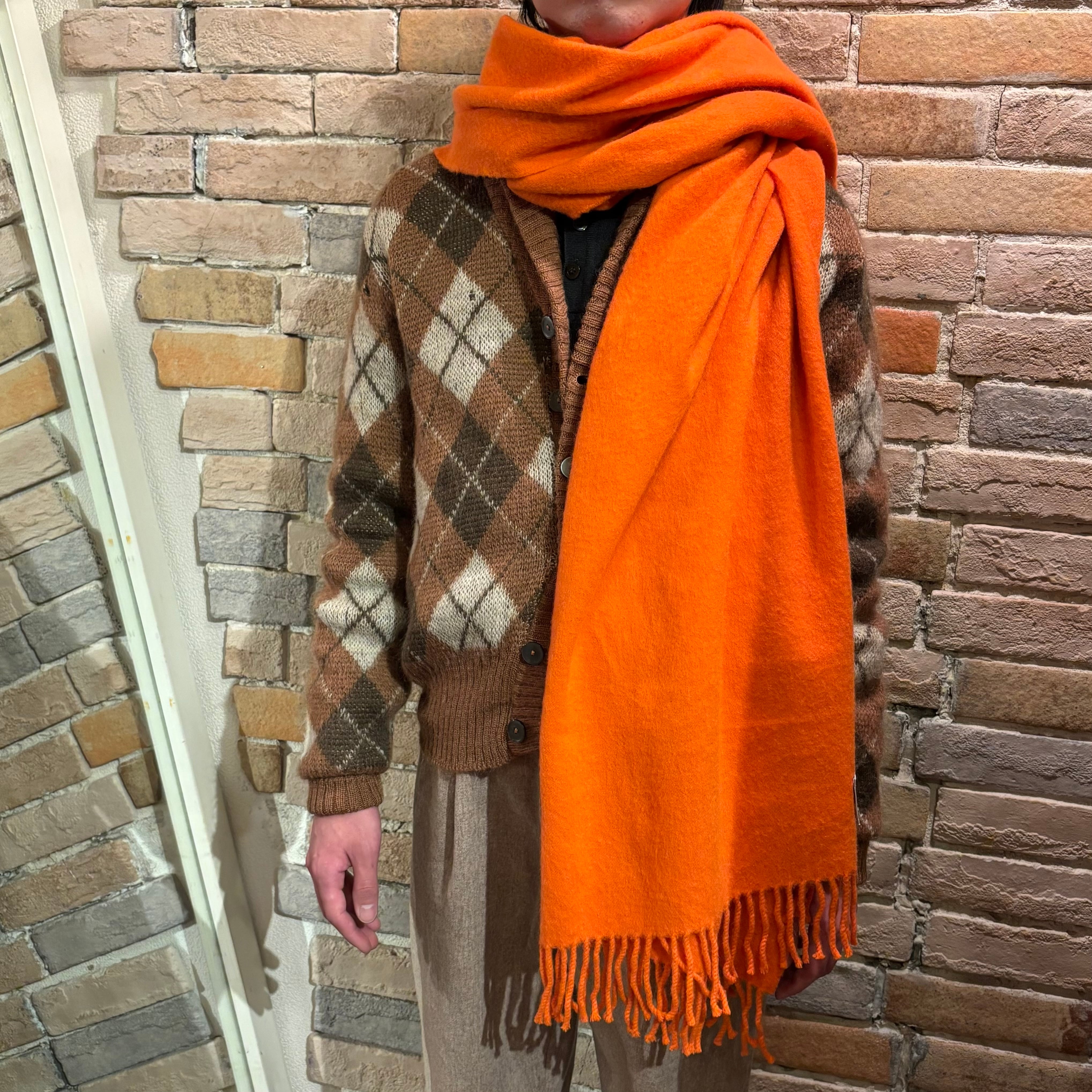 鮮やかな色合いのオレンジに肌触りの良い滑らかなカシミヤ生地のスコットランド製大判ストール。
