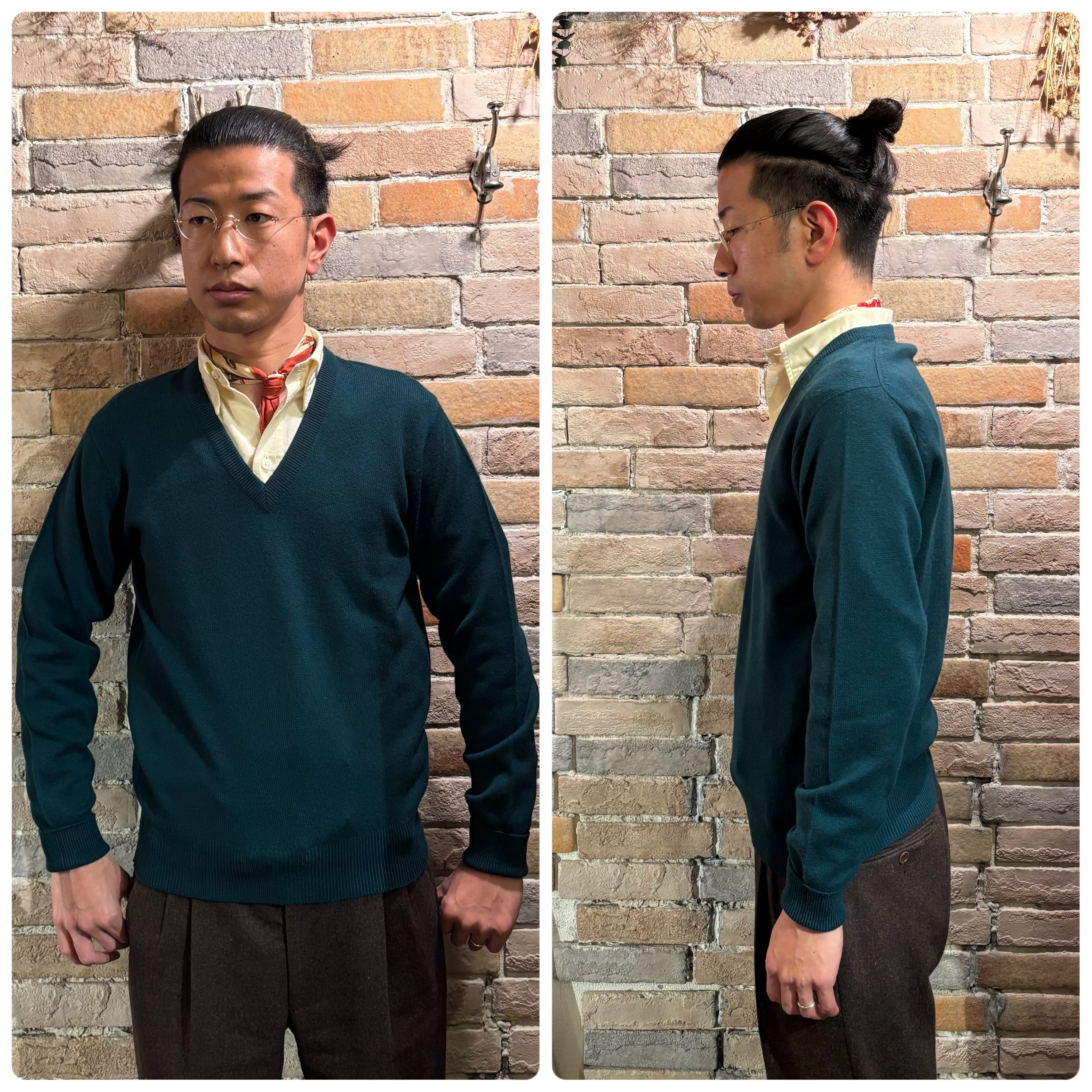 肌触りの良いカシミヤ生地を贅沢に使用した2plyのスコットランド製Vネックニット。