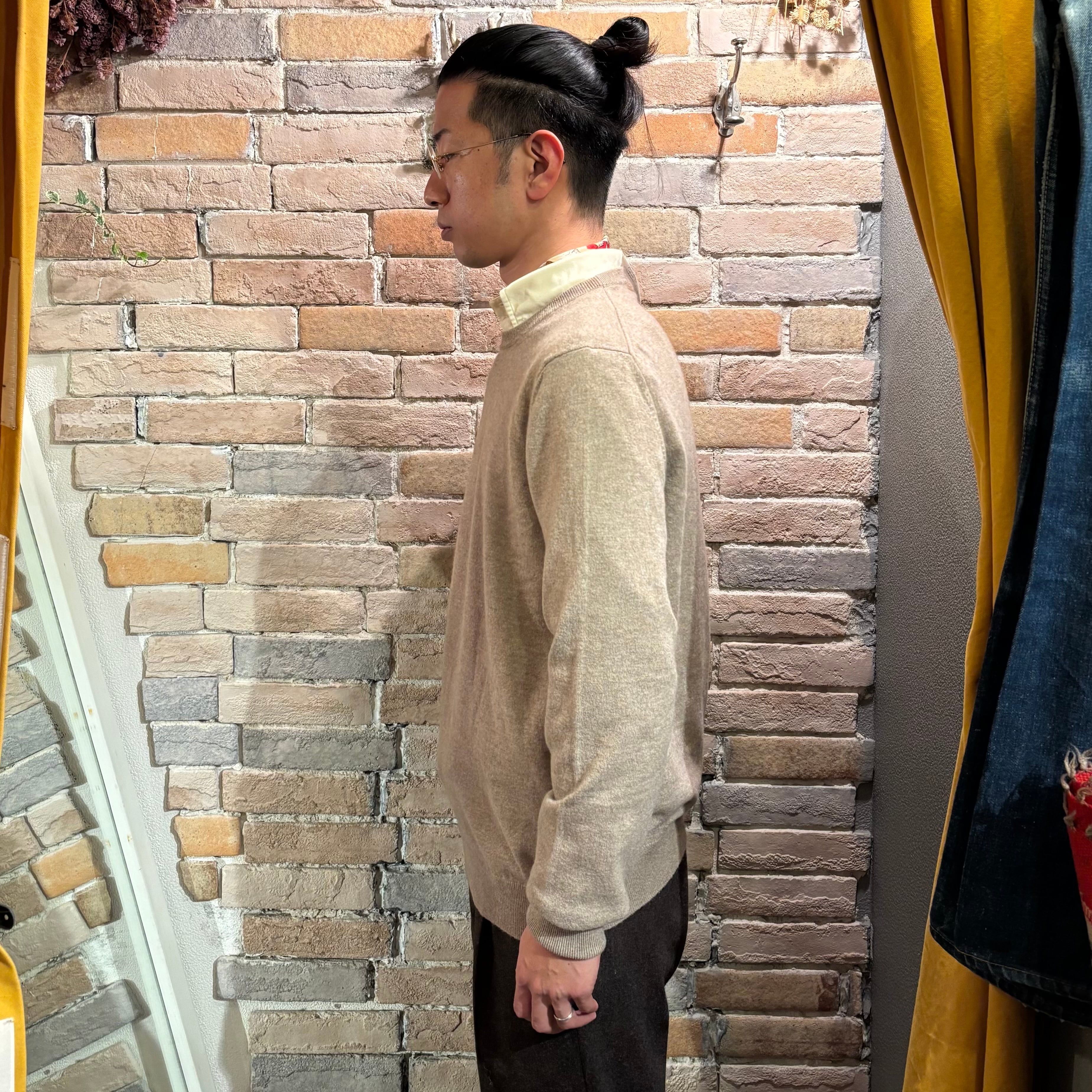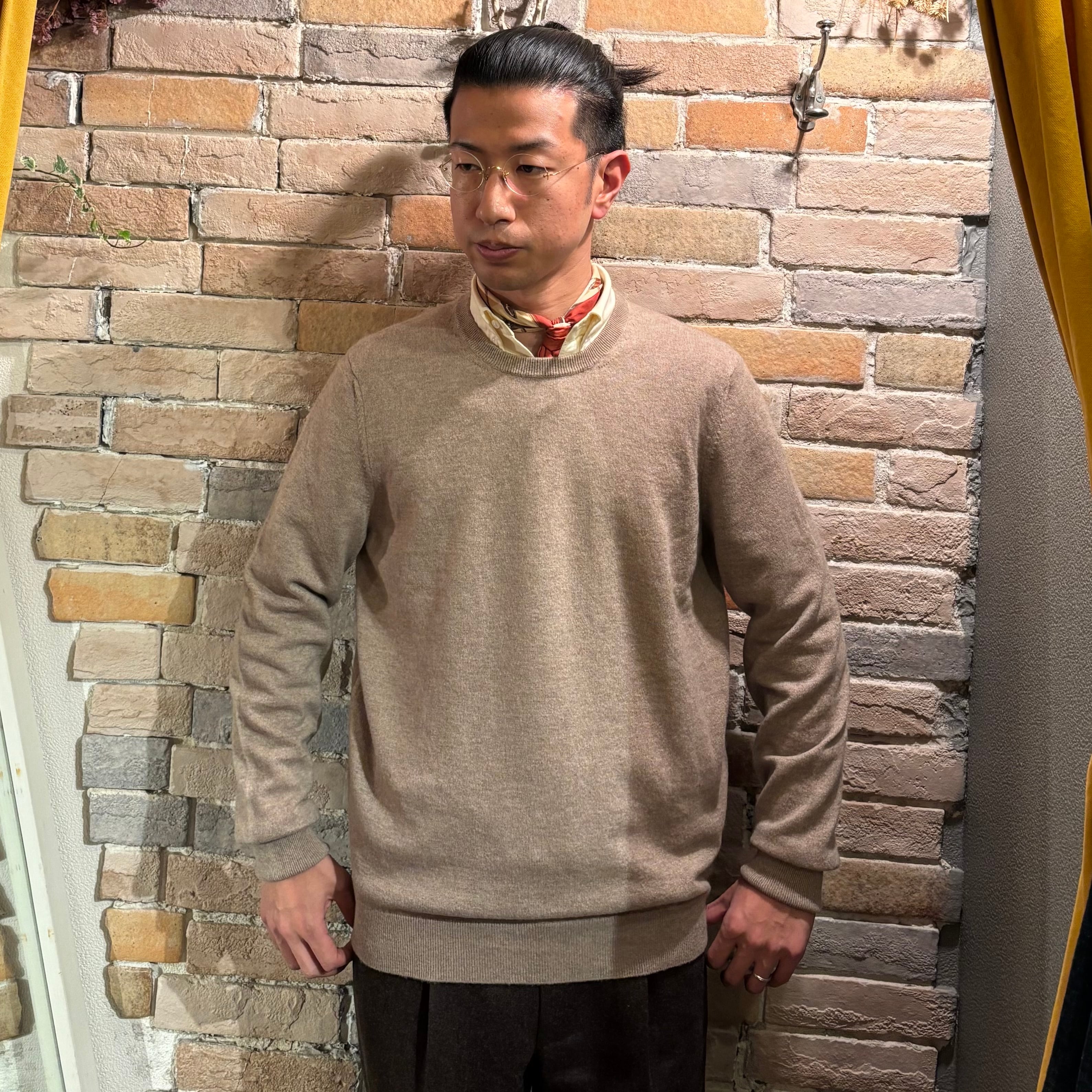 肌触りの良いカシミヤ生地に中間的な色合いのイタリア製クルーネックニット。