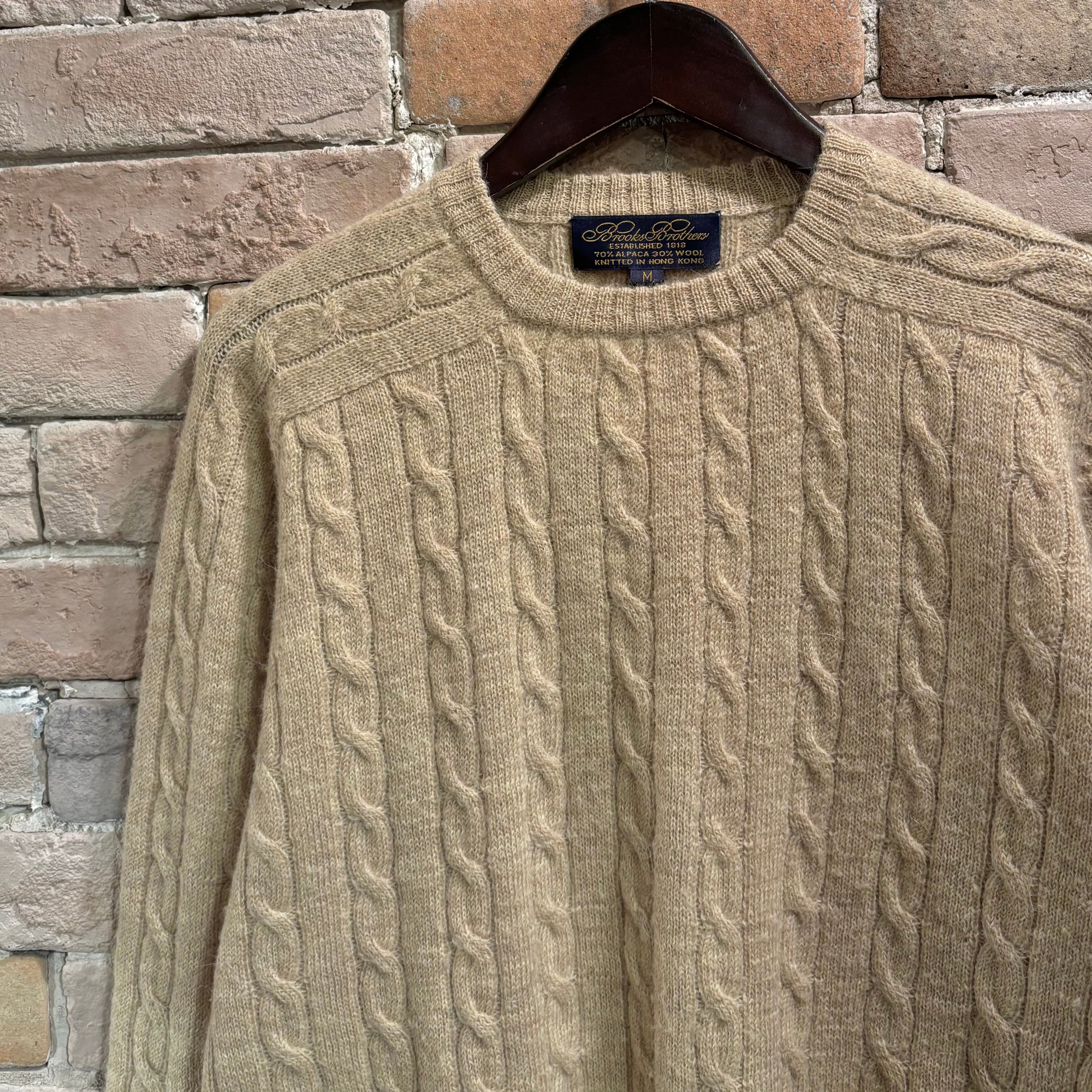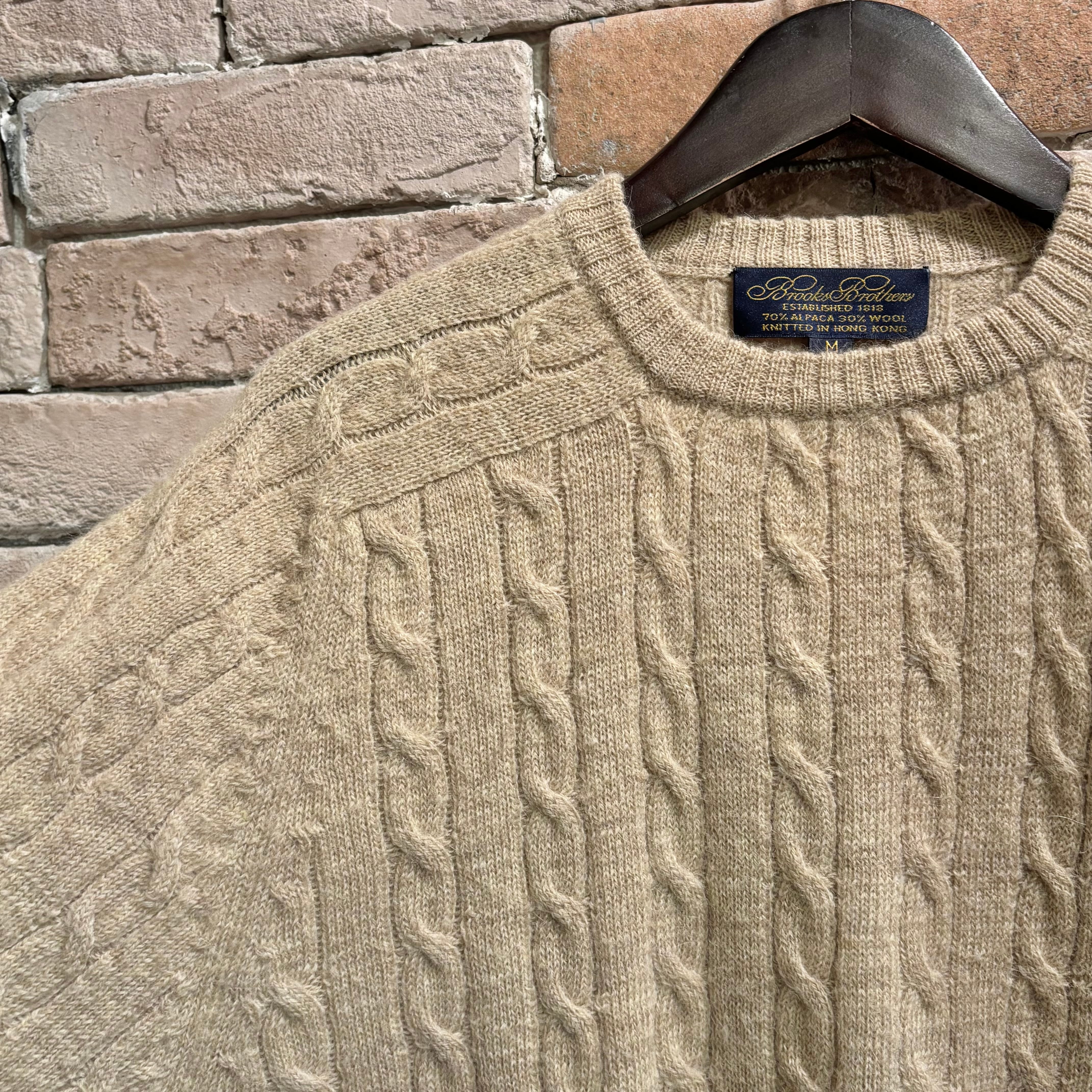Brooks Brothers サイズM アルパカ×ウール ケーブルクルーネックニット サドルショルダー ブルックスブラザーズ