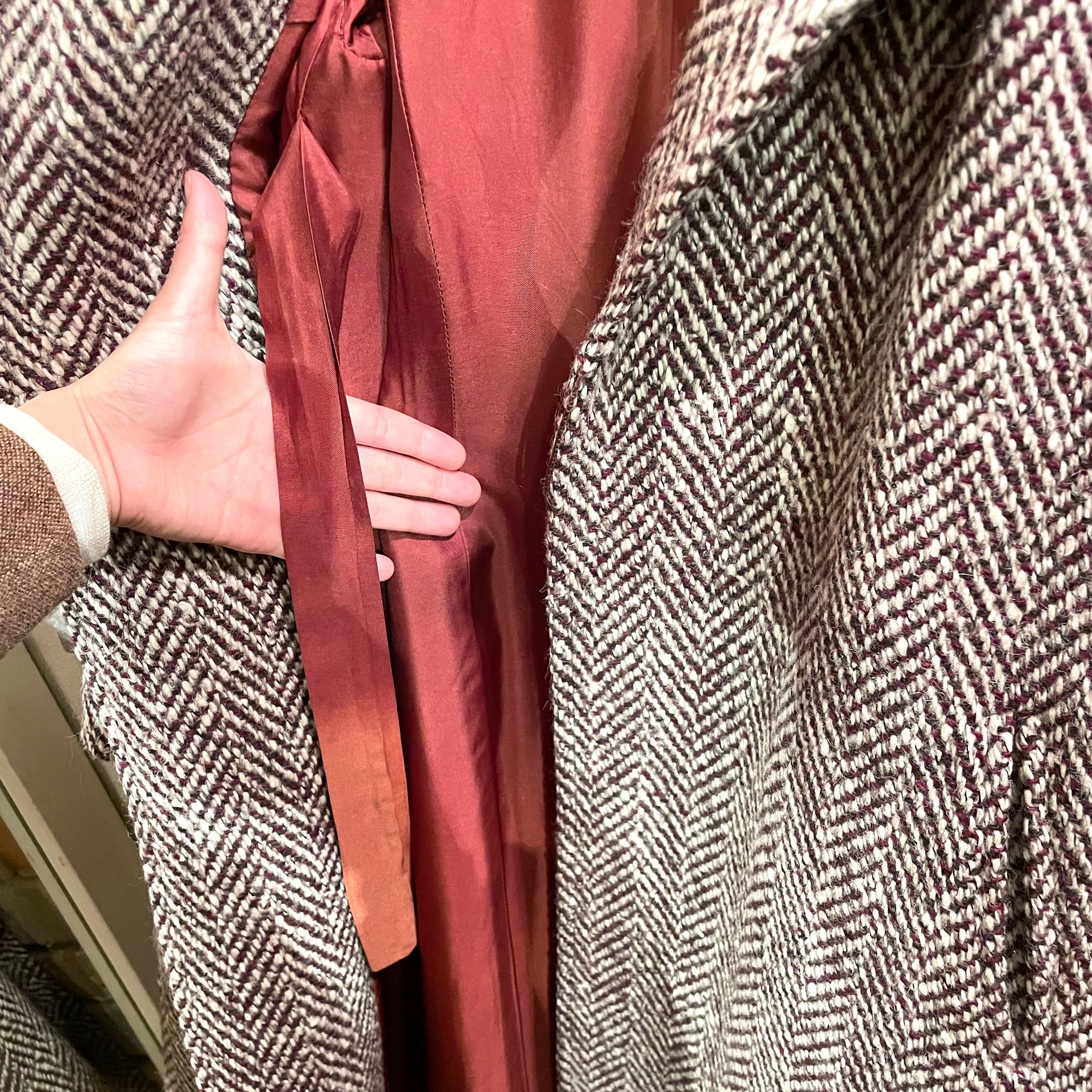 ヘリンボーンの迫力のあるツイード生地。