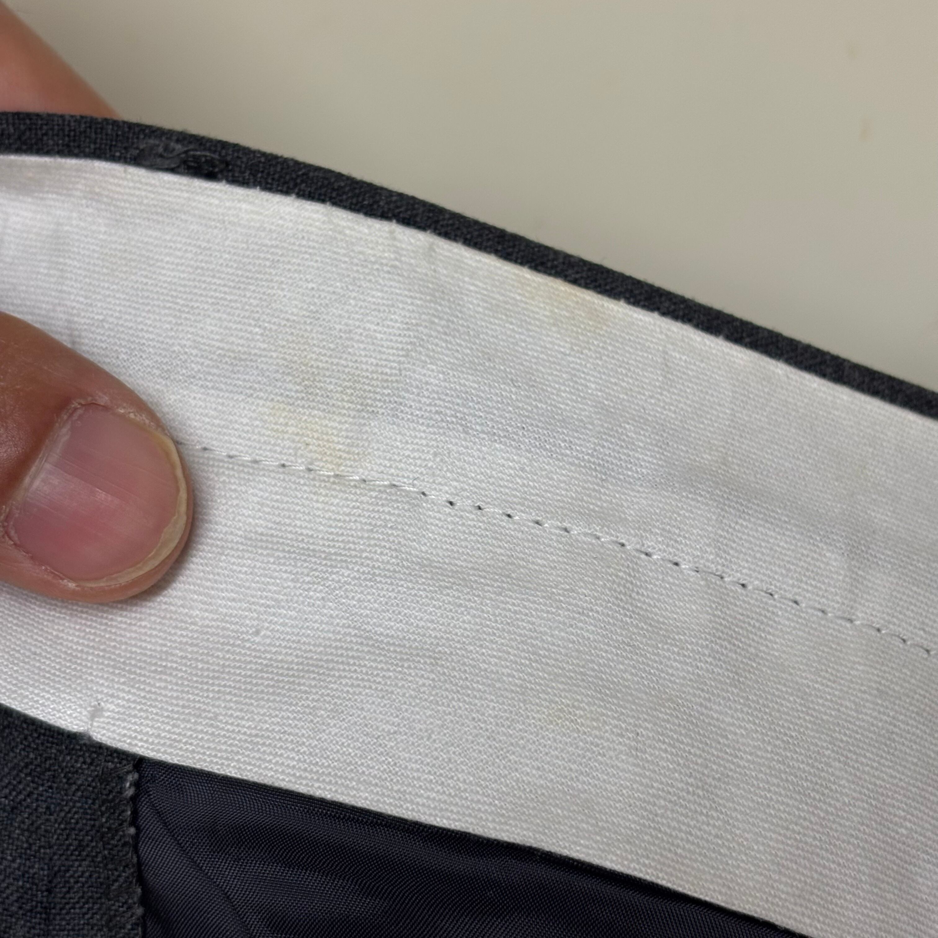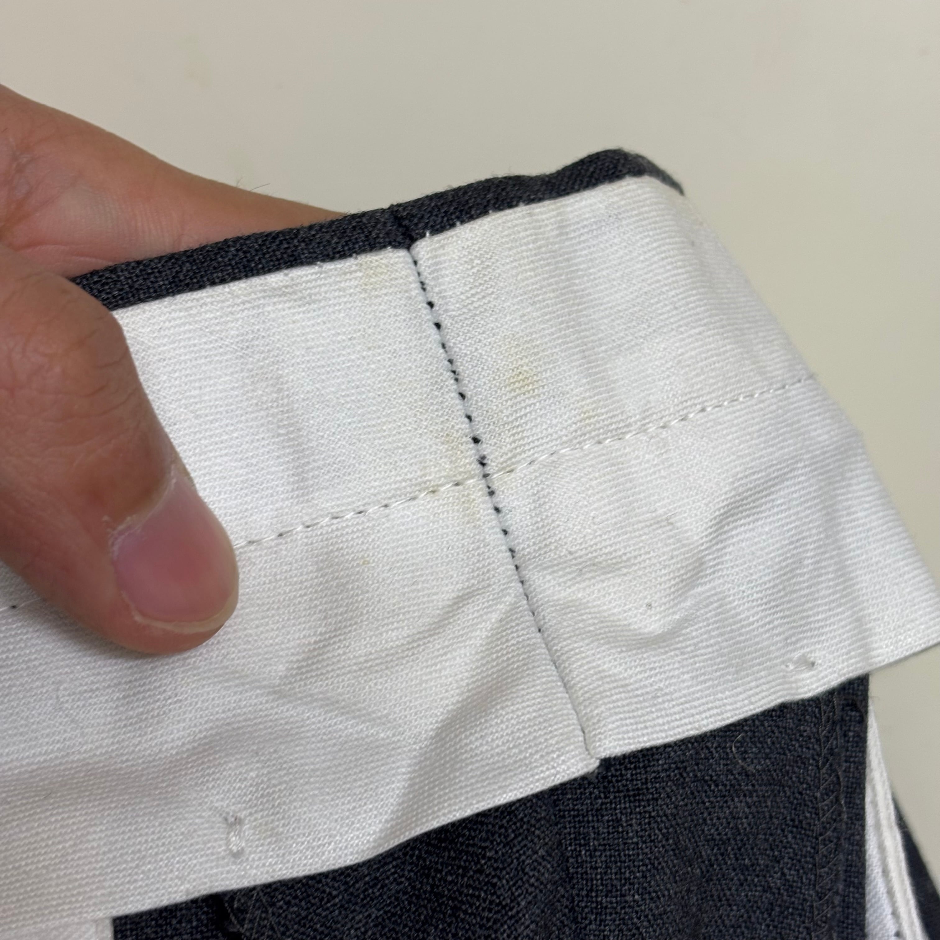 裾をダブルで処理されておりますが、股下が長めに残っている為、お好みの長さに調節可能。