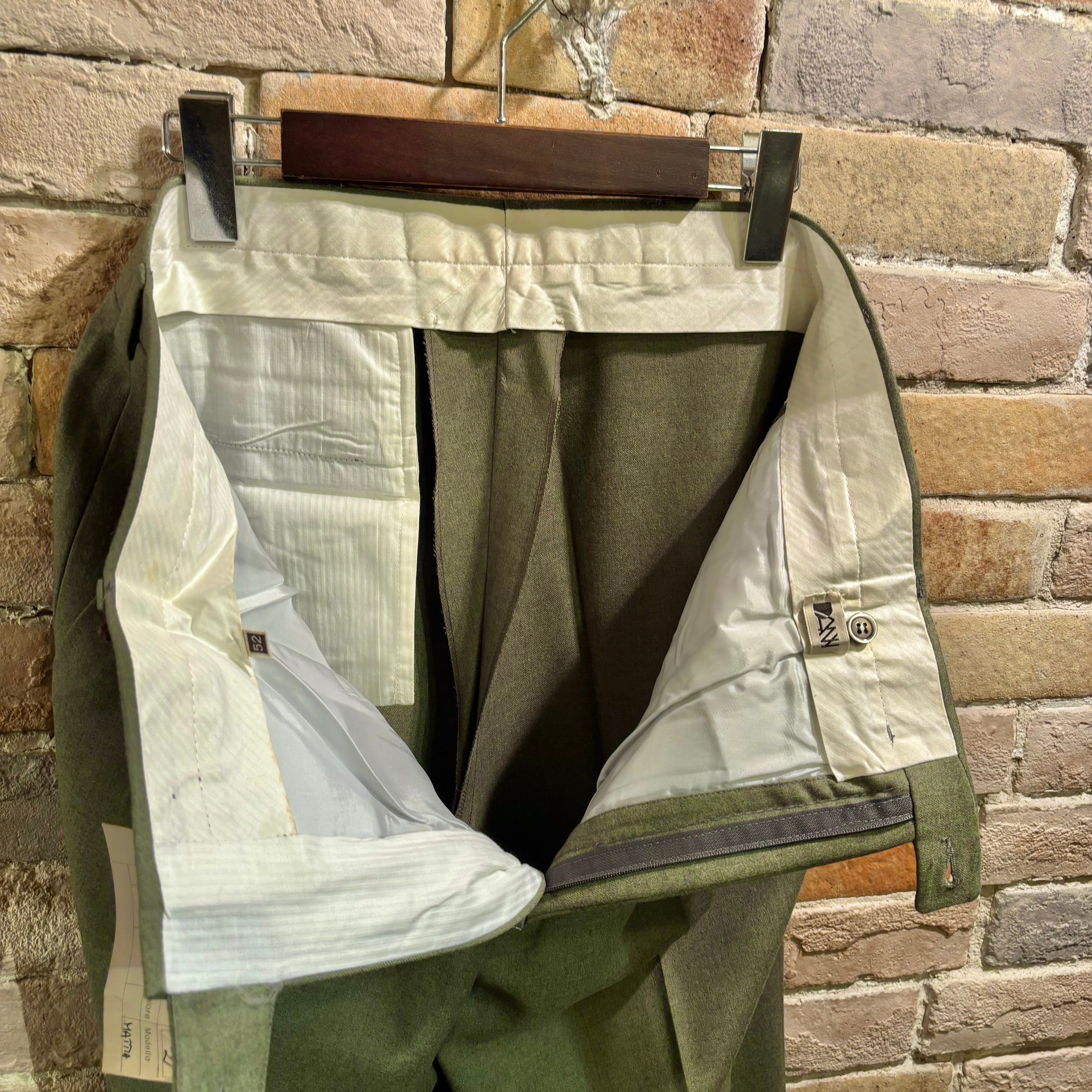 DANY Deadstock サイズ52 ヨモギ色 ウールトラウザーズ ノープリーツ デッドストック イタリア製