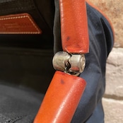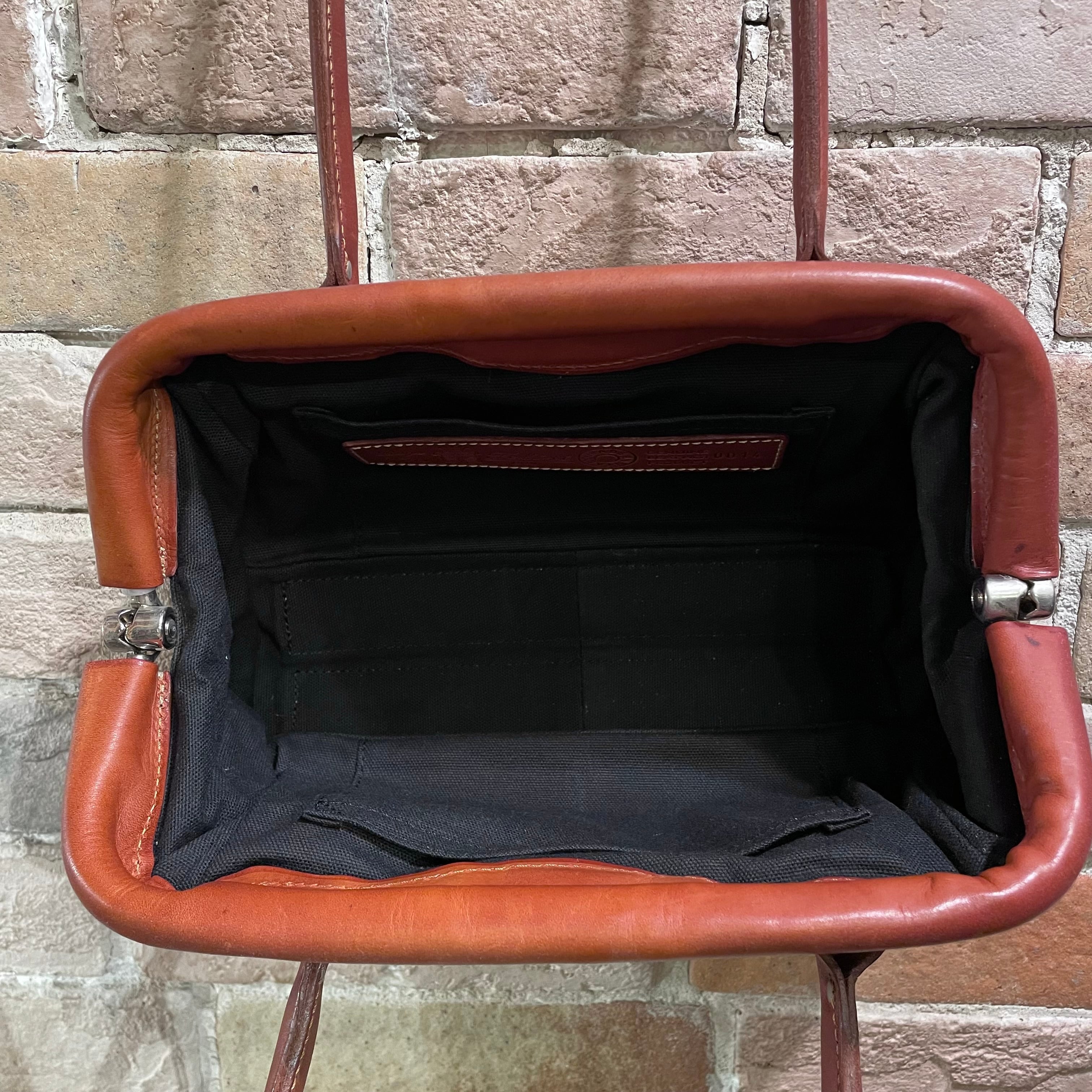 保管時のスレや細かなシワ、がま口のサイドの金具付近のレザーに小汚れがございます。