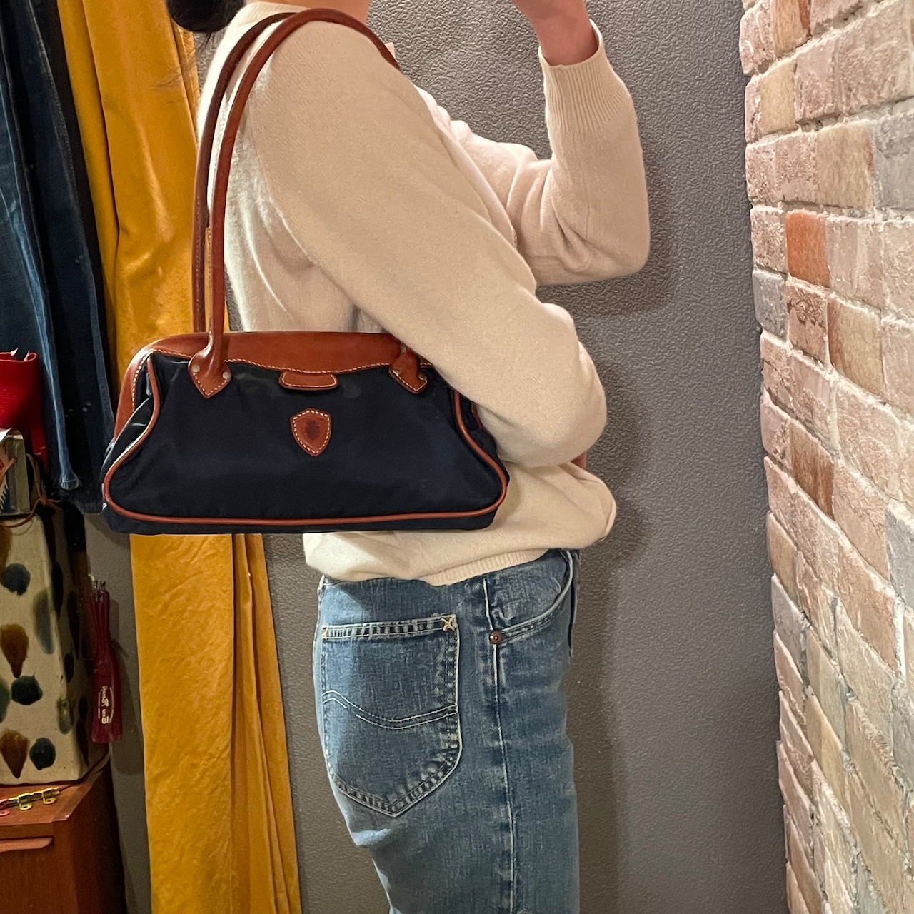 felisi “ladies nylon leather bag”未使用 イタリア製 フェリージ ナイロンレザー バッグ ネイビー