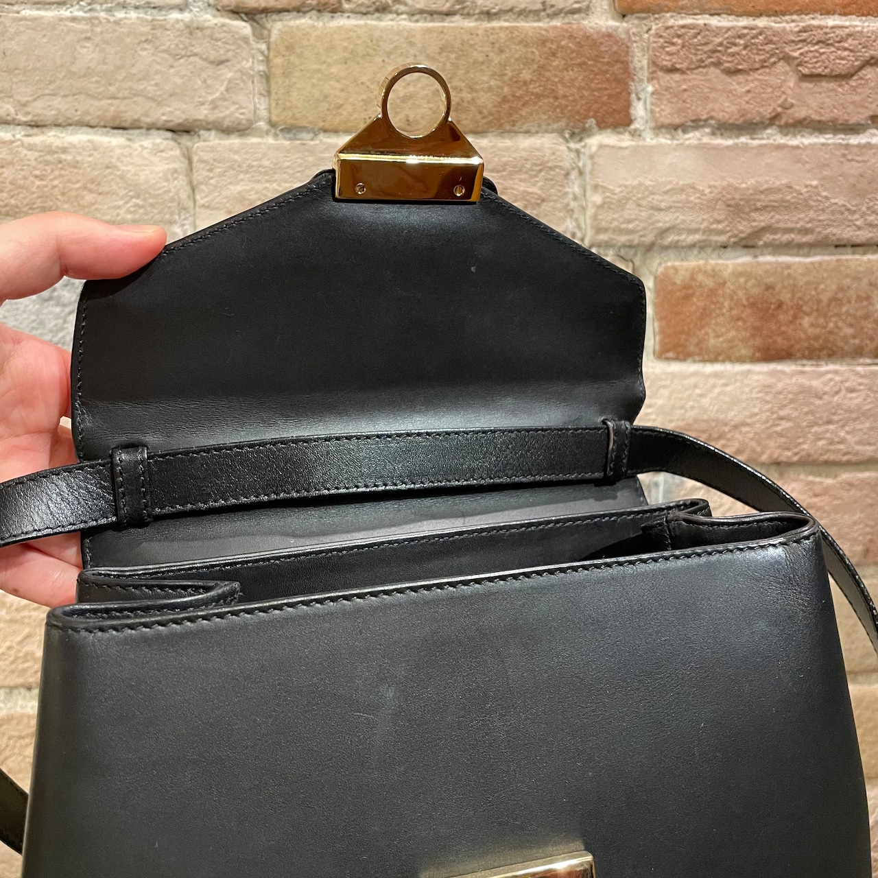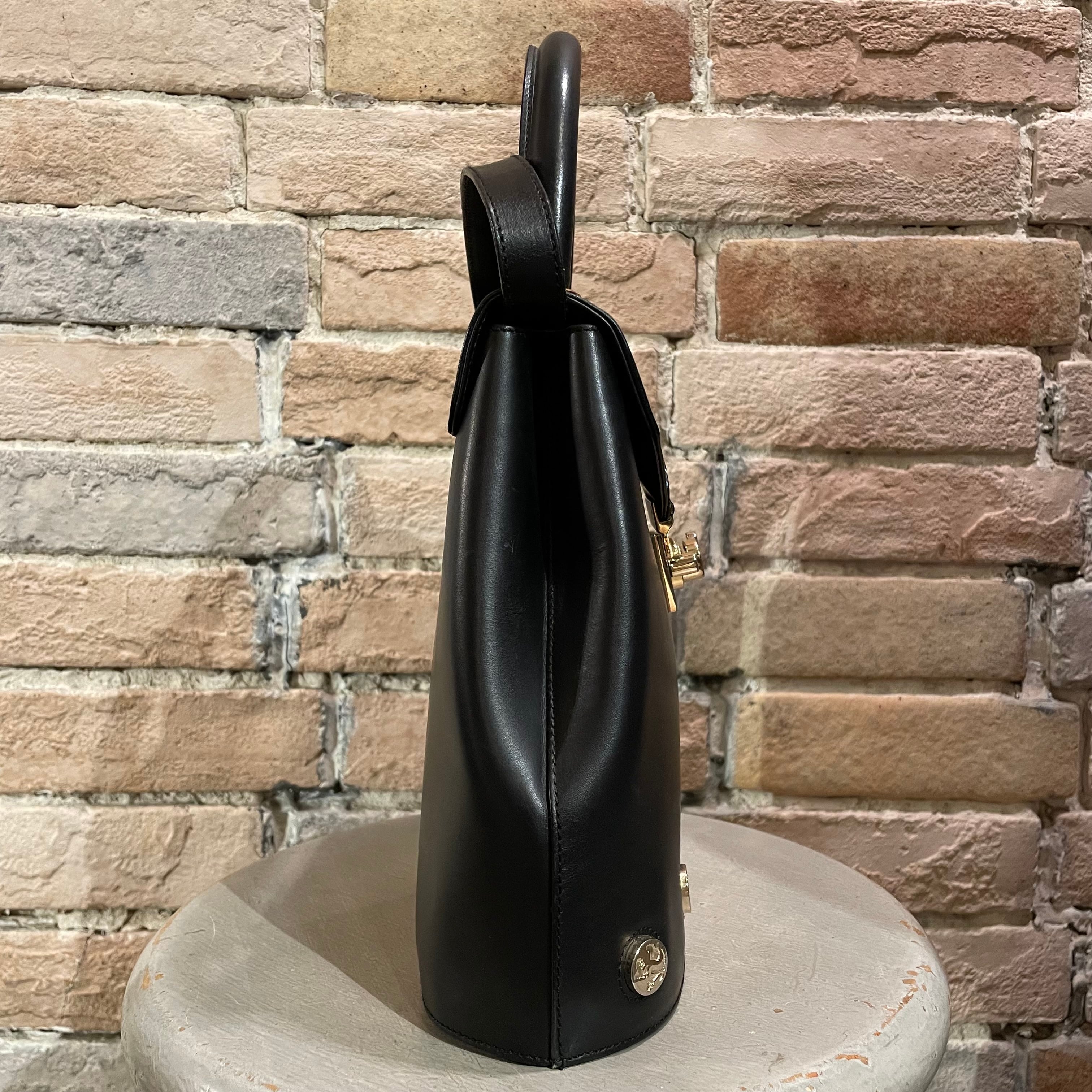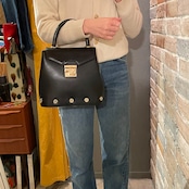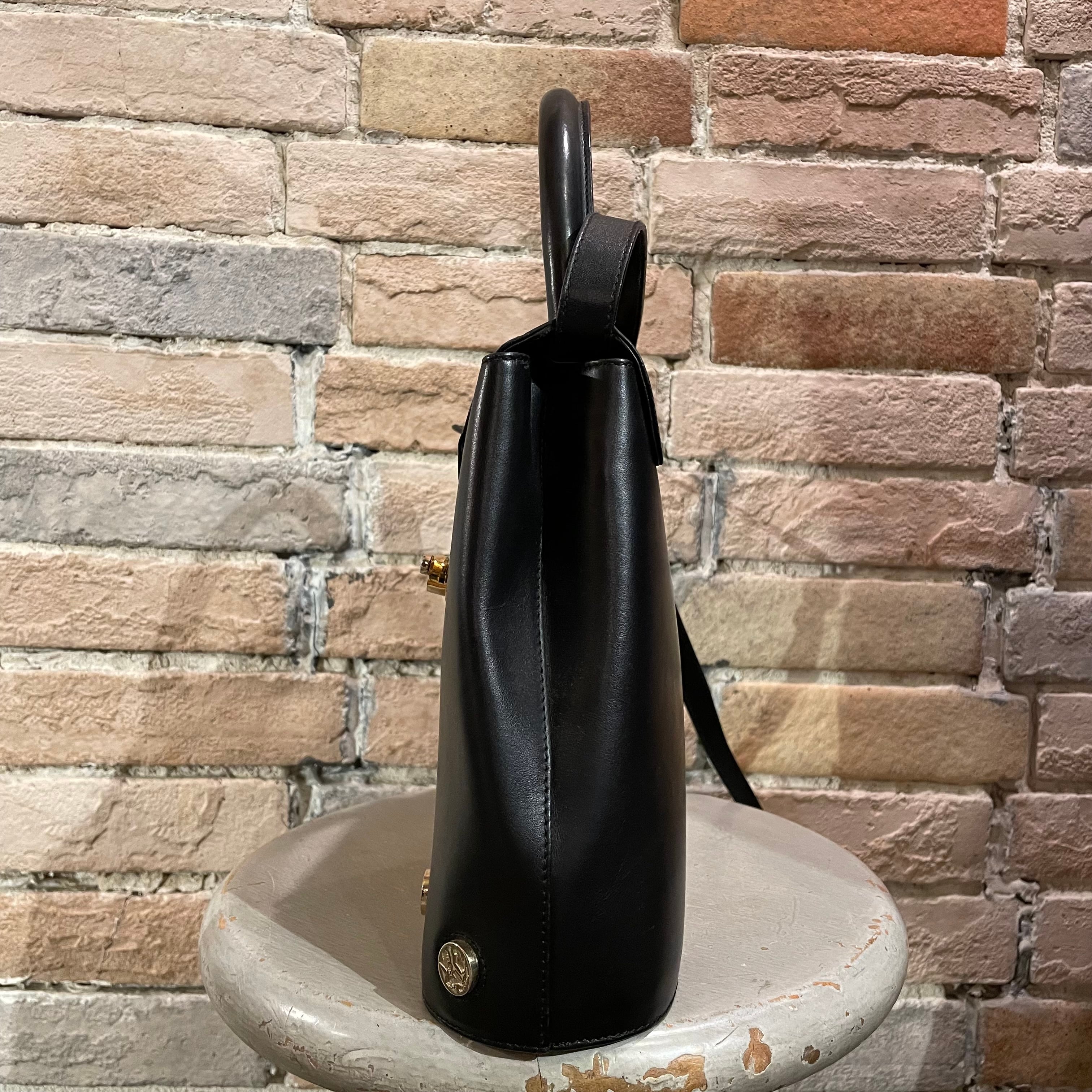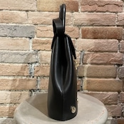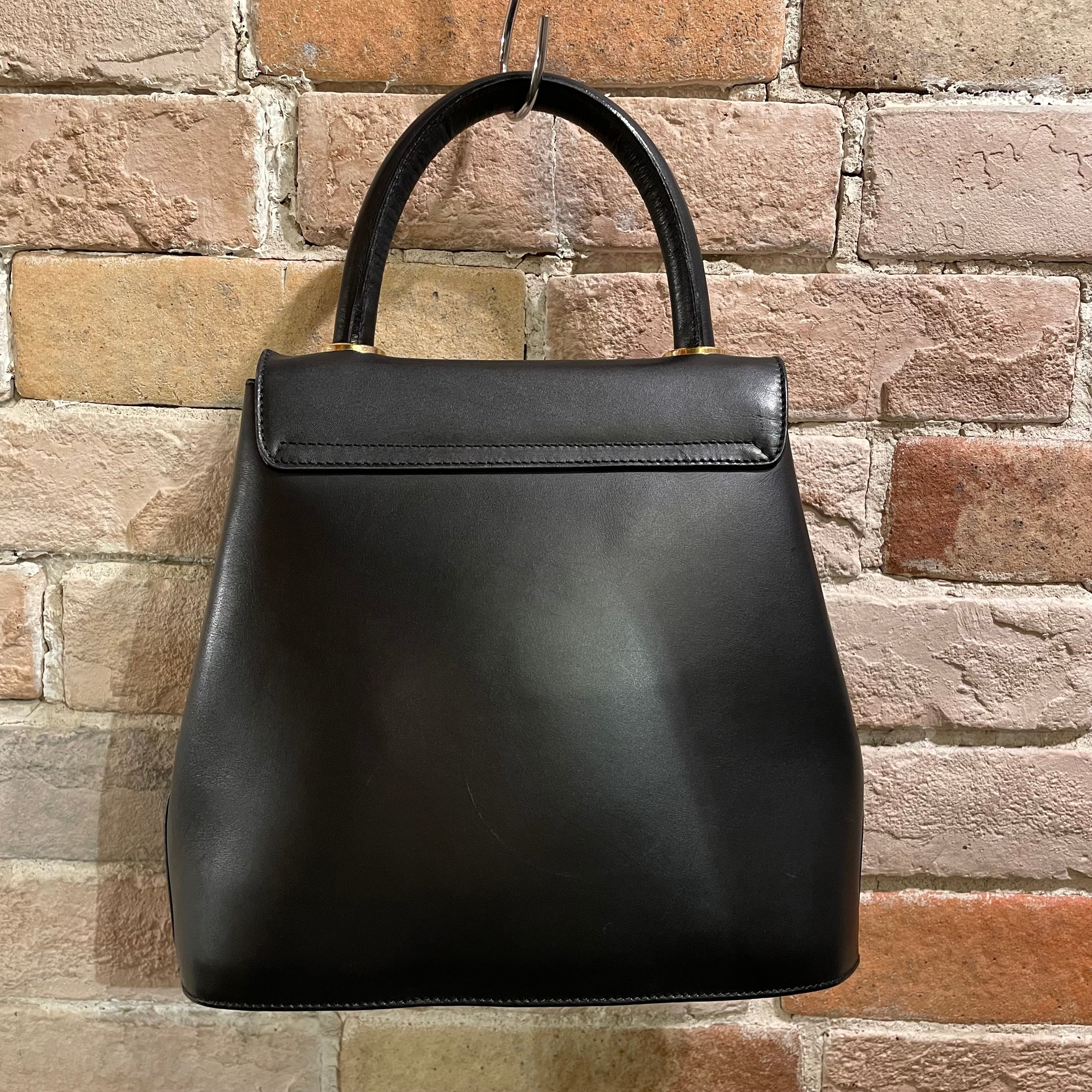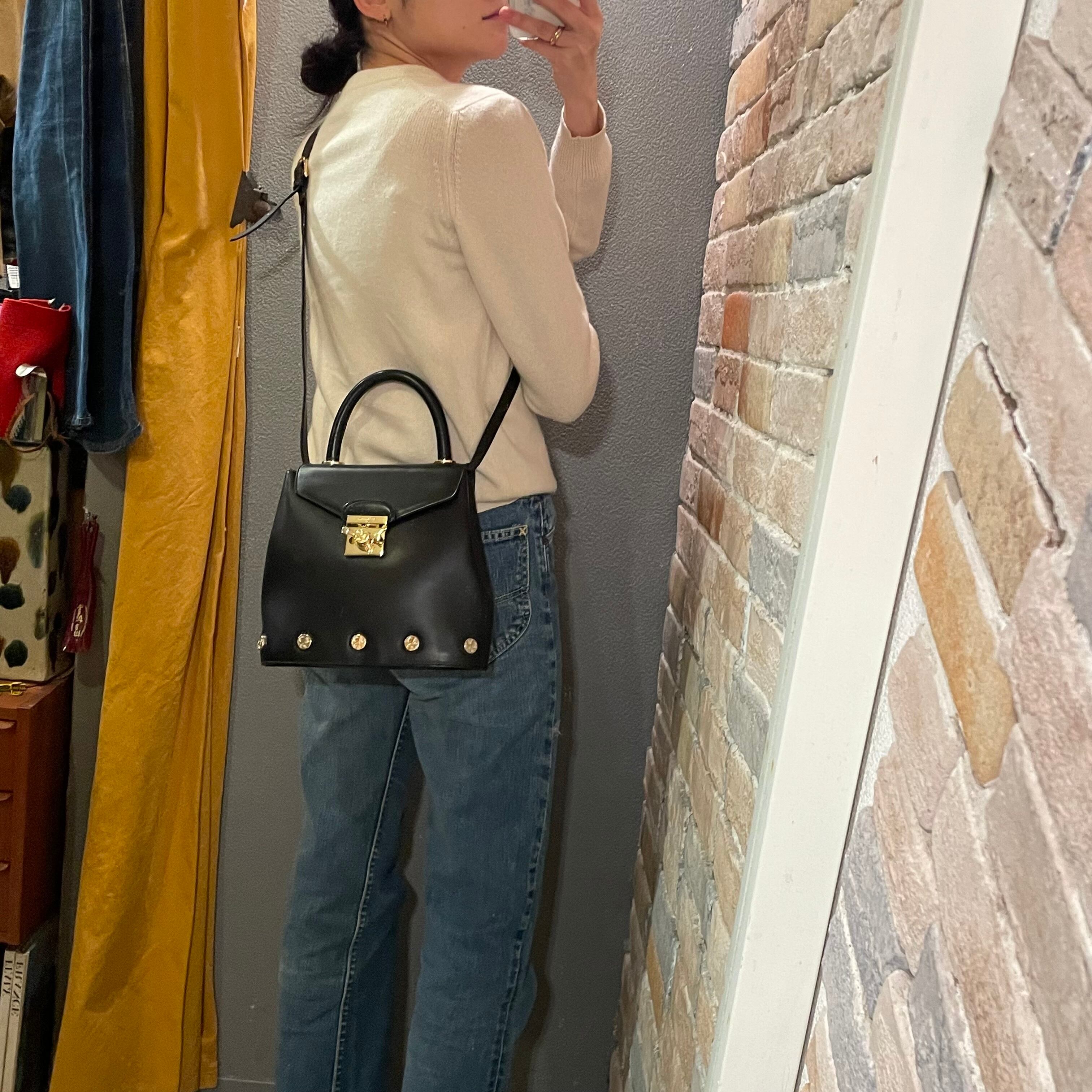 ゴールドの金具がアクセントのブラックカーフ2wayバッグ。