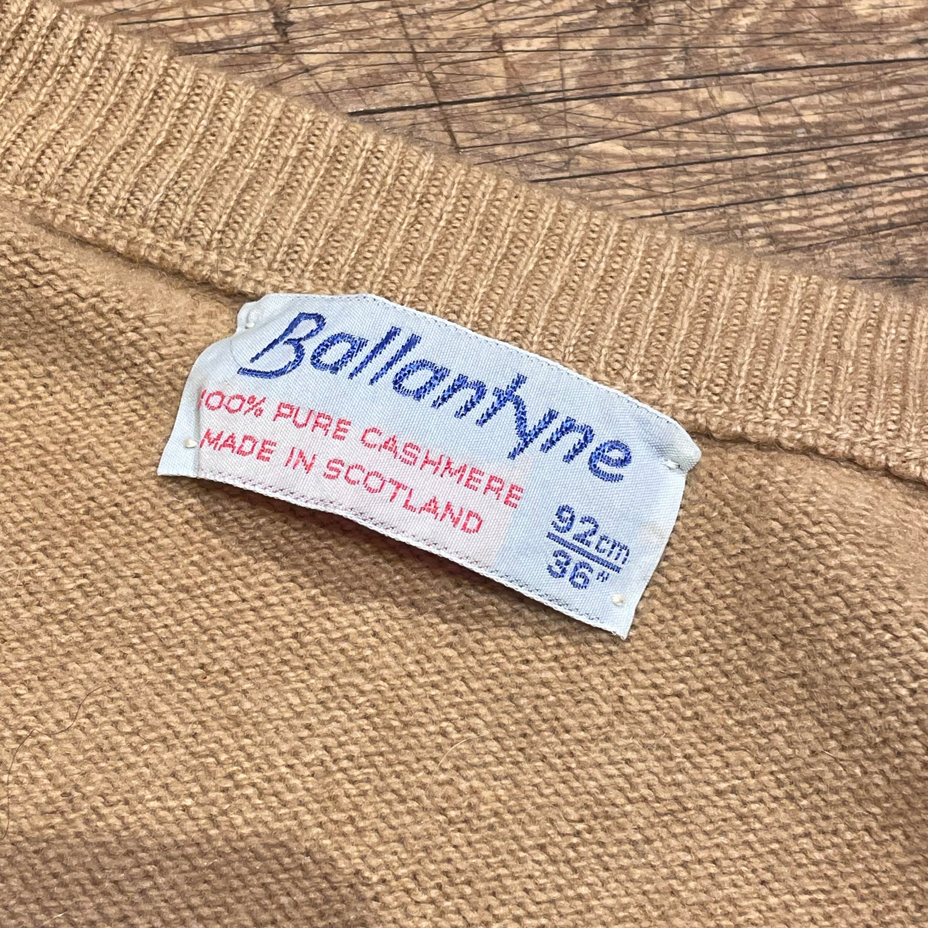 Ballantyne Ladies カシミヤ100% クルーネックカーディガン ベージュ バランタイン スコットランド製