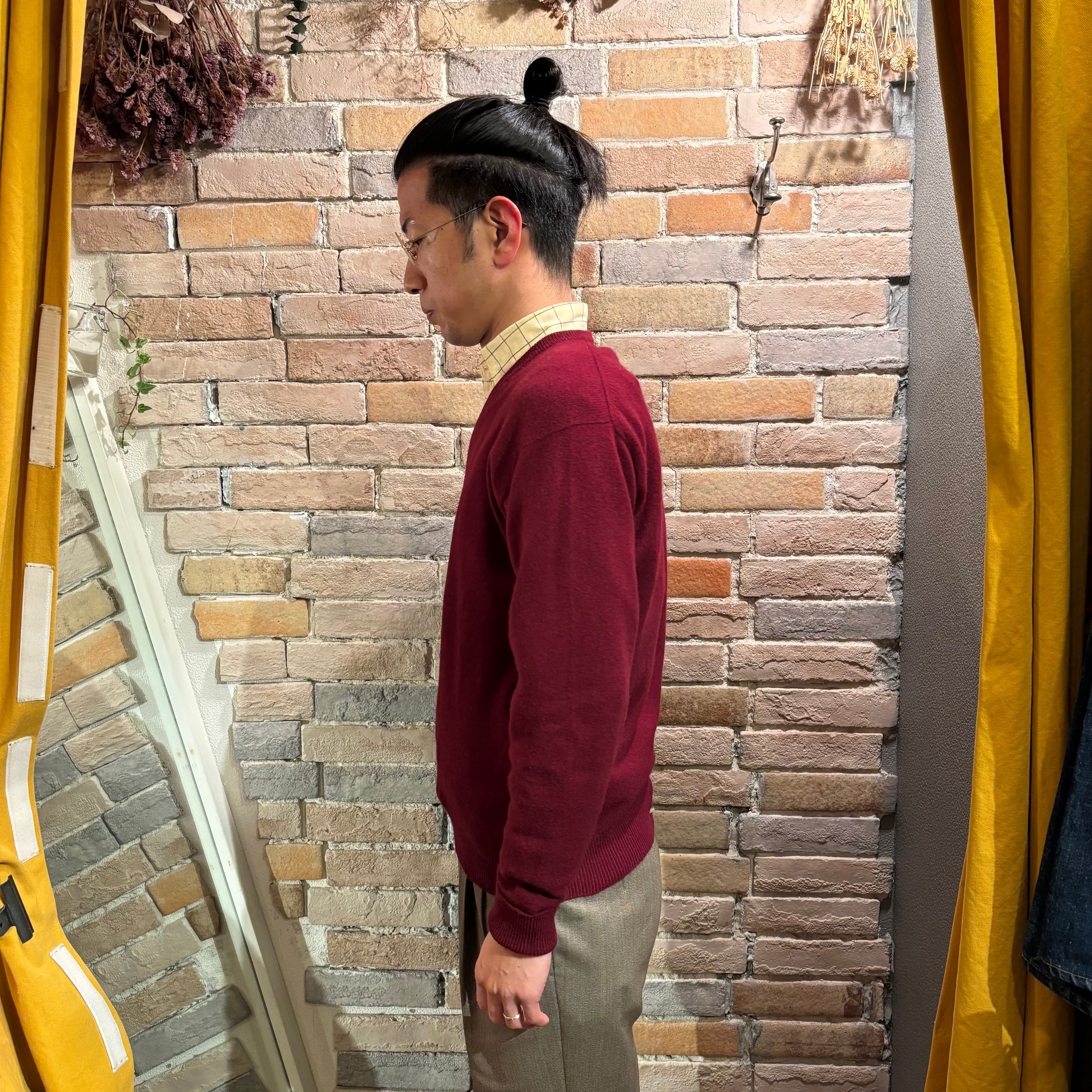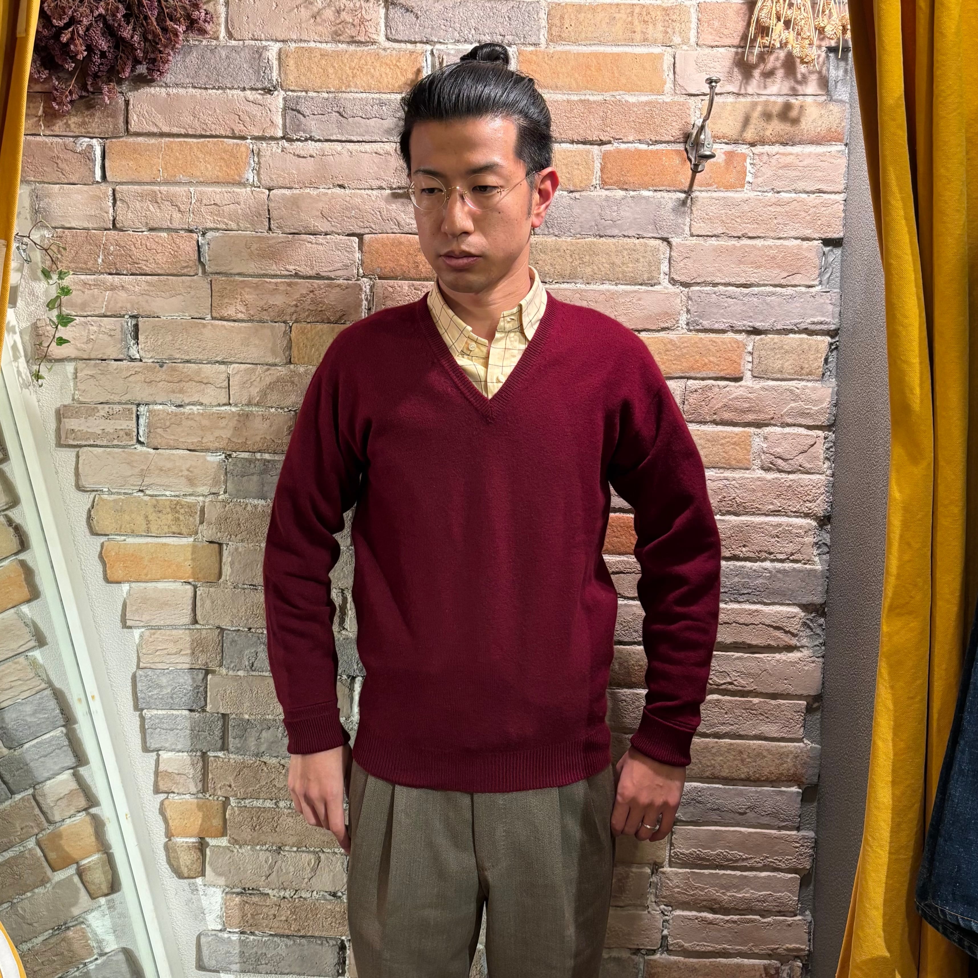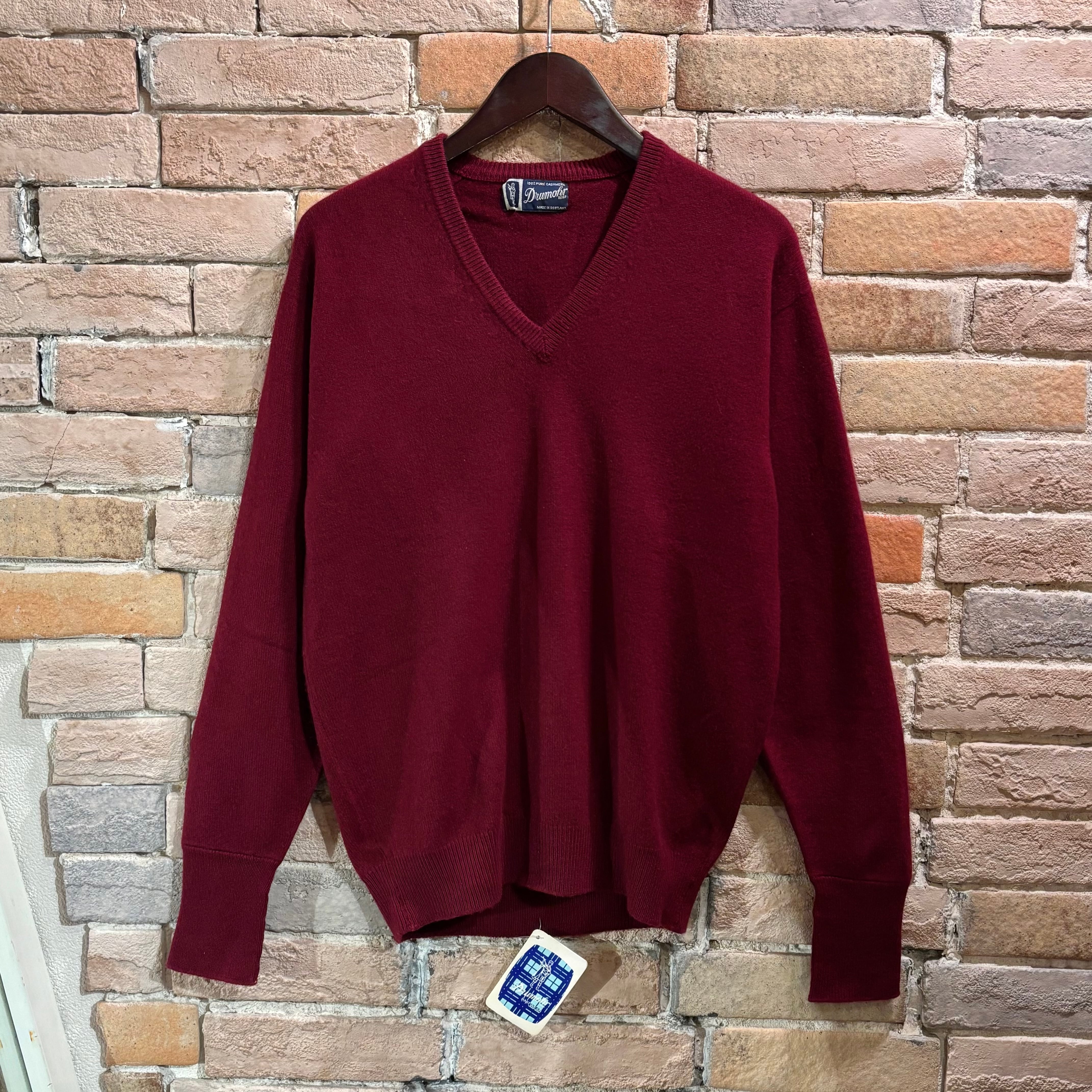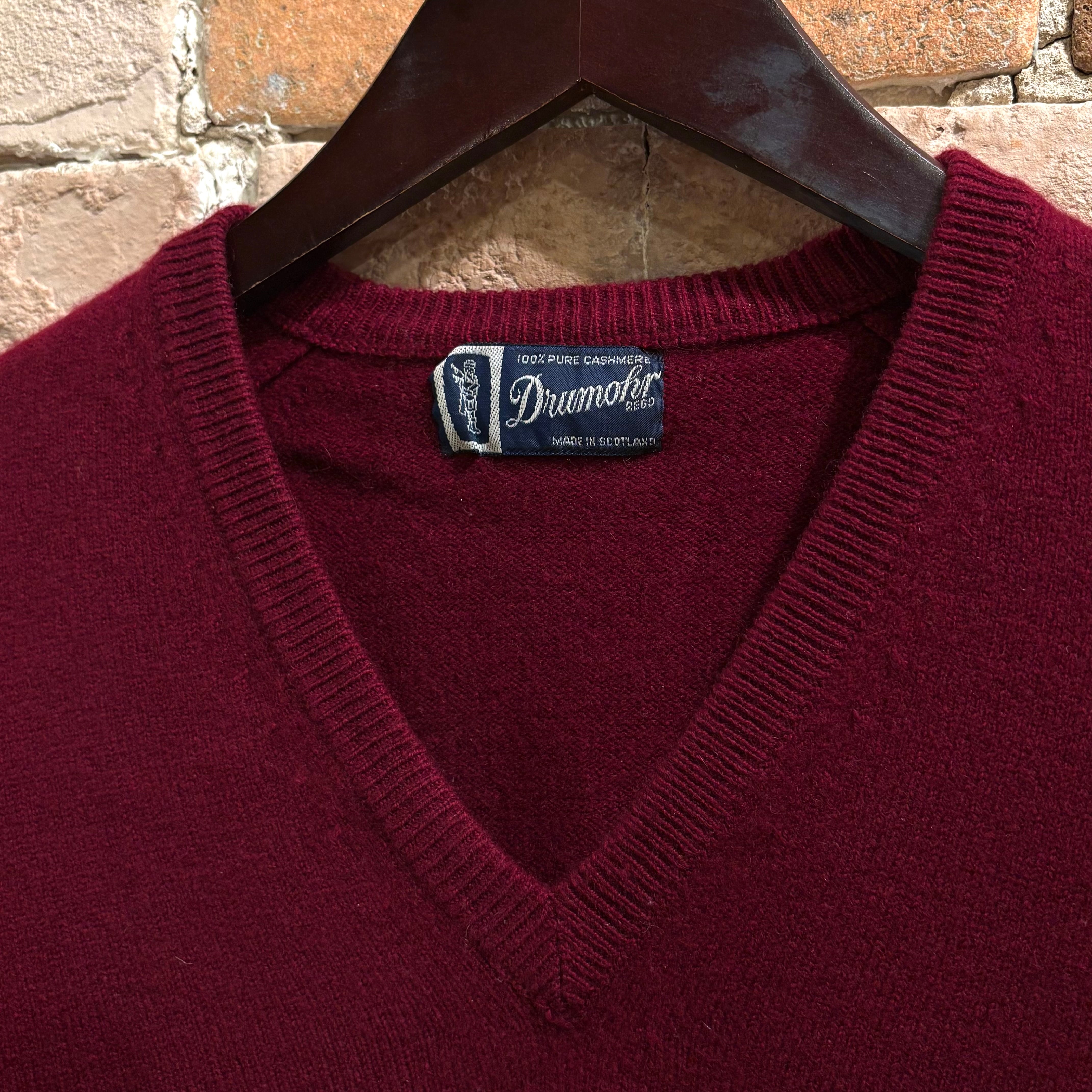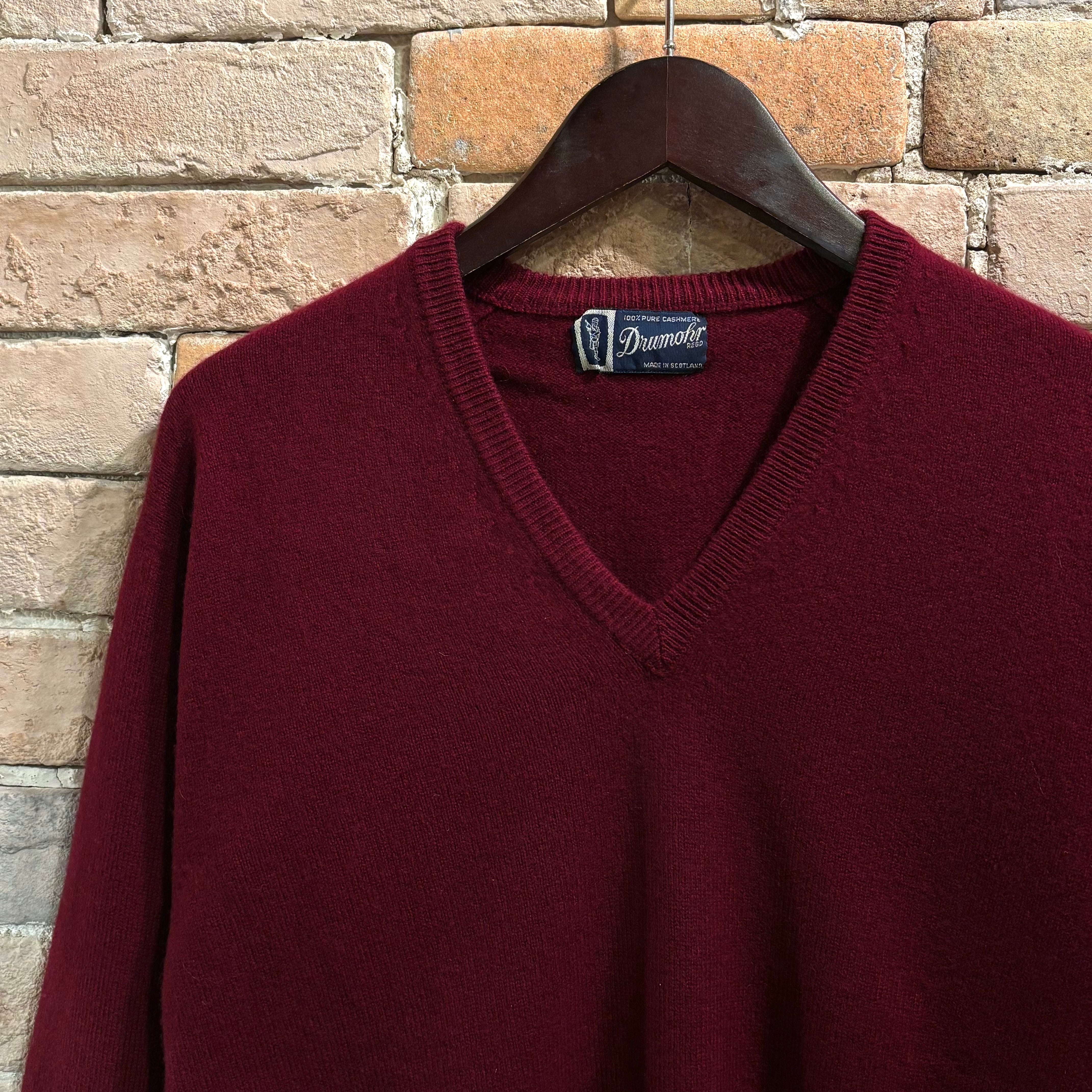 Drumohr Deadstock サイズ40 カシミヤ100% バーガンディ Vネックニット スコットランド製 ドルモア デッドストック