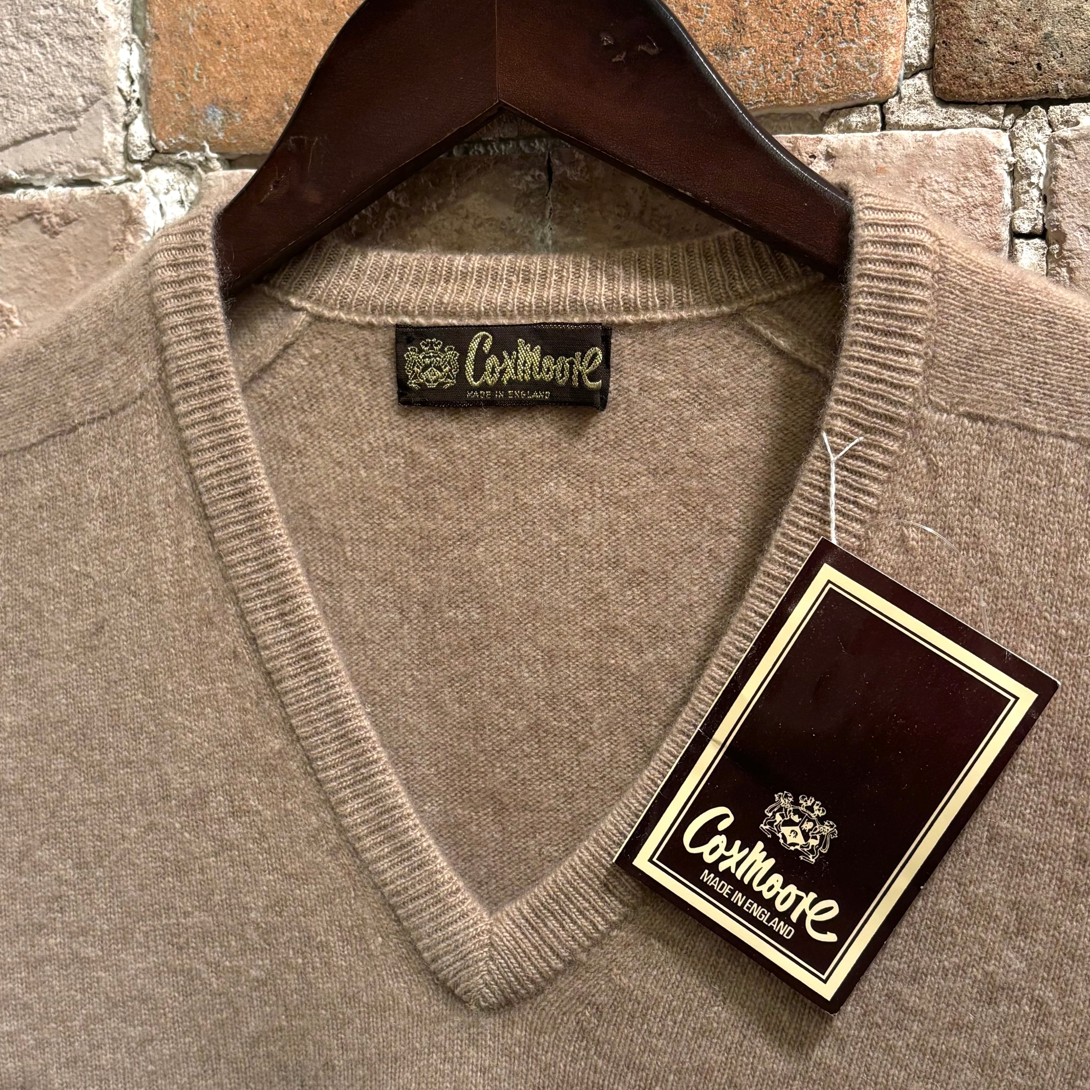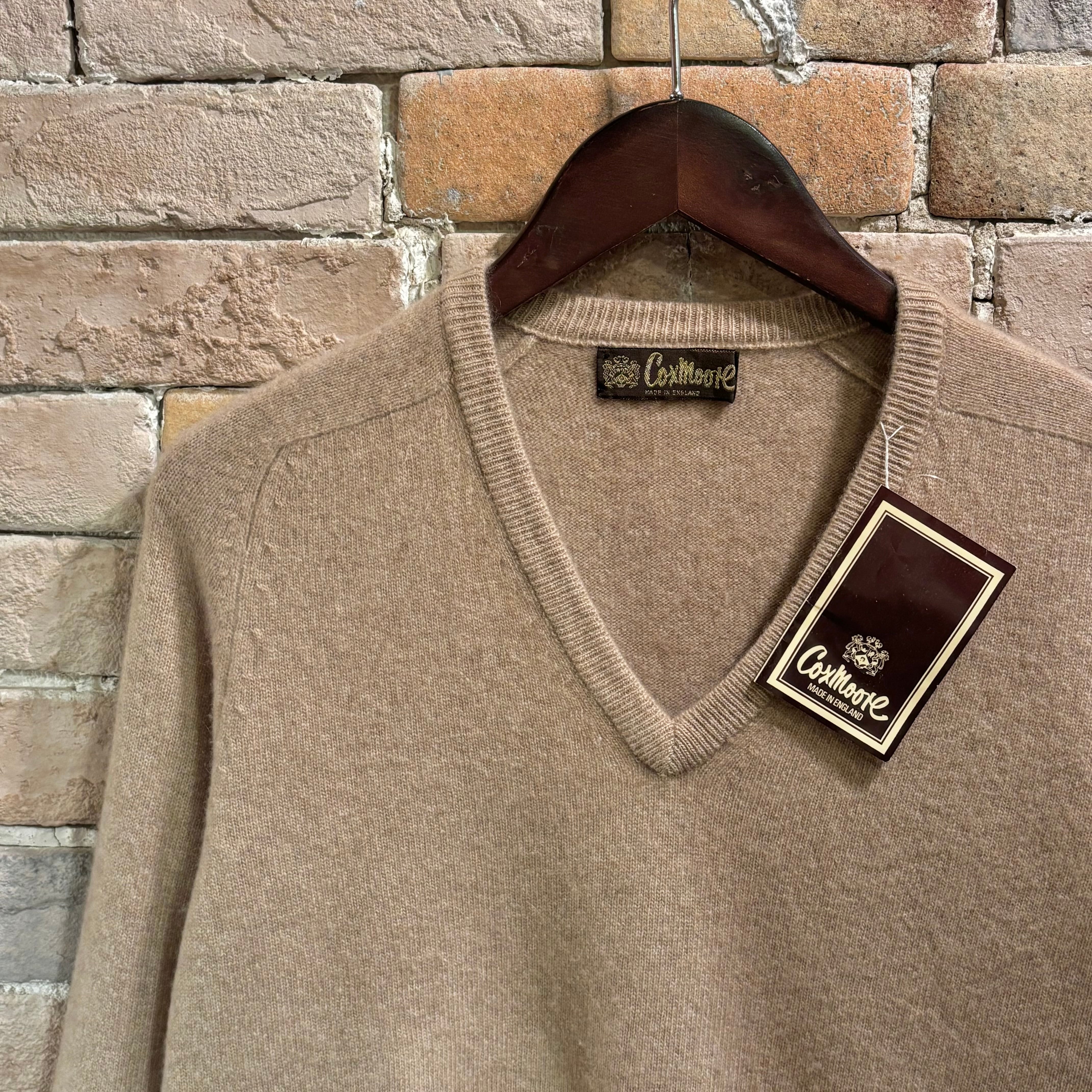 Coxmore Deadstock サイズ38 カシミヤ100% ベージュ Vネックニット イングランド製 コックスモア デッドストック