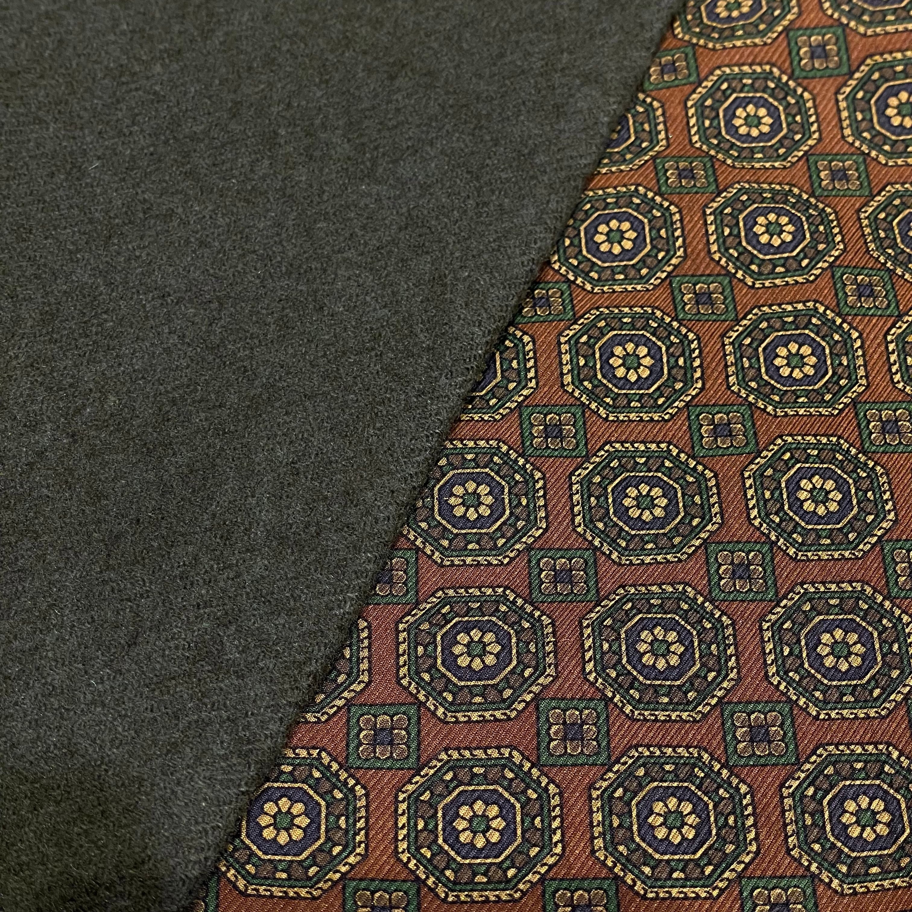 オリーブのカシミヤの面はブラウンも混ざった美しい色合いです。