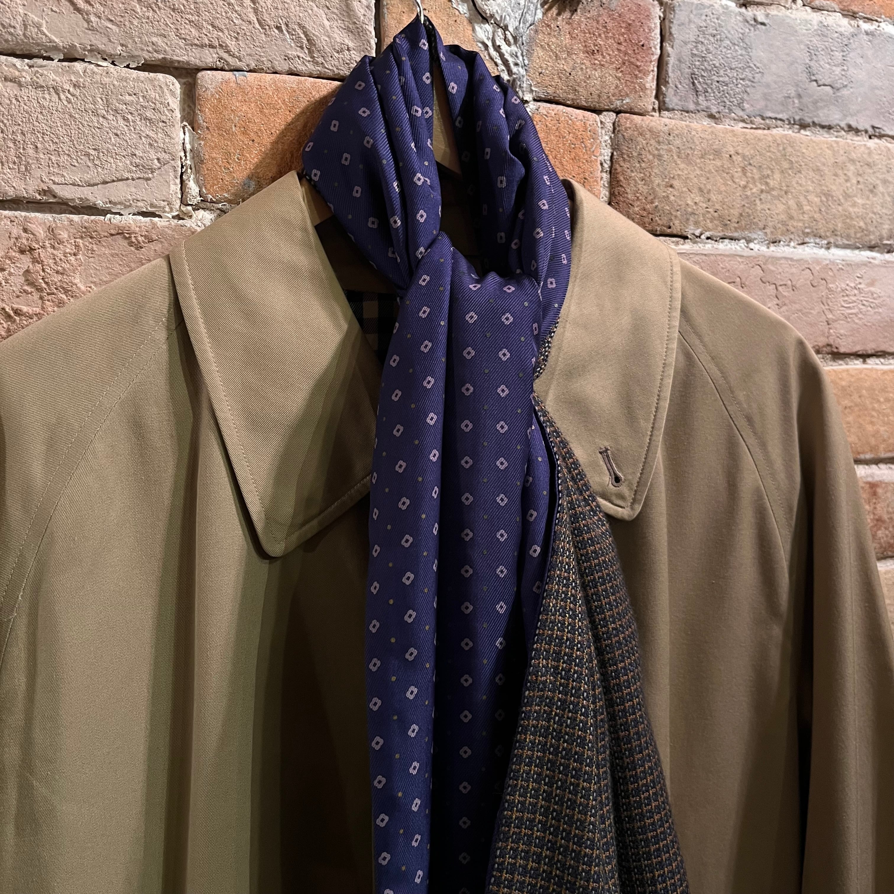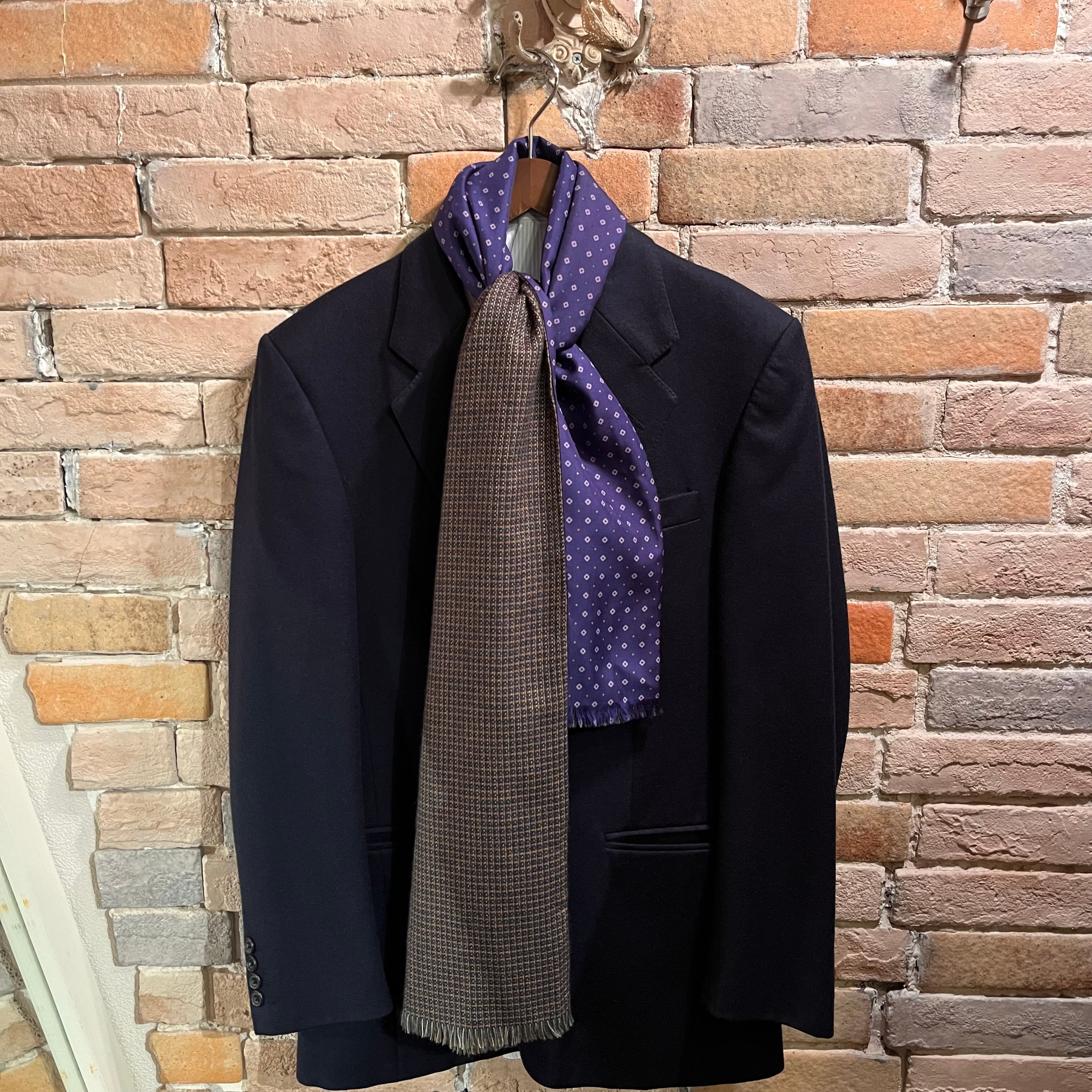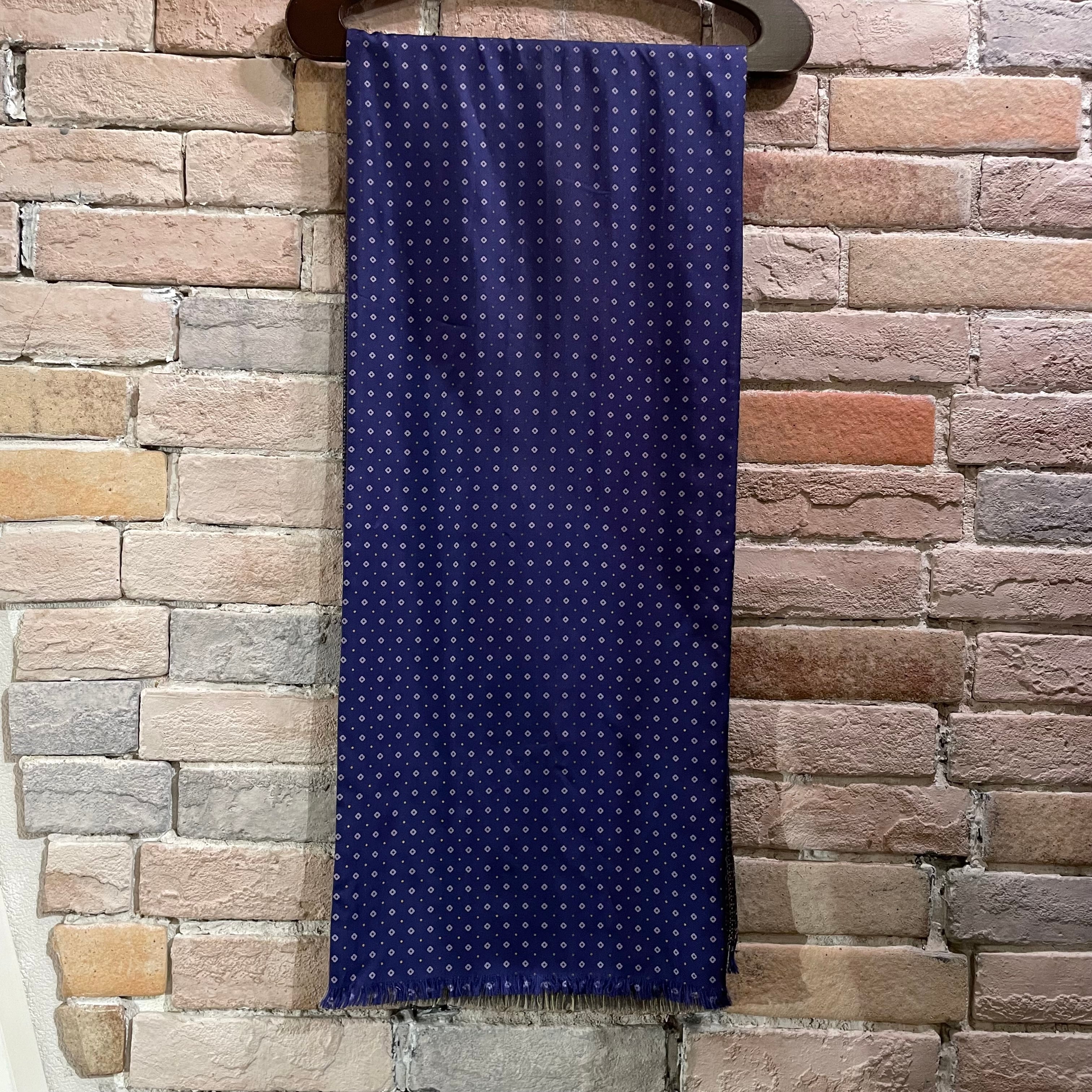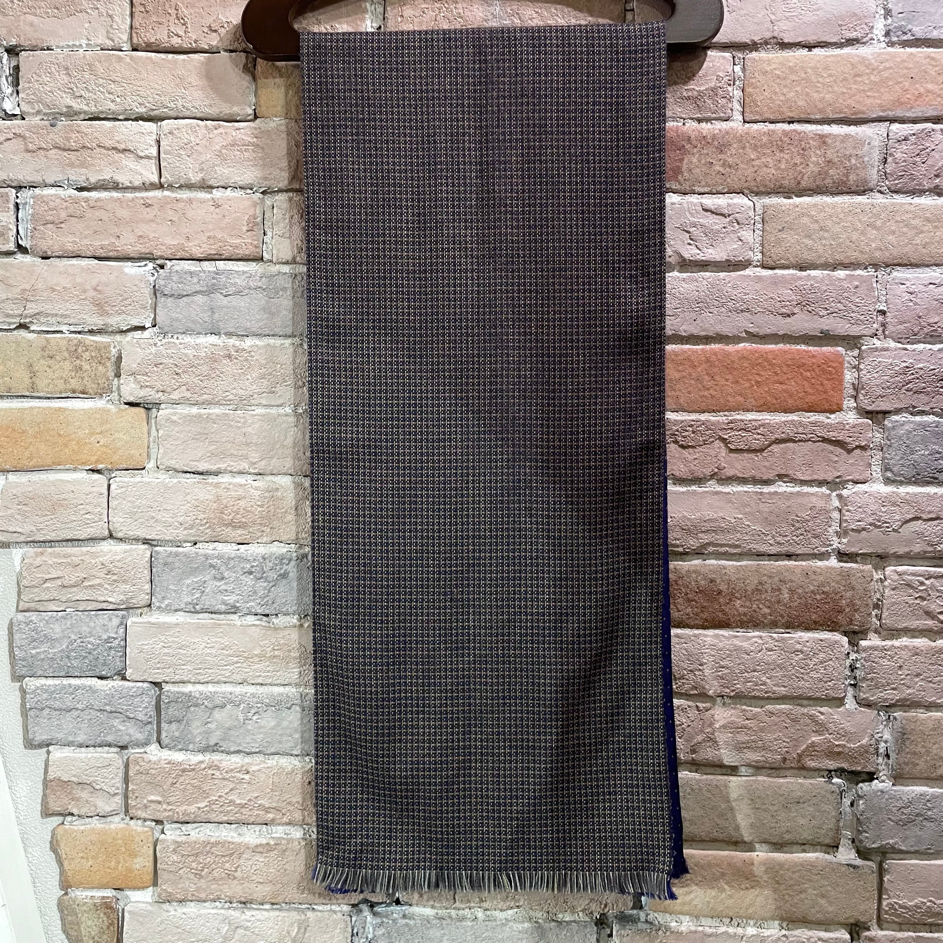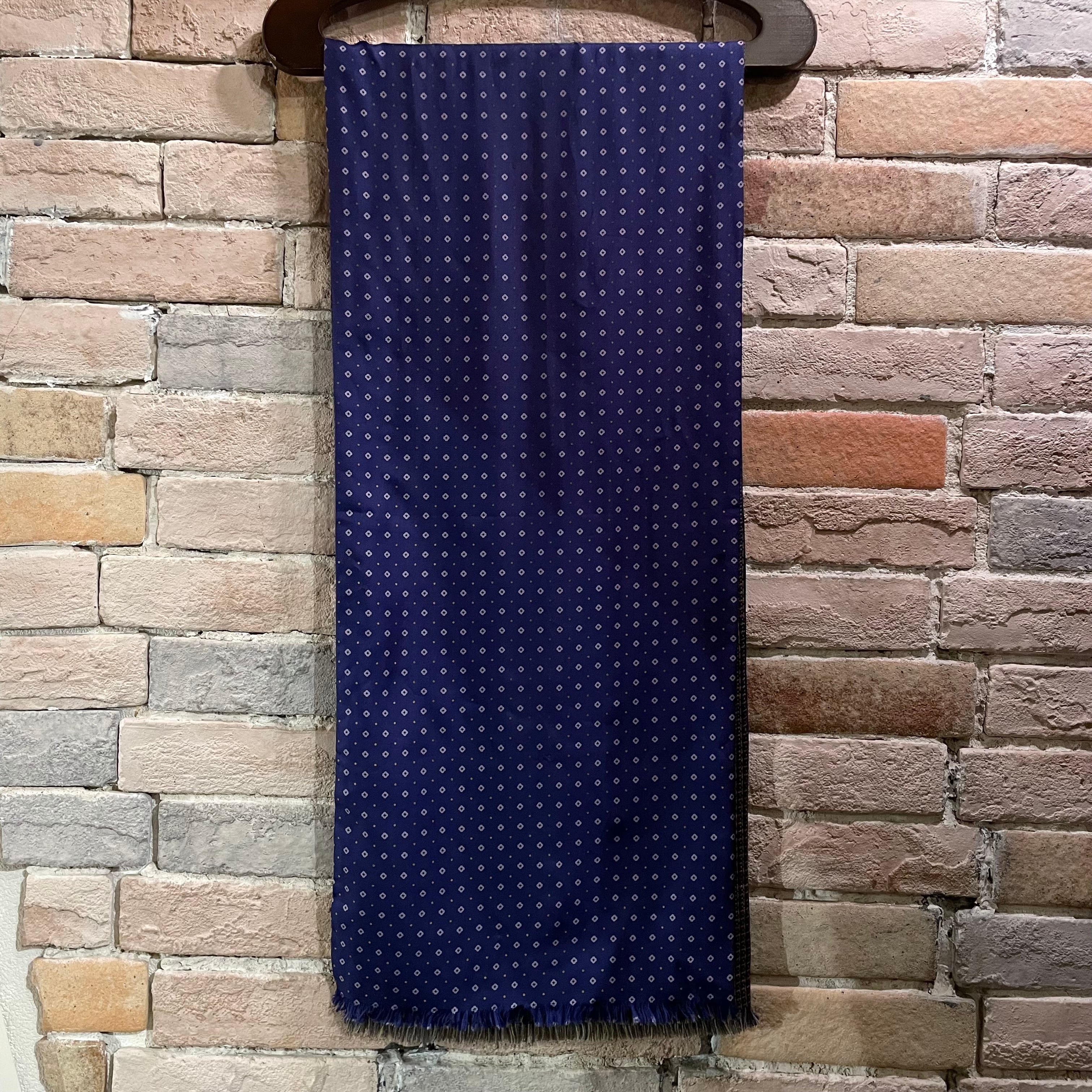 カシミヤのチェック×シルクのネイビーの小紋柄で仕事にも使いやすいストールです。