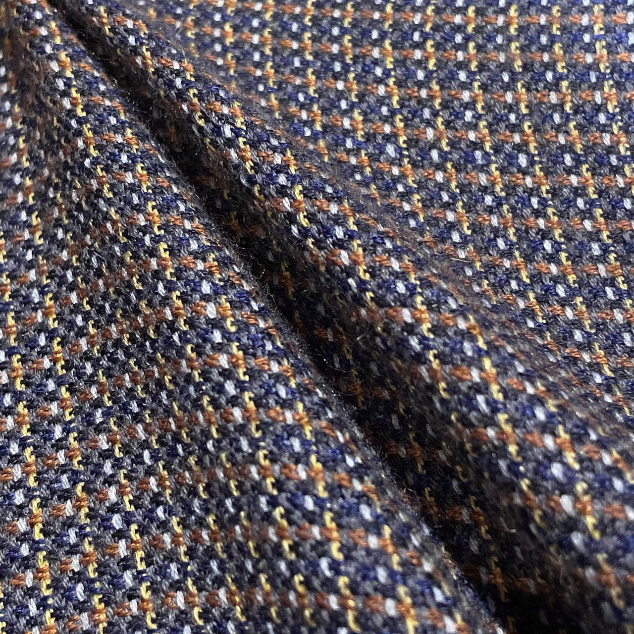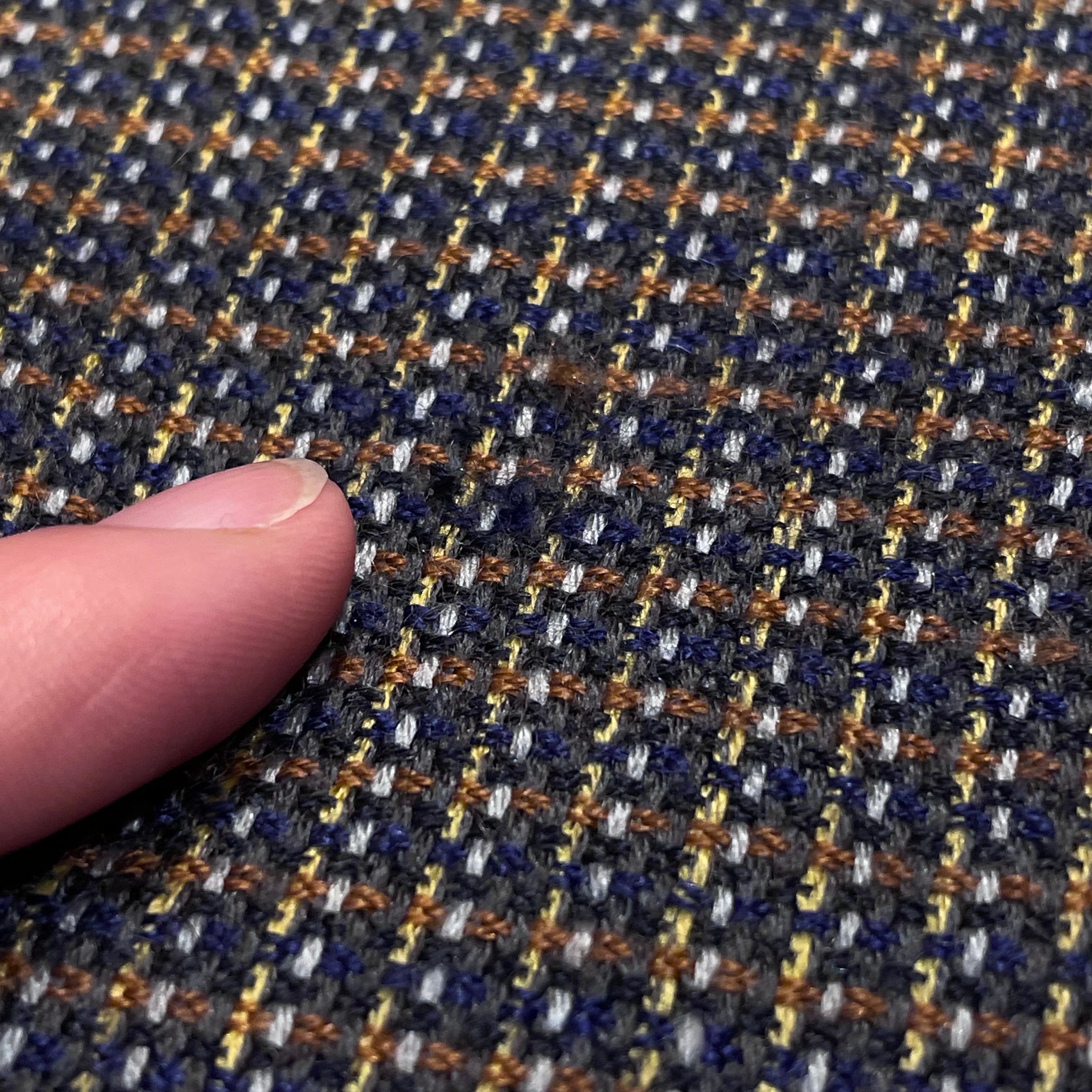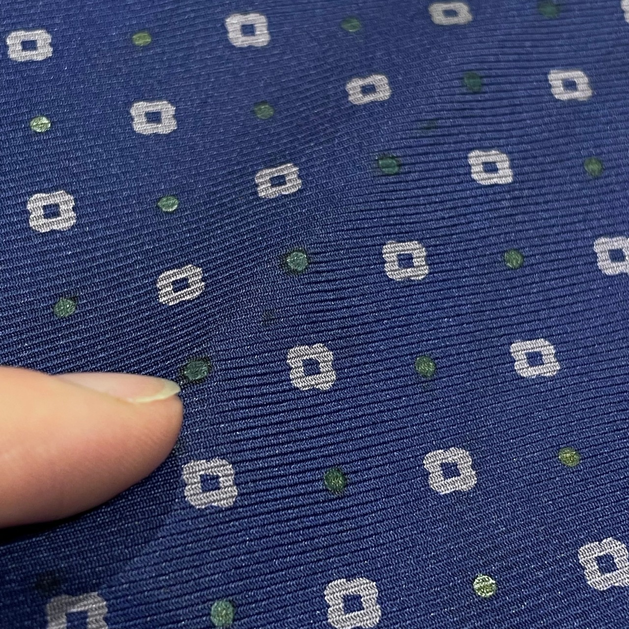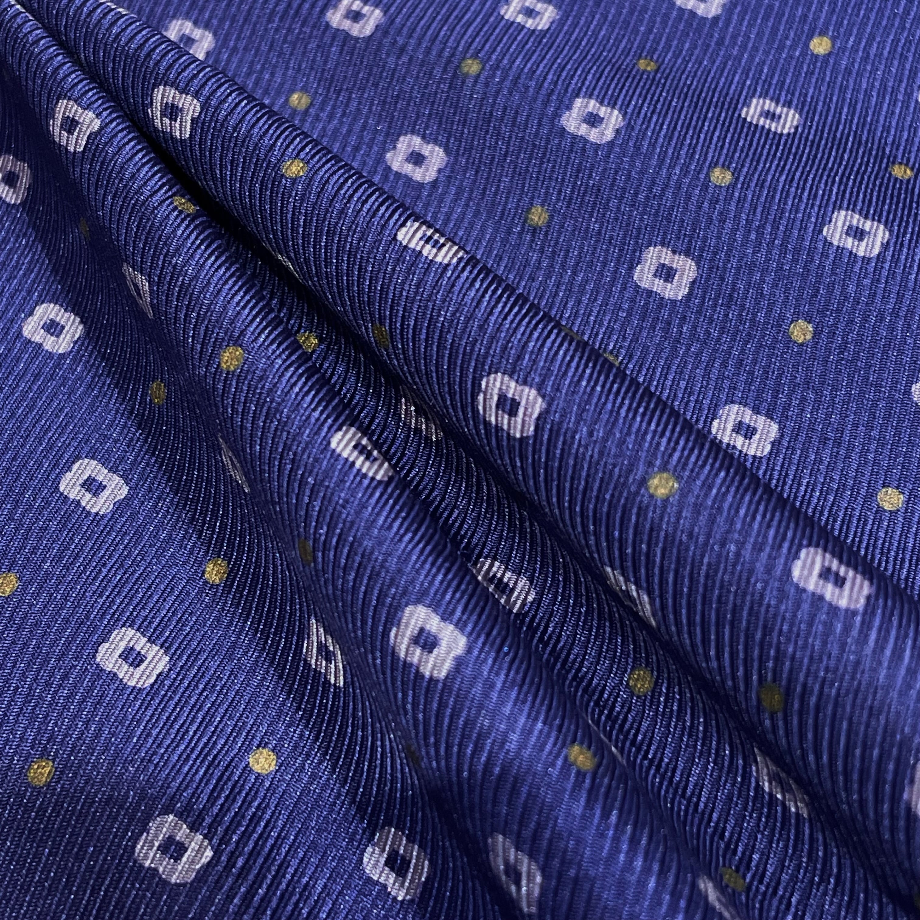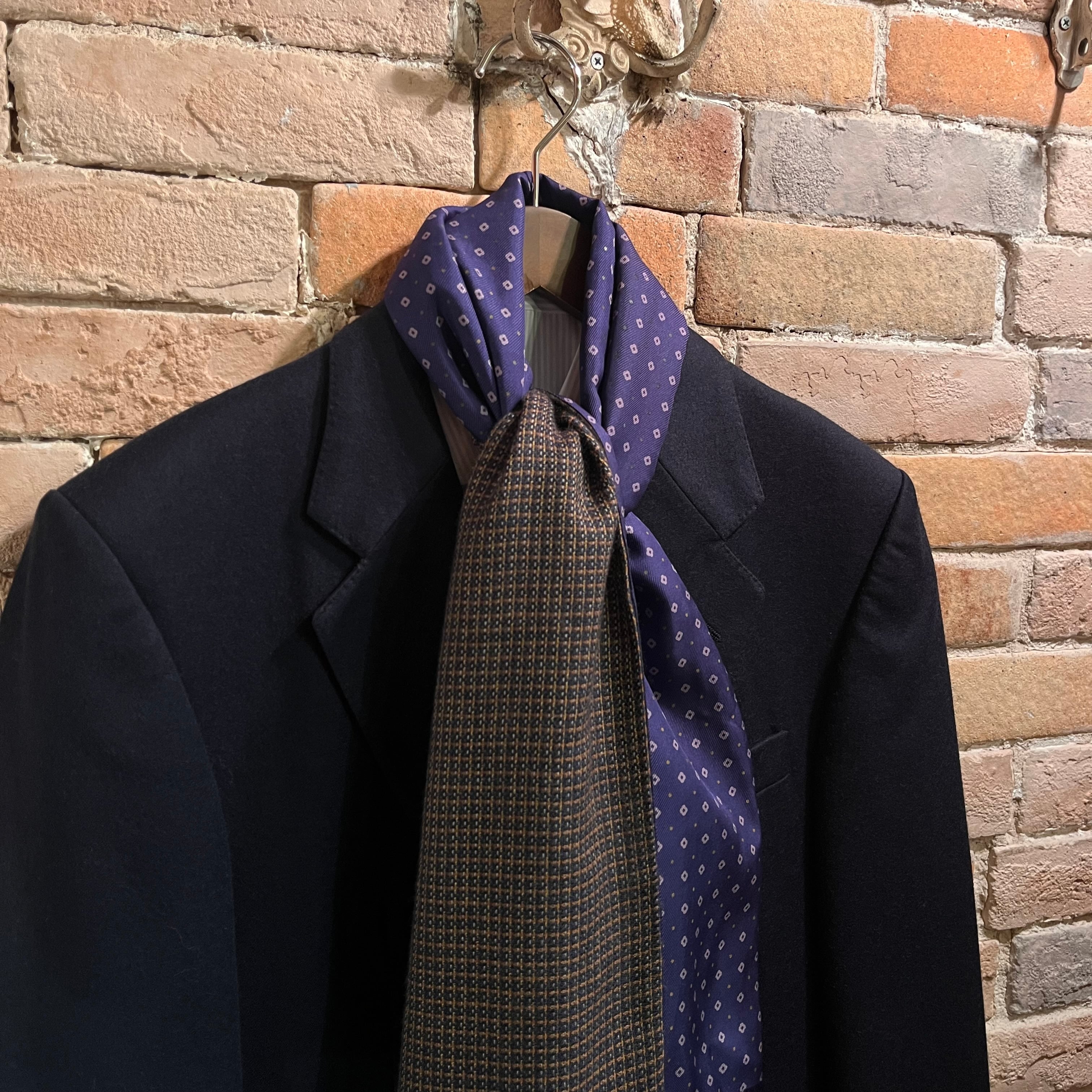 カシミヤのチェック×シルクのネイビーの小紋柄で仕事にも使いやすいストールです。