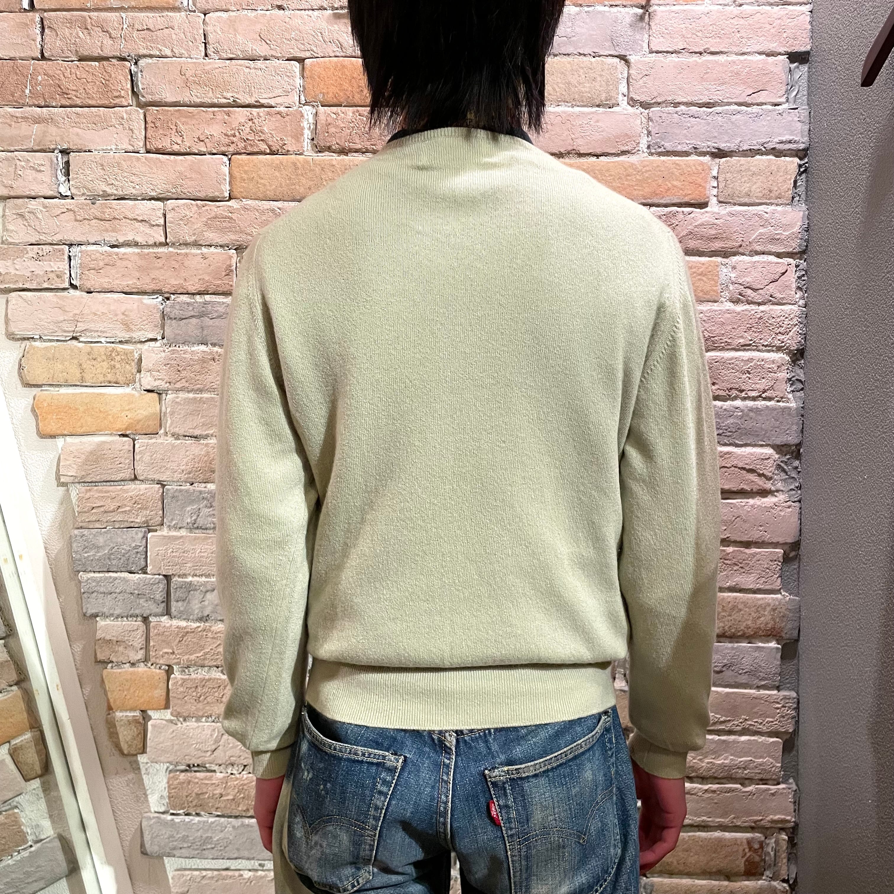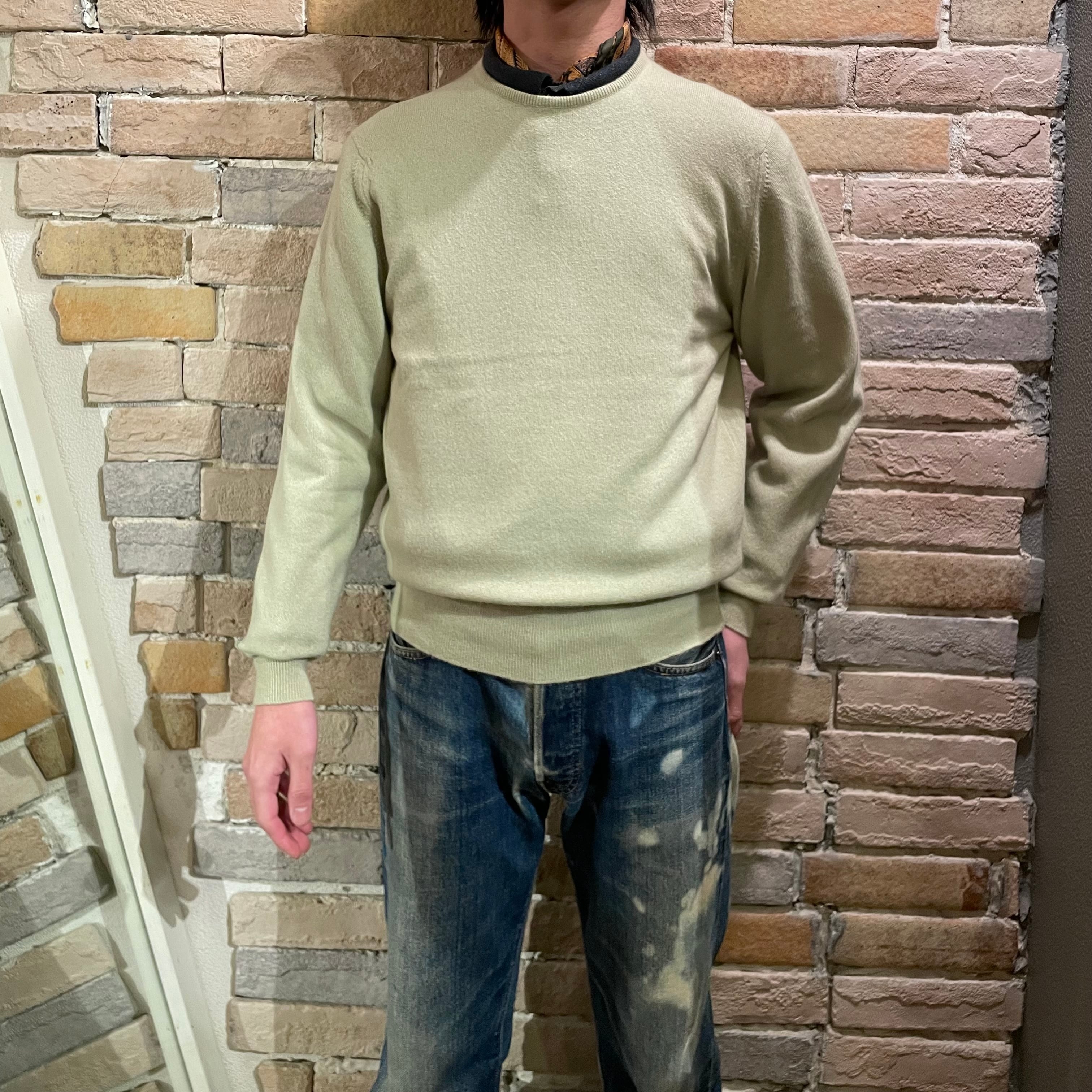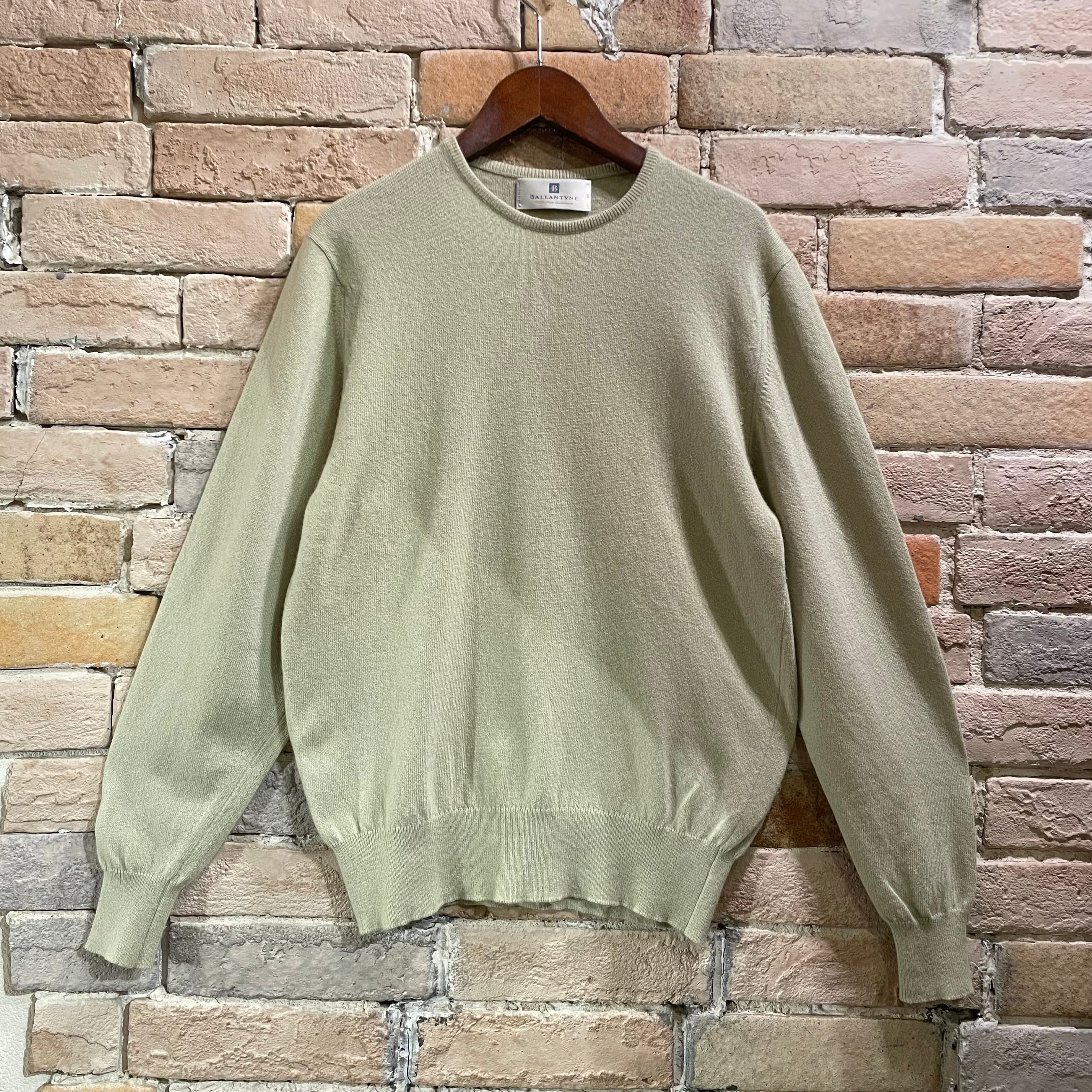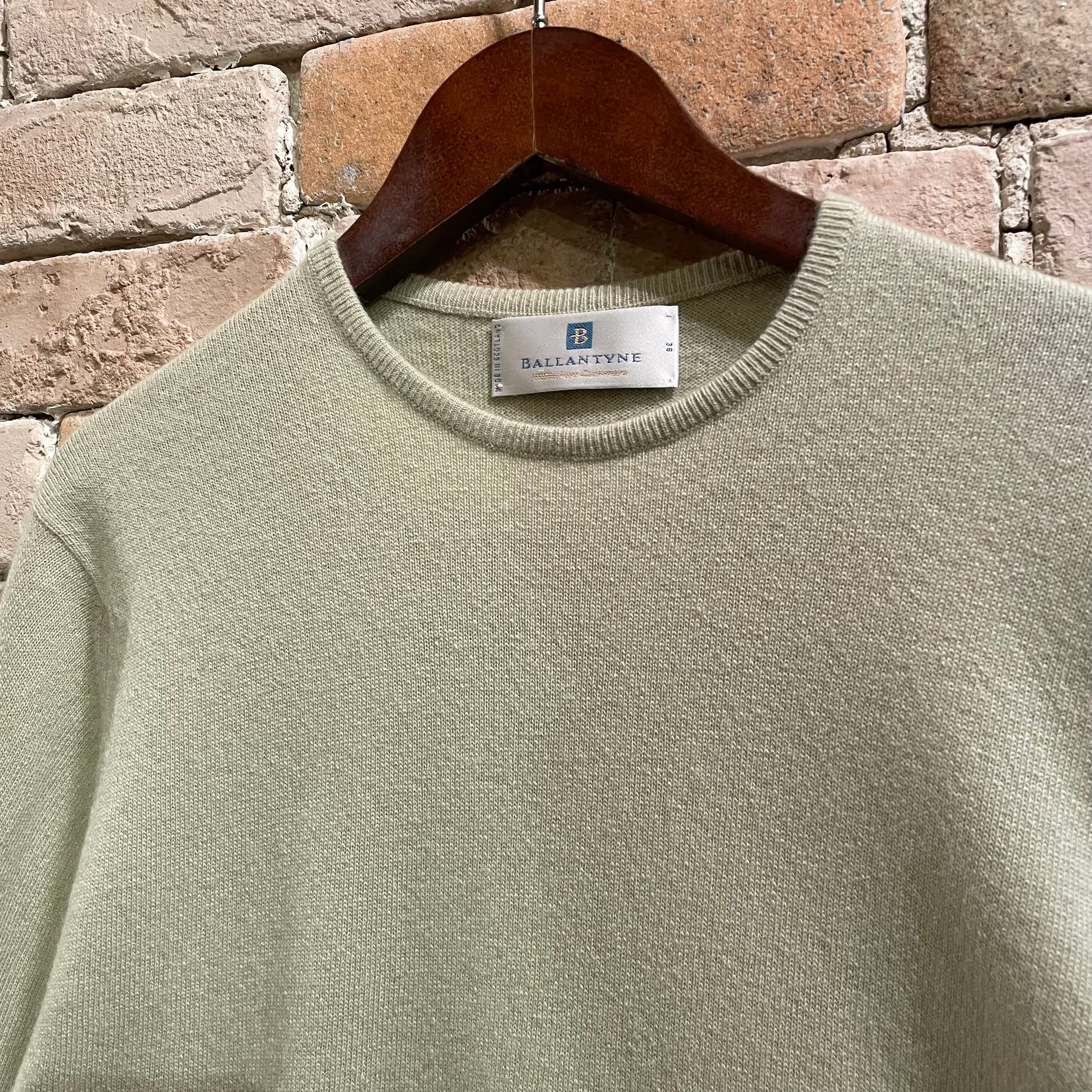 Ballantyne サイズ38 1ply カシミヤクルーネックニット スコットランド製 ライトグリーン バランタイン
