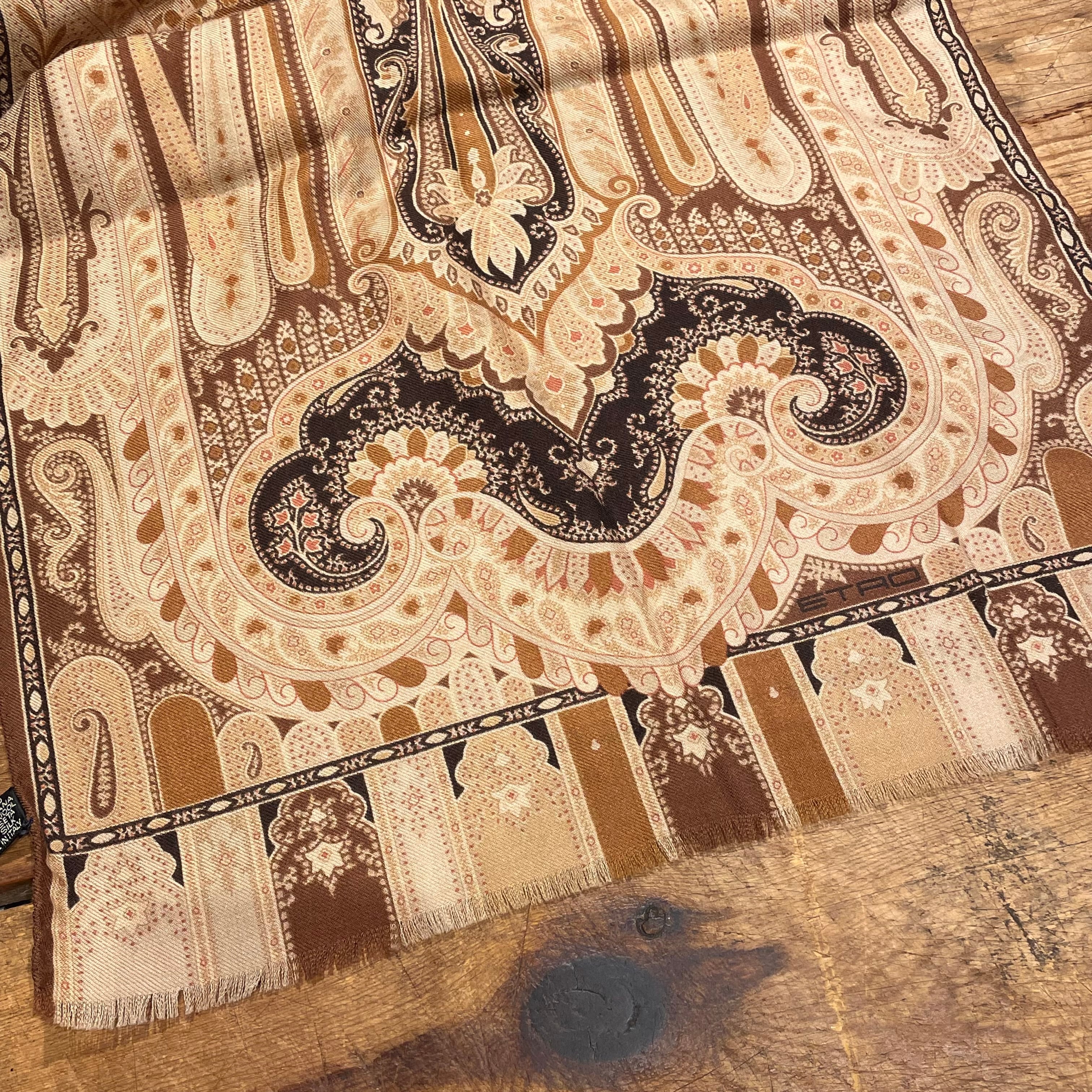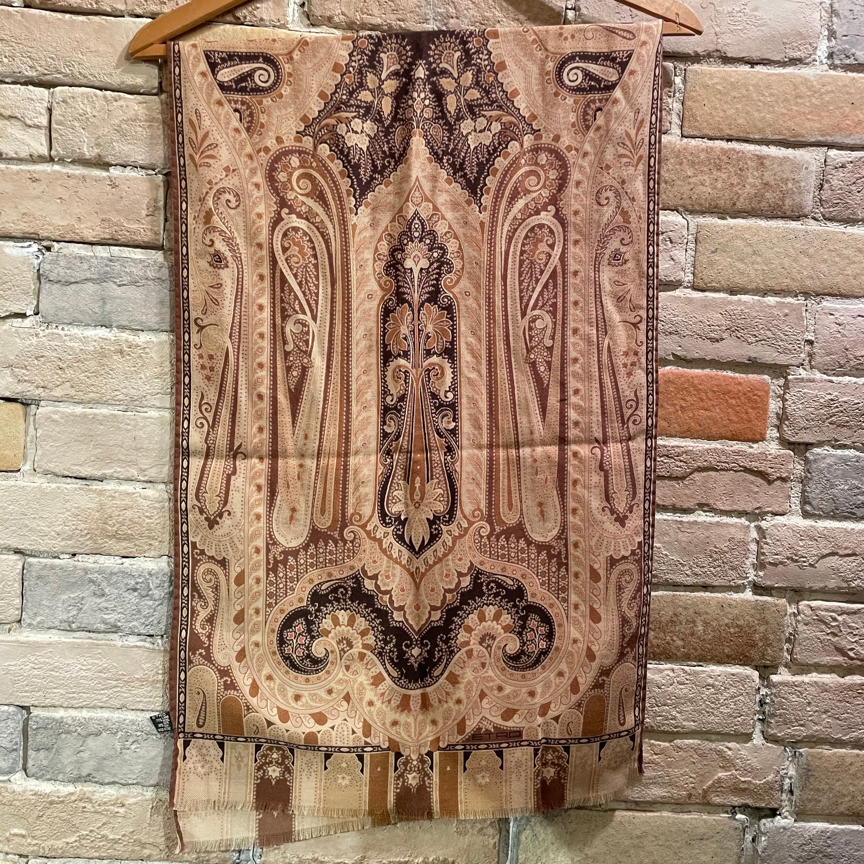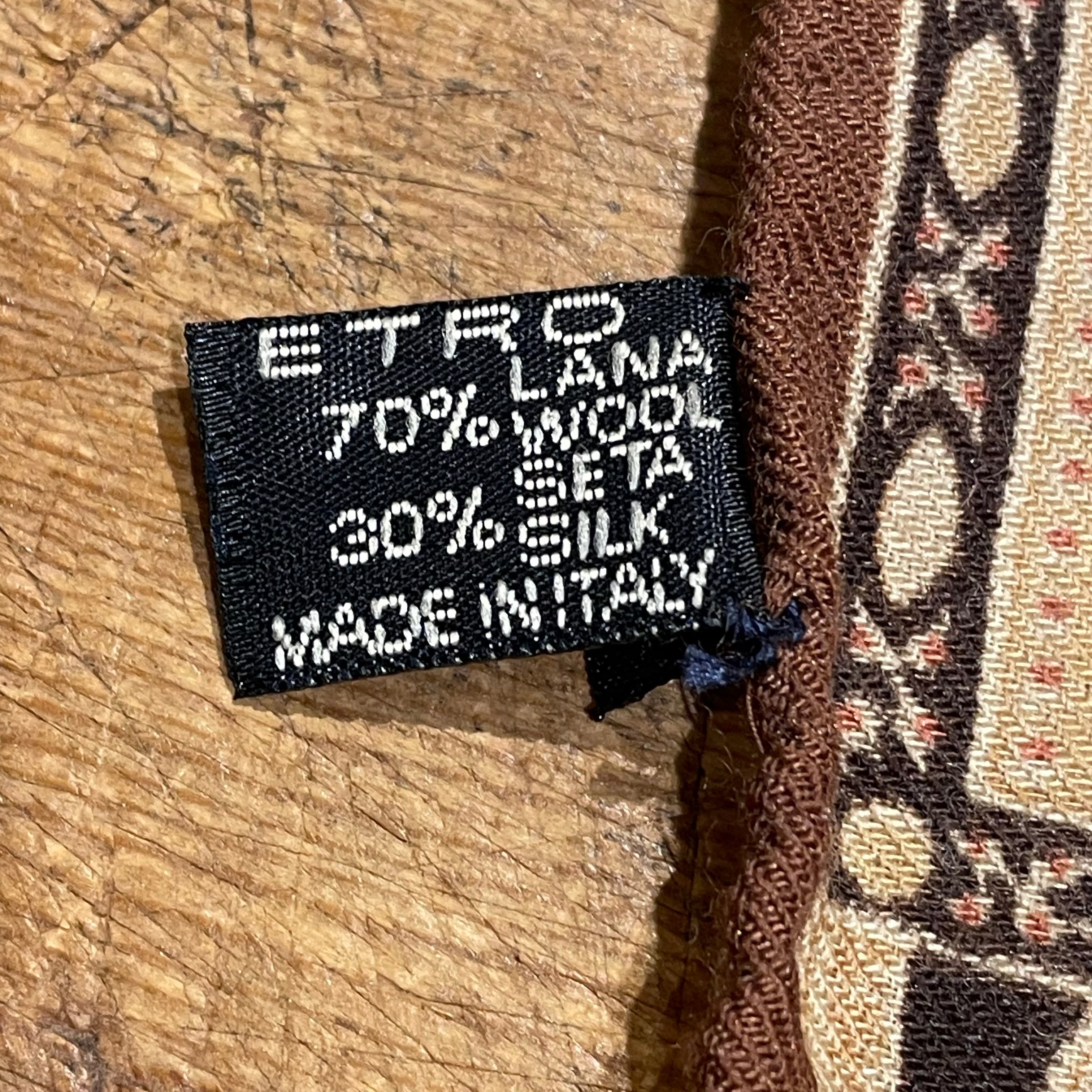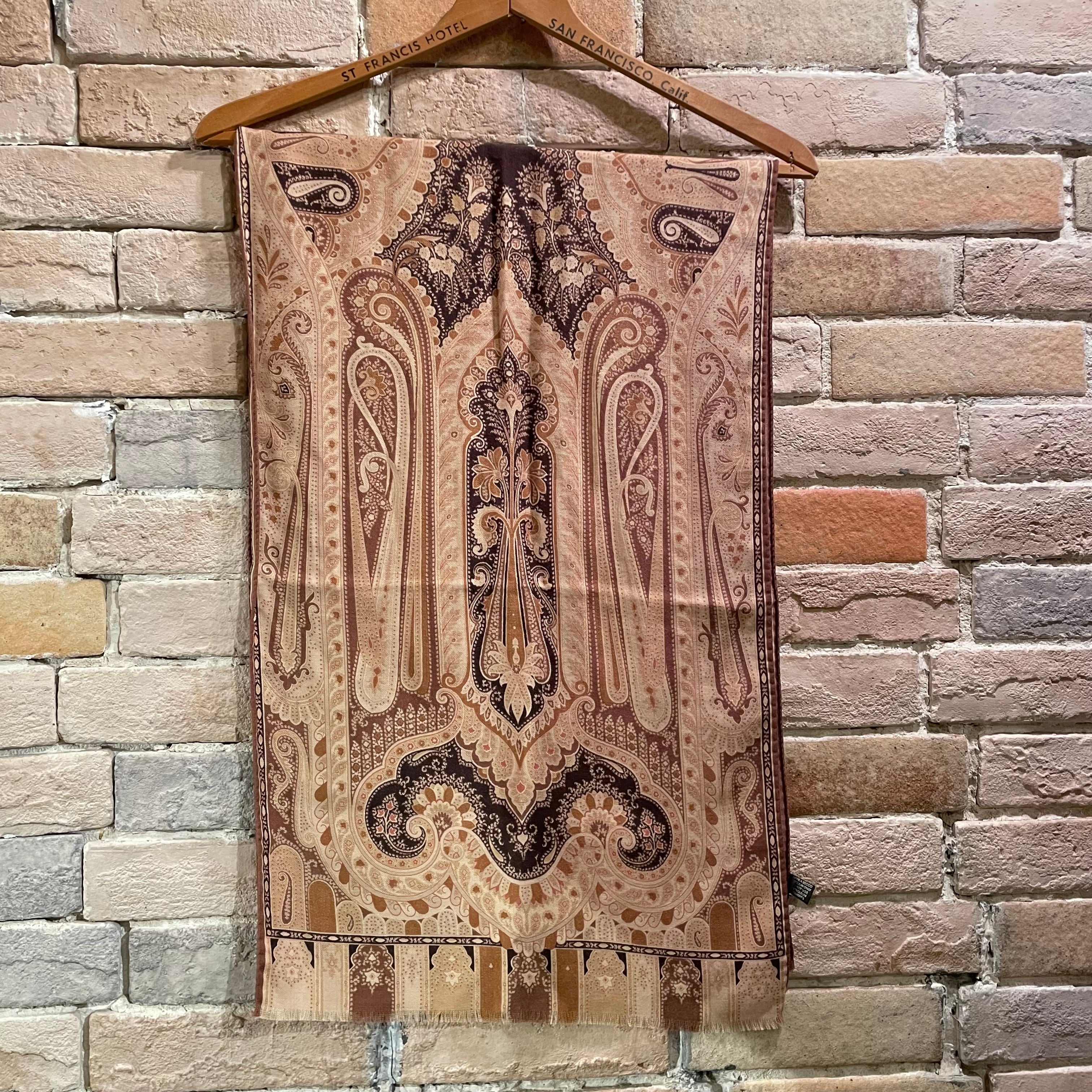 ETRO "wool&silk scarf" brown イタリア製 ウール×シルク ペイズリー柄 スカーフ エトロ ブラウン