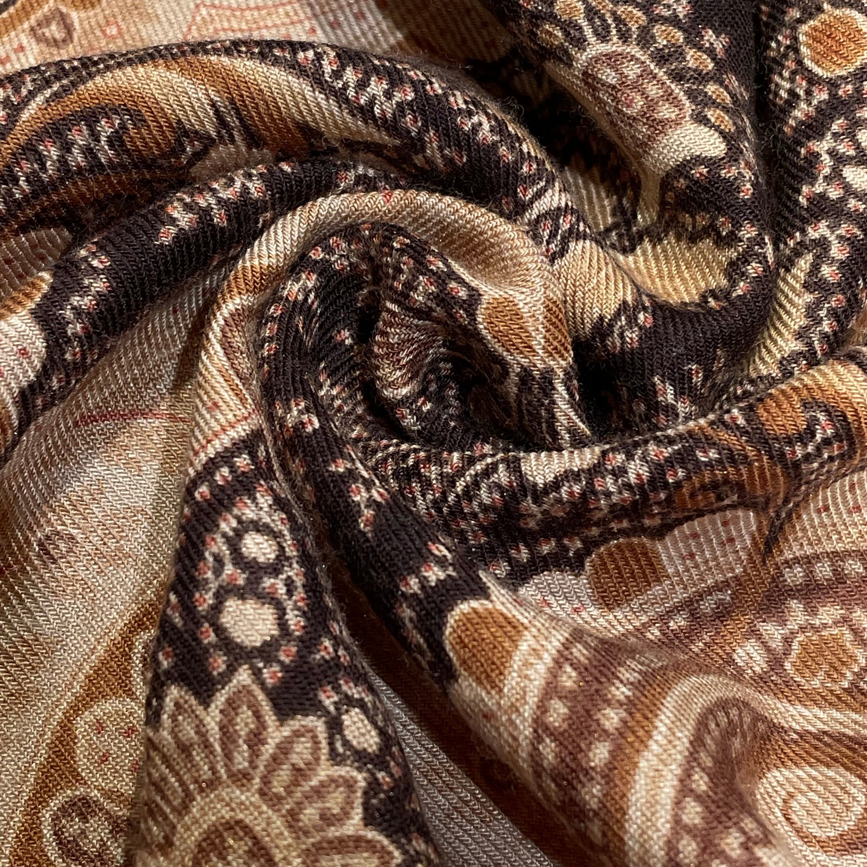 ブラウンのペイズリー柄ストール。