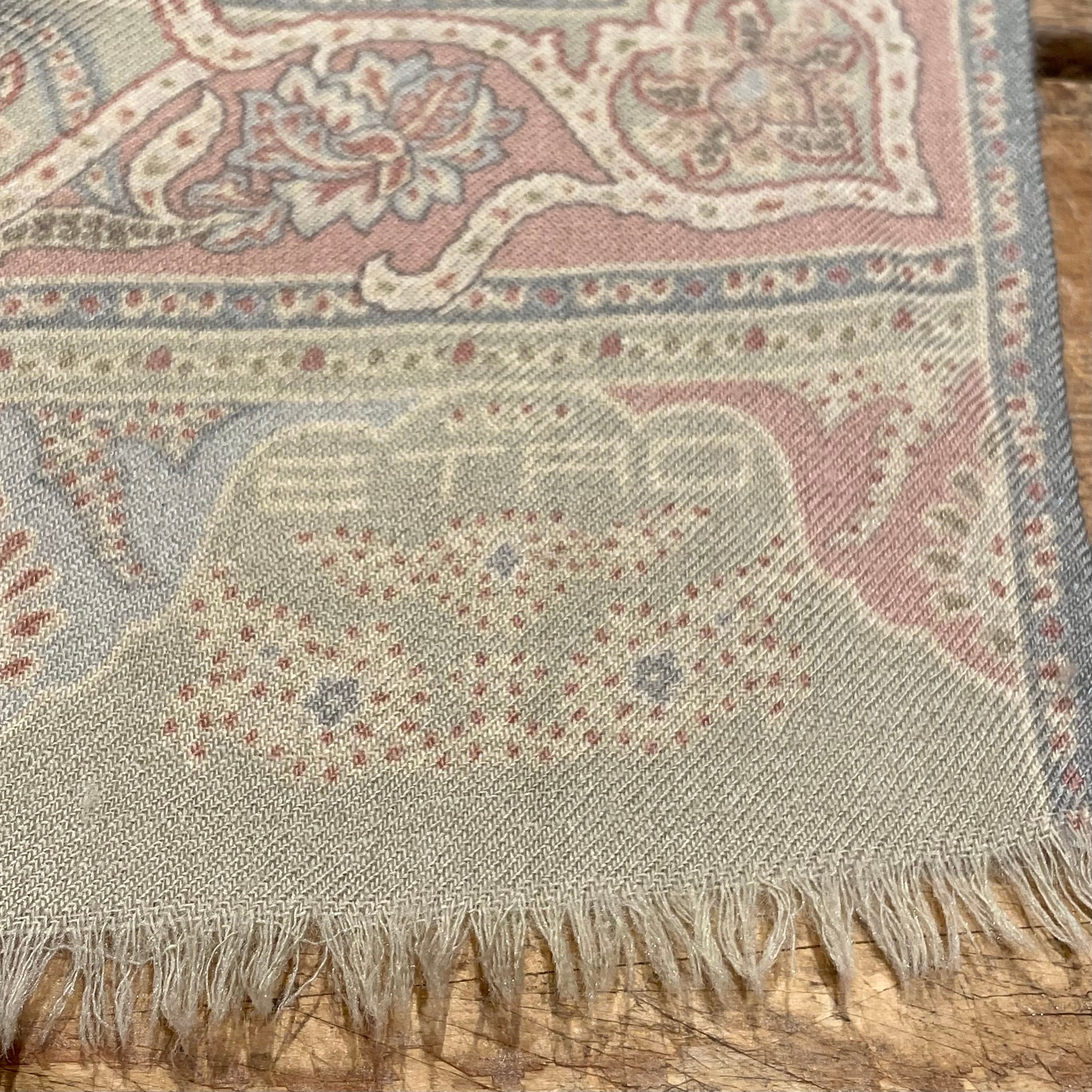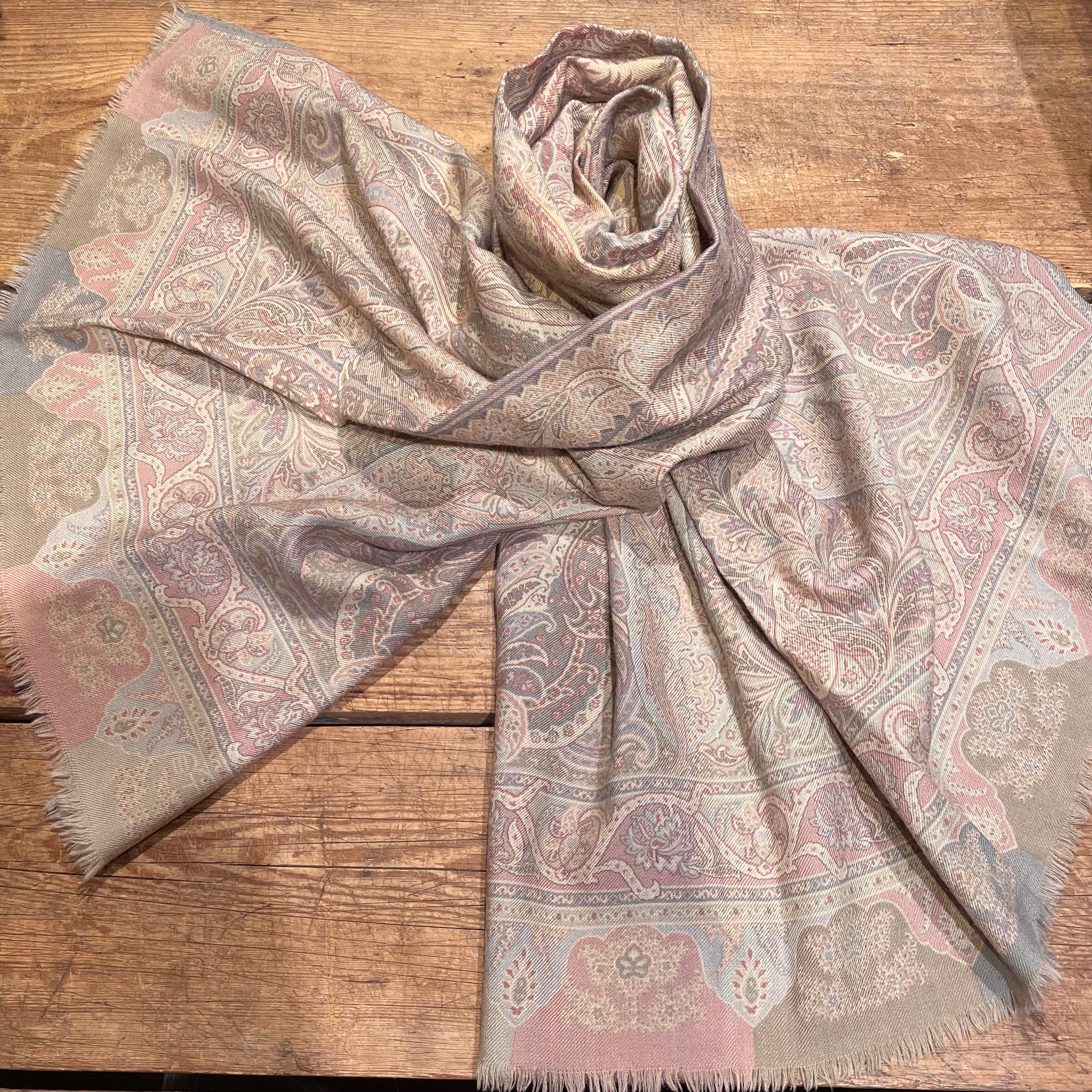 ペールカラーの色合いのペイズリー柄ストール。