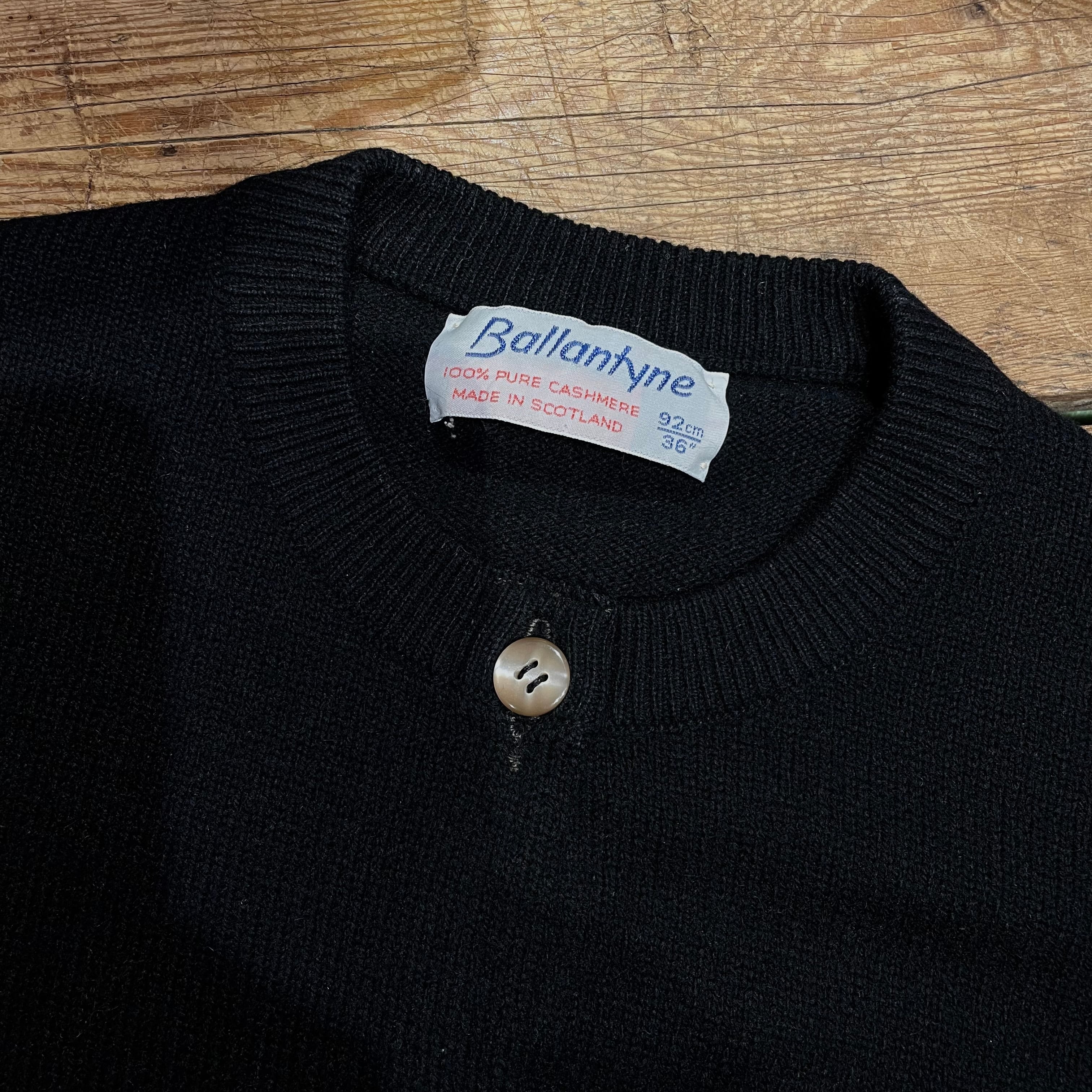 Ballantyne Ladies サイズ36 カシミヤ100% クルーネックカーディガン ブラック バランタイン スコットランド製