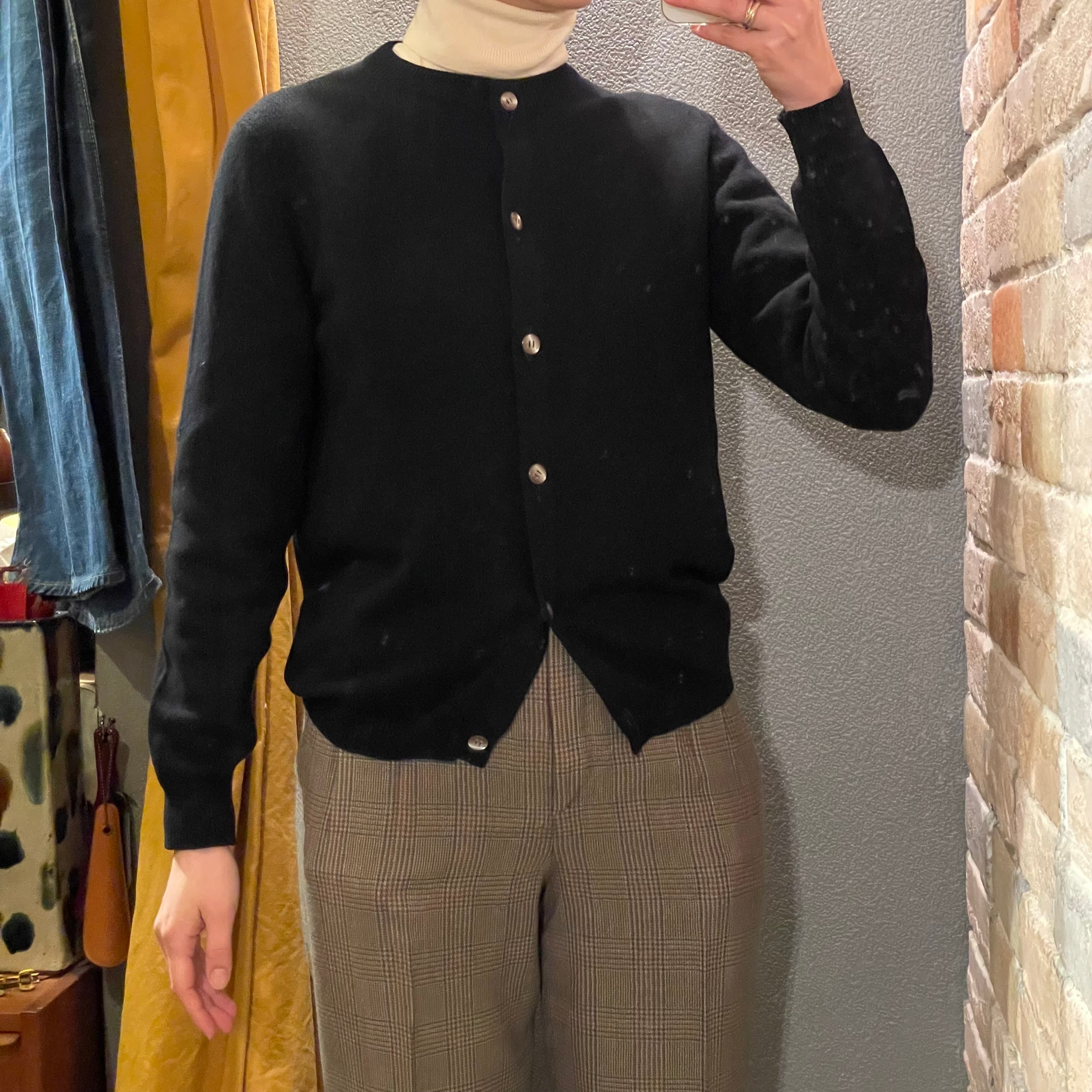 肌触りの良い滑らかなカシミヤを贅沢に使用した、スコットランド製、クルーネックカーディガン。
