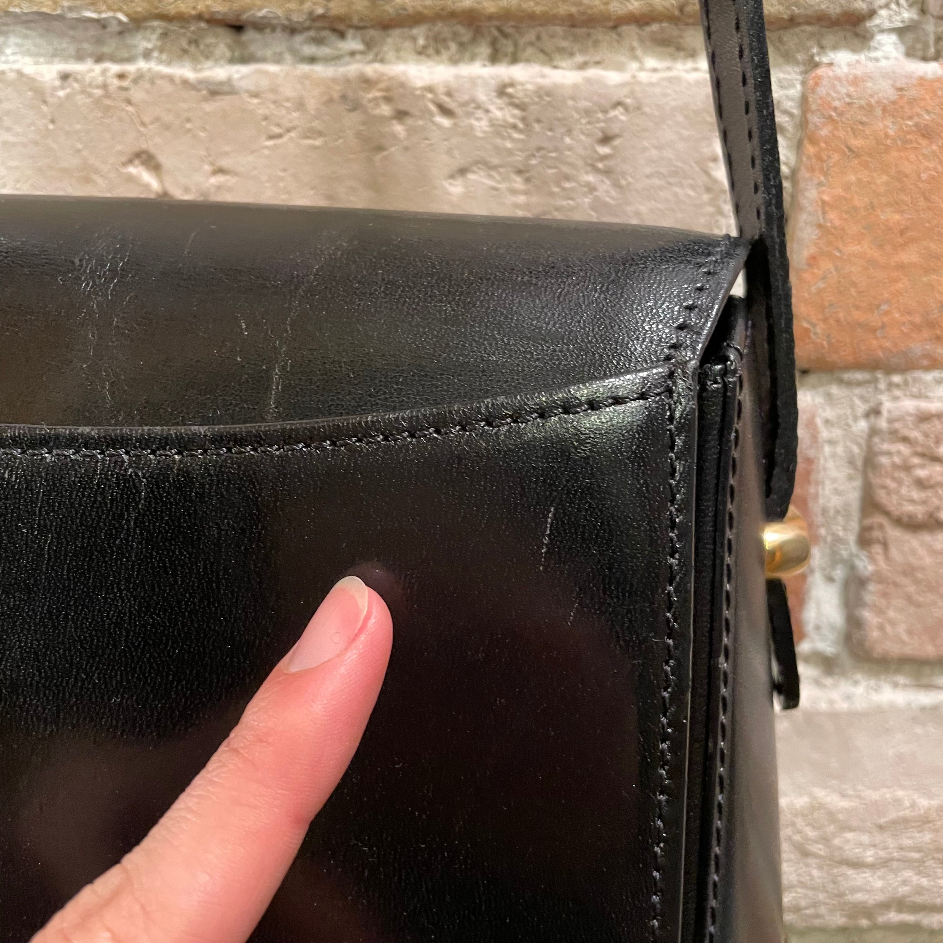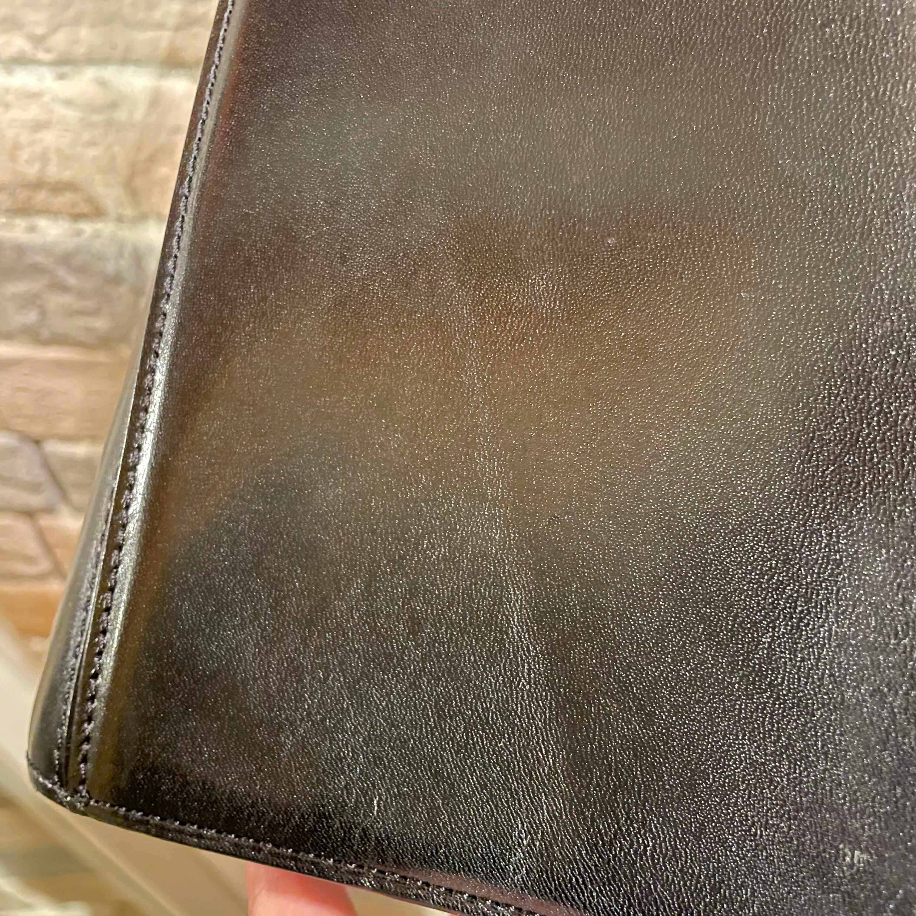 きめ細かなブラックレザにゴールドの金具がアクセントとなり上品なデザインです。