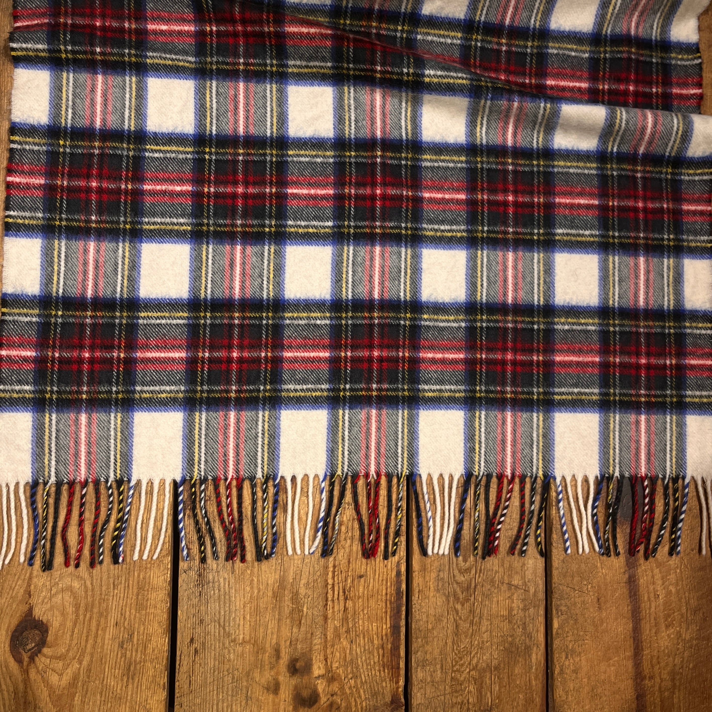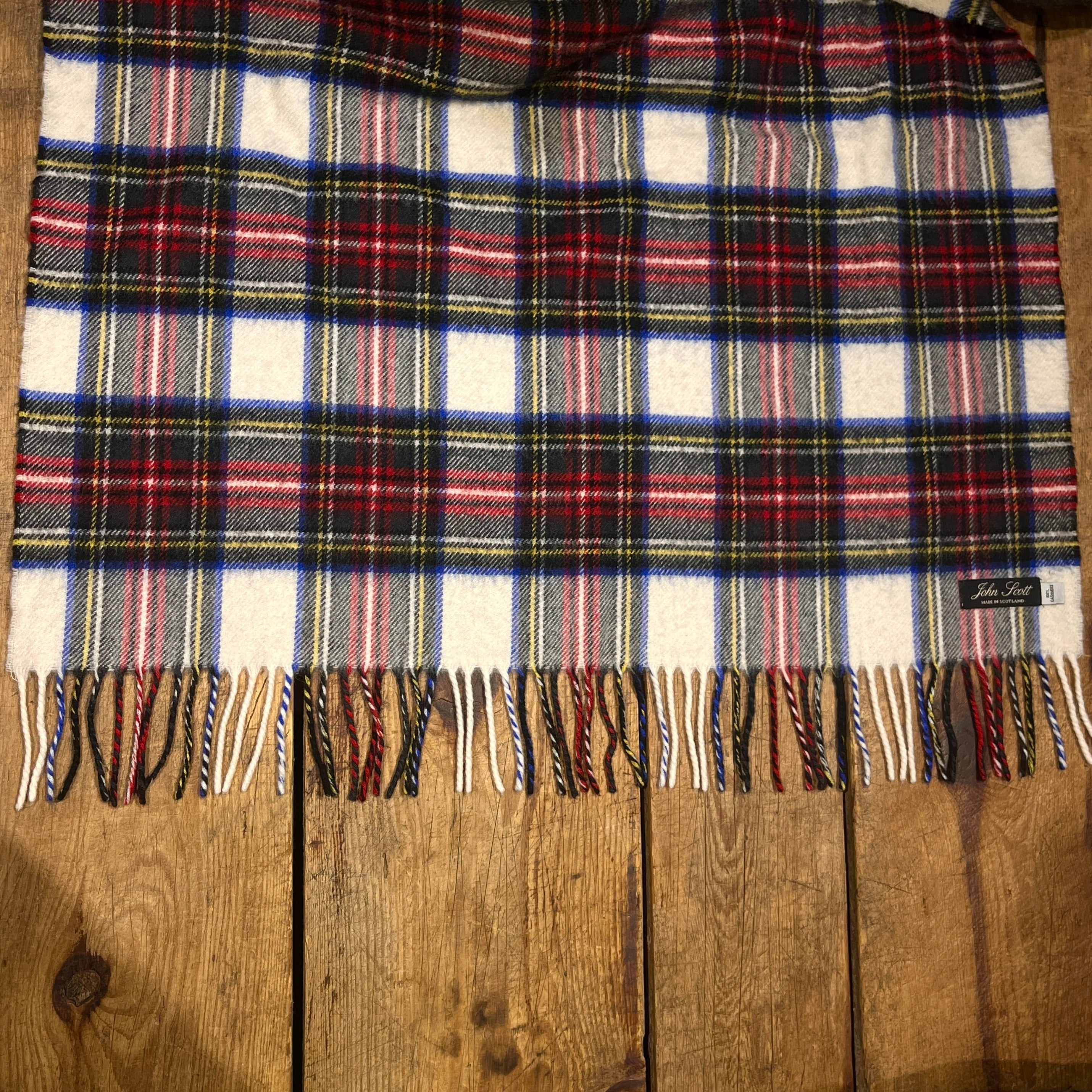 ホワイトベースのタータンチェック柄、コーディネートを華やかにする配色です。