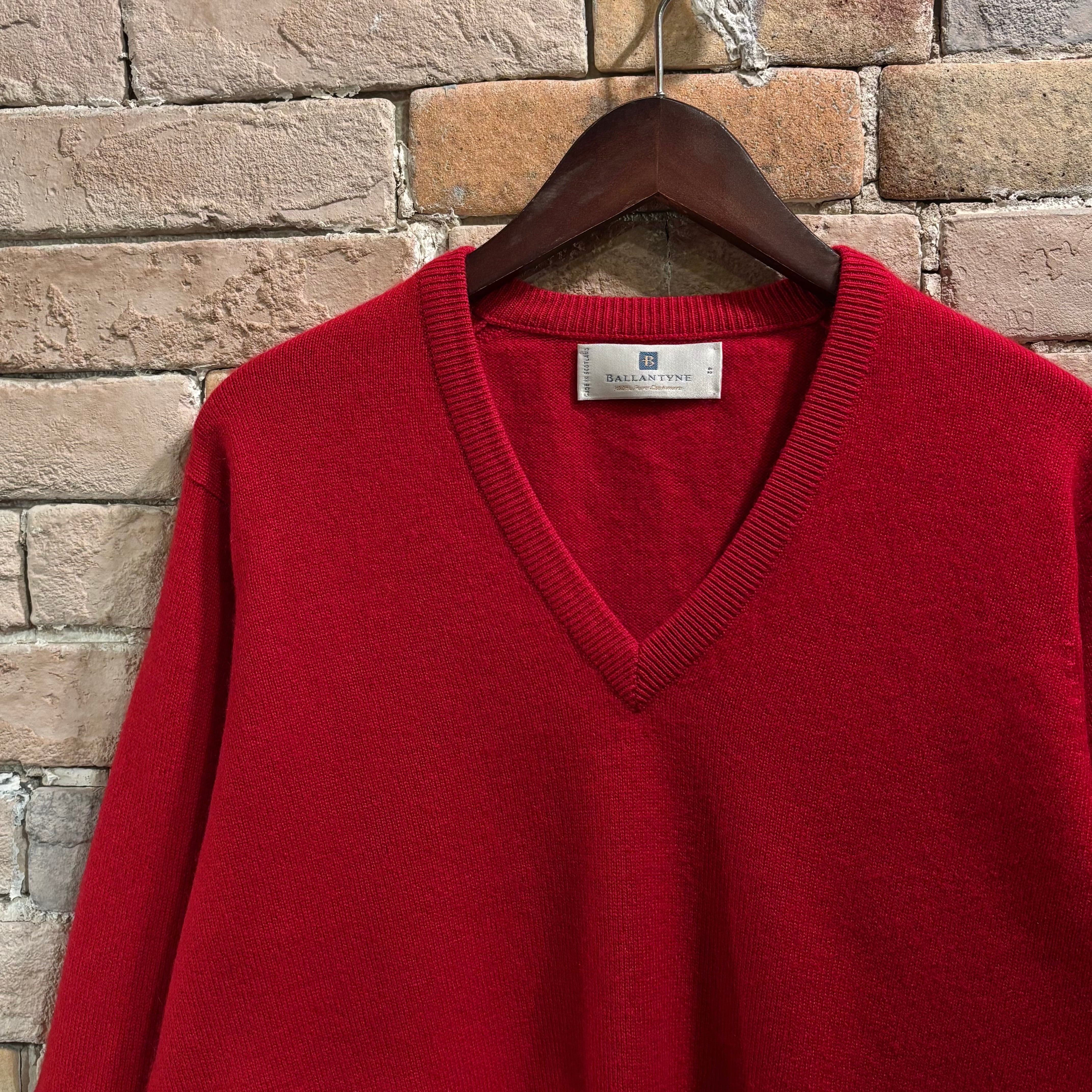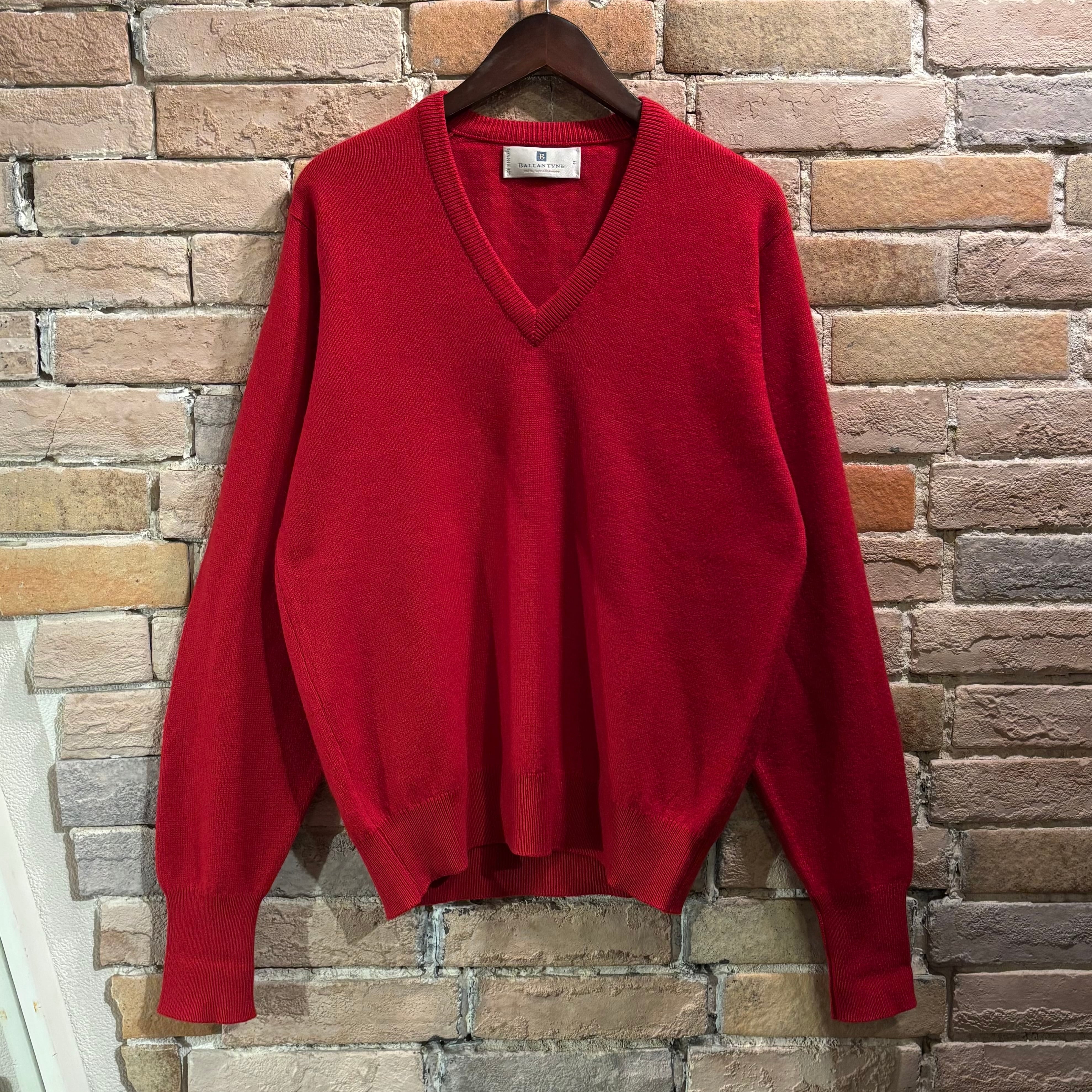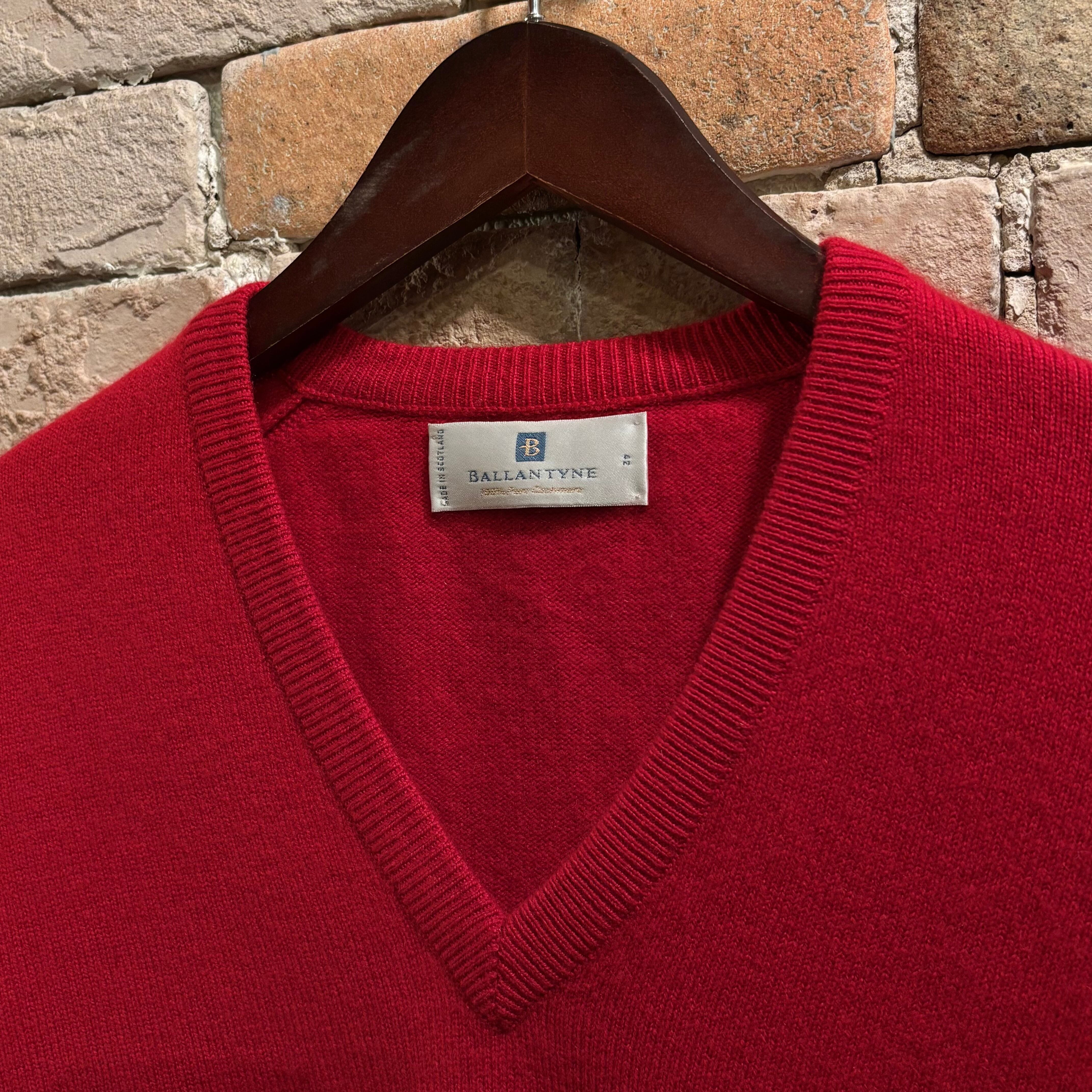 Ballantyne サイズ42 2plyカシミヤ Vネックネックニット レッド スコットランド製 バランタイン
