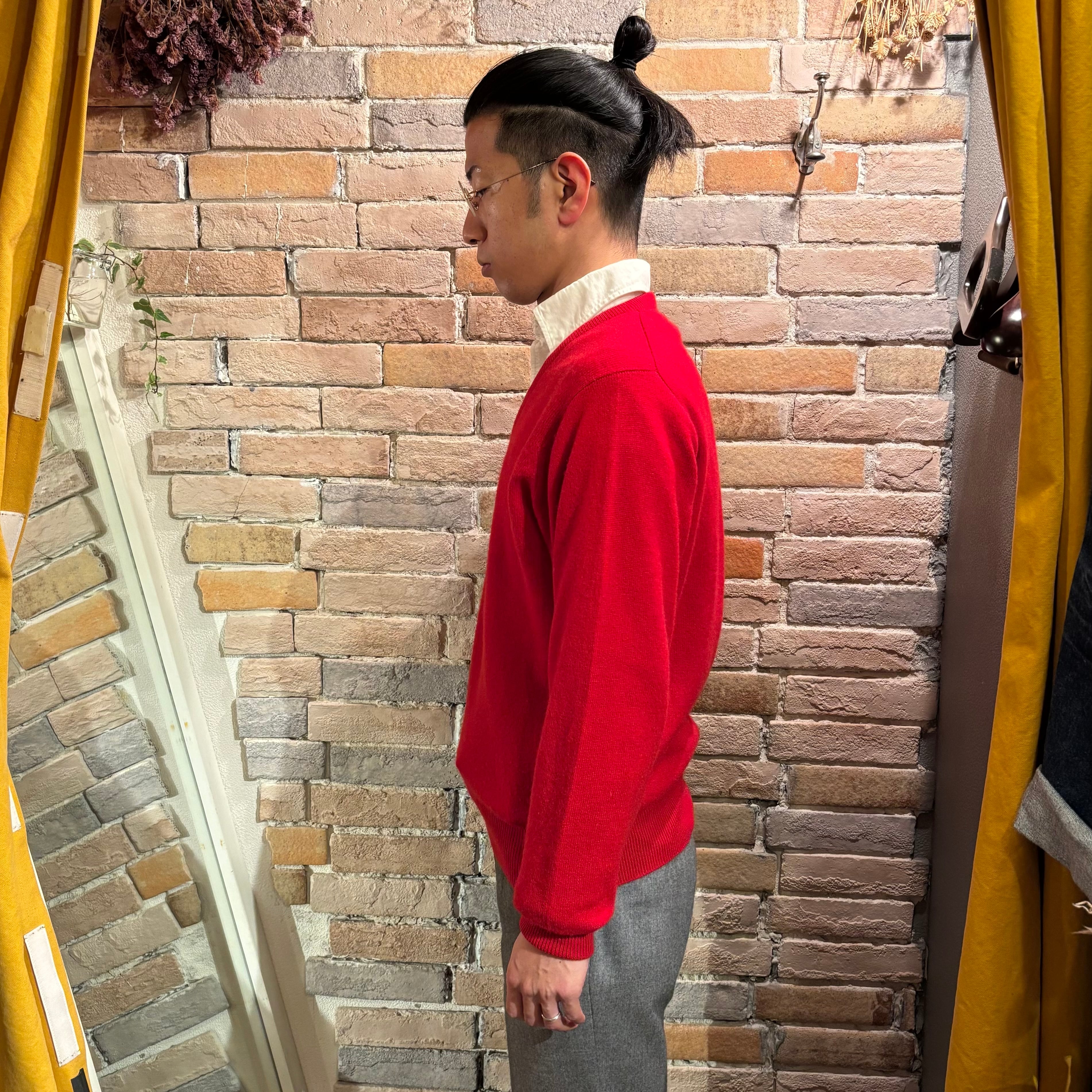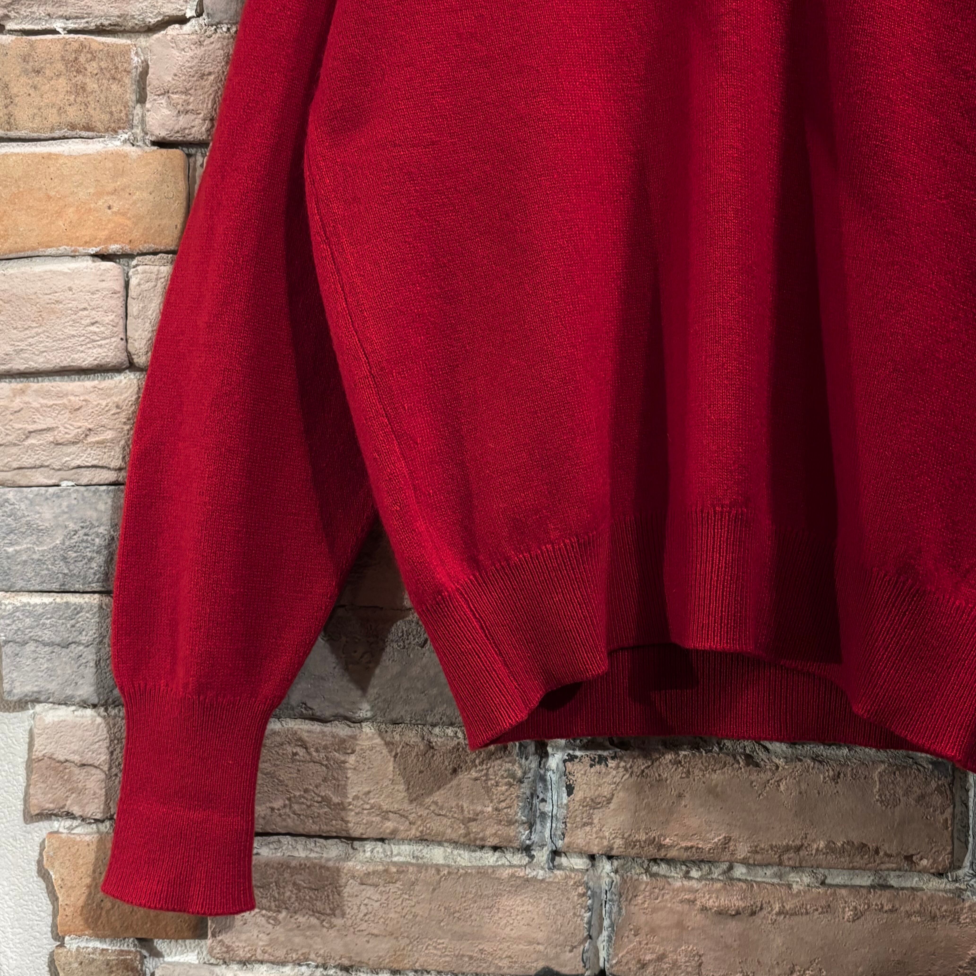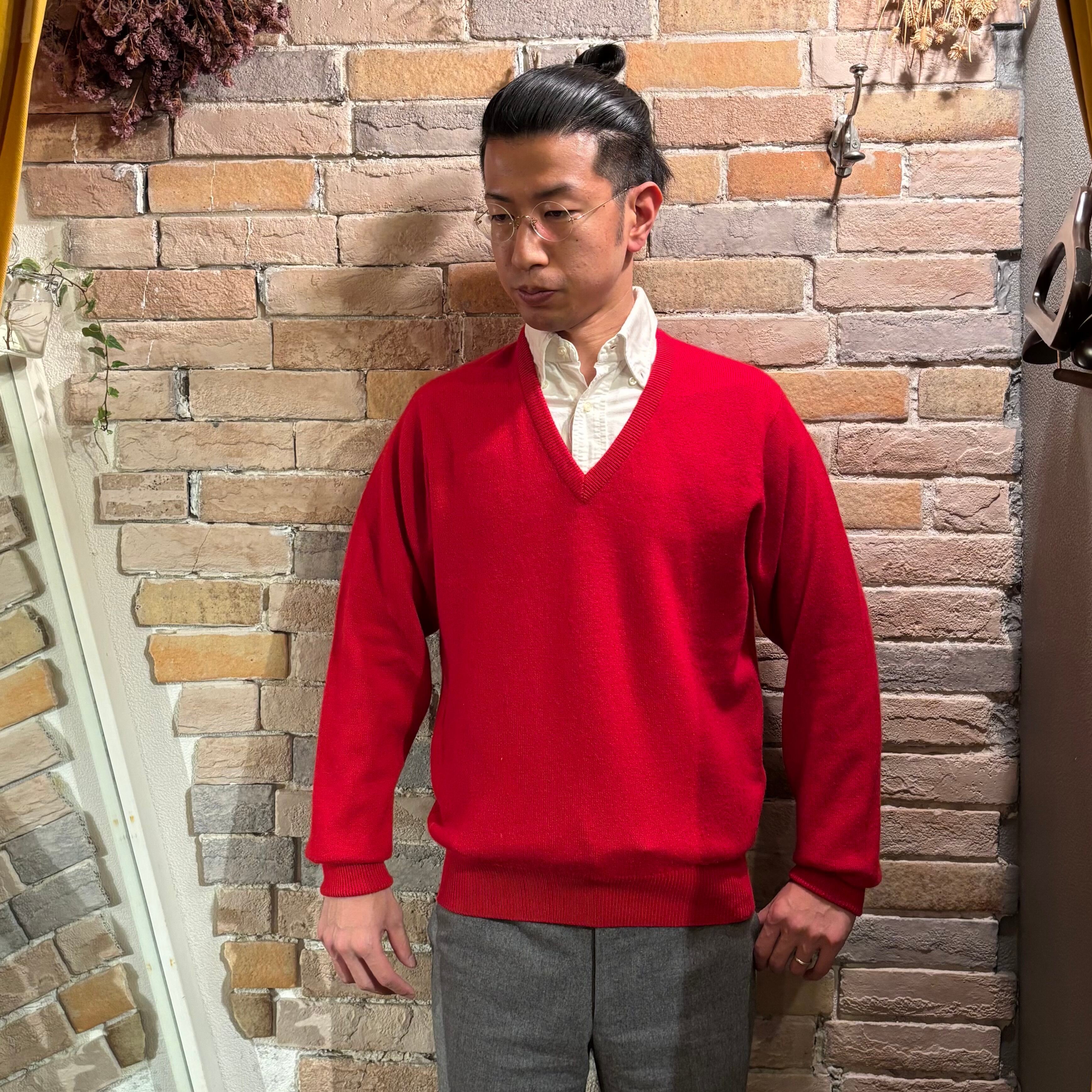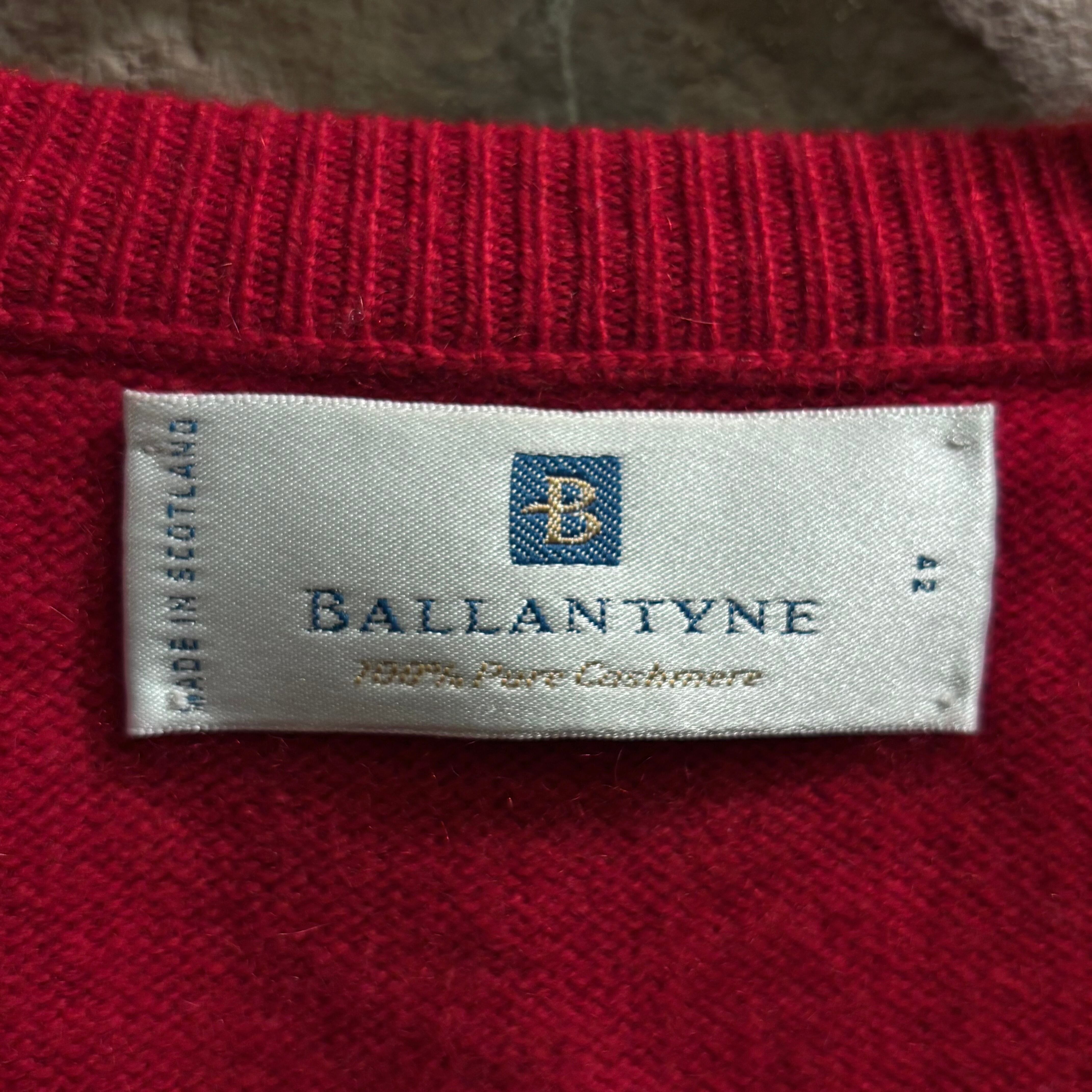 Ballantyne サイズ42 2plyカシミヤ Vネックネックニット レッド スコットランド製 バランタイン