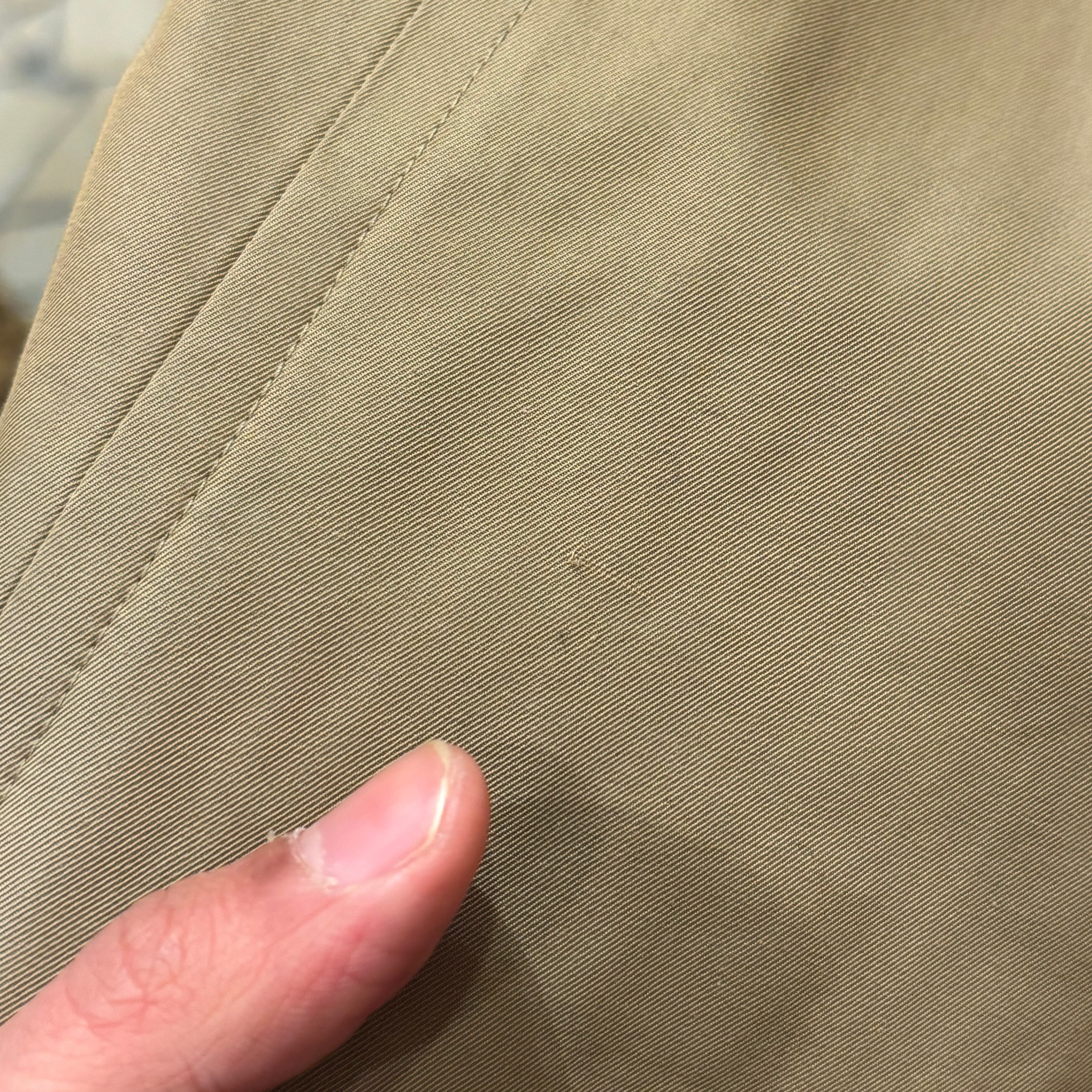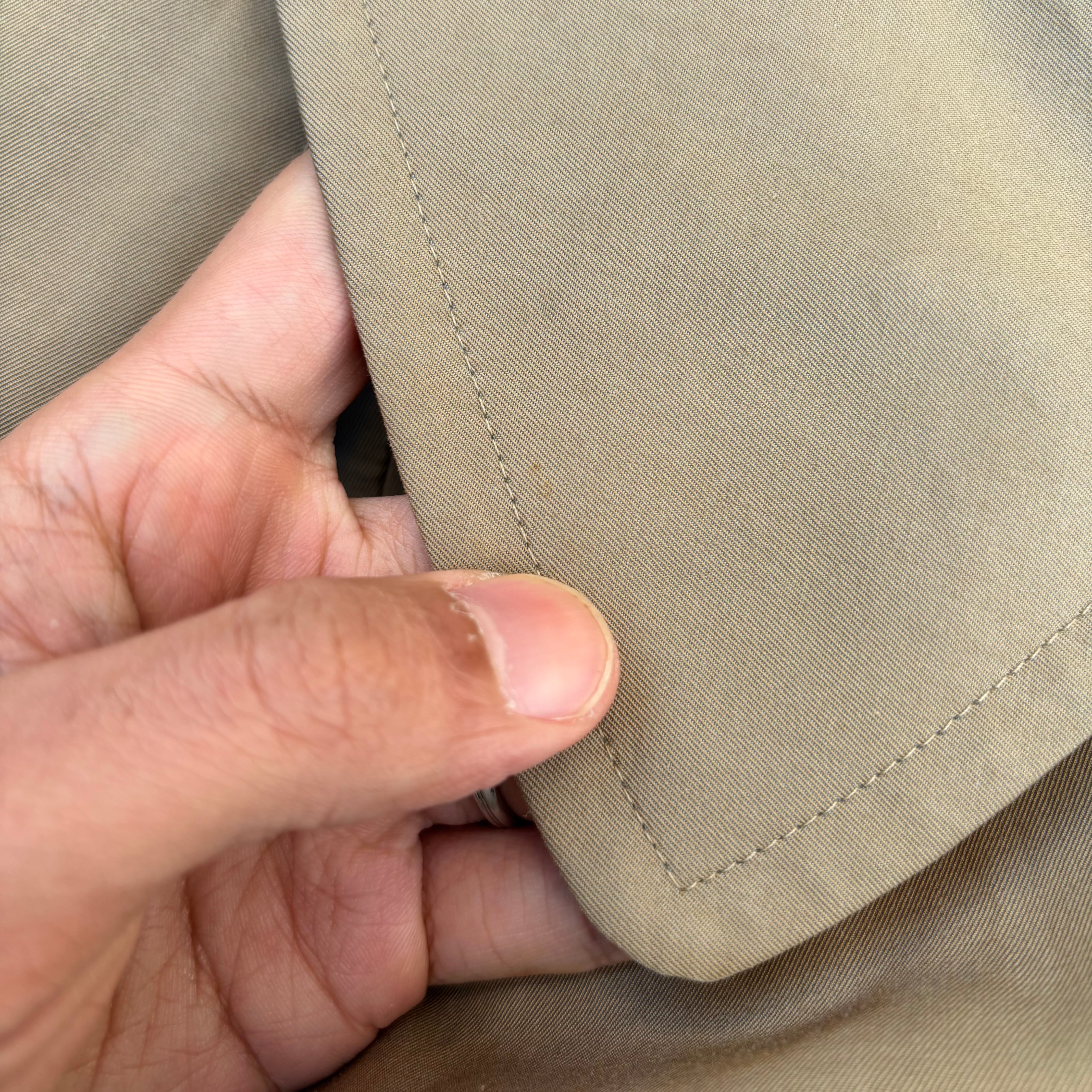 状態: USED品(中古品) 襟裏バックルの擦れや表地後裾の細かな生地のツレ、目立たない点汚れが見られます。生地にハリが残り、全体的にまだまだ綺麗な状態。