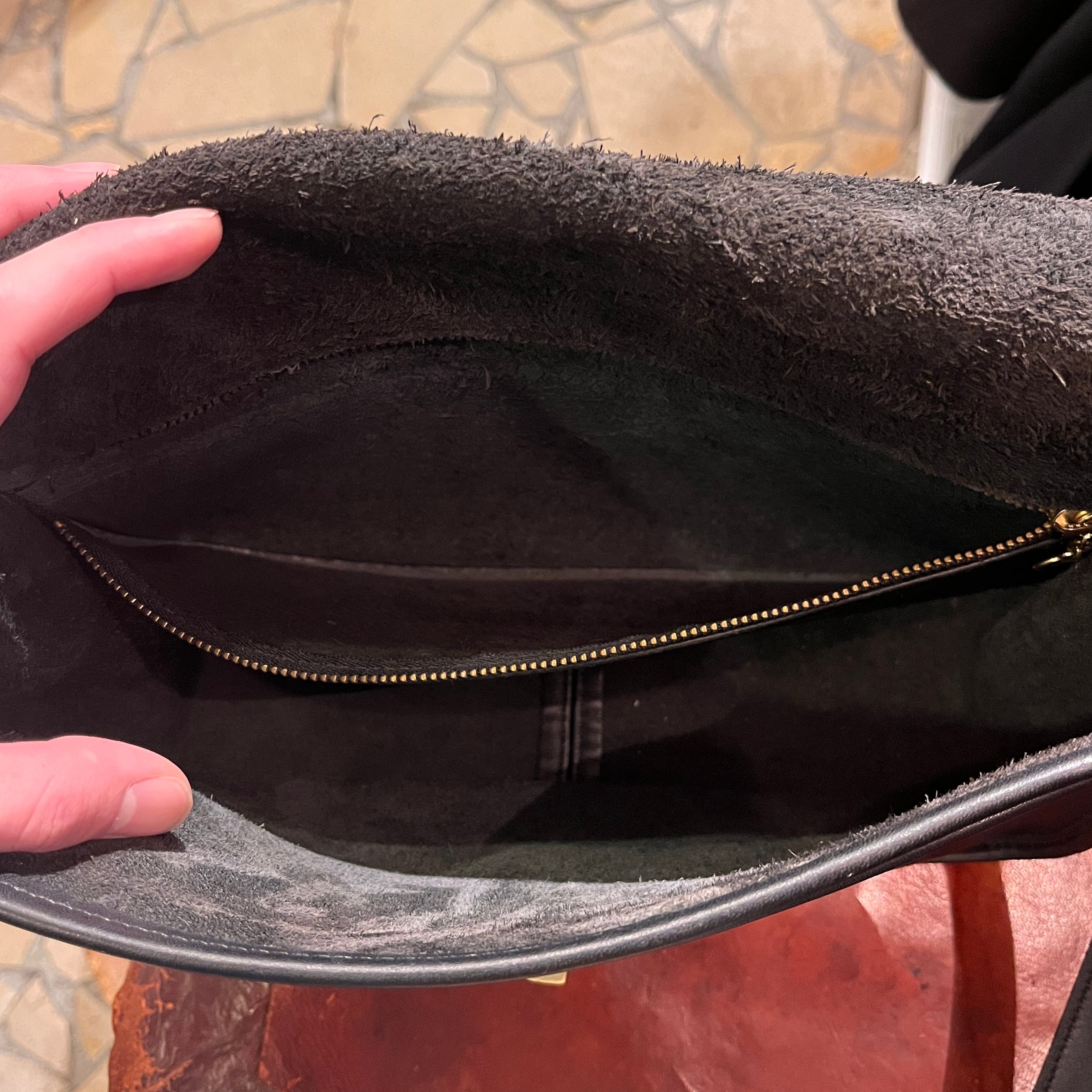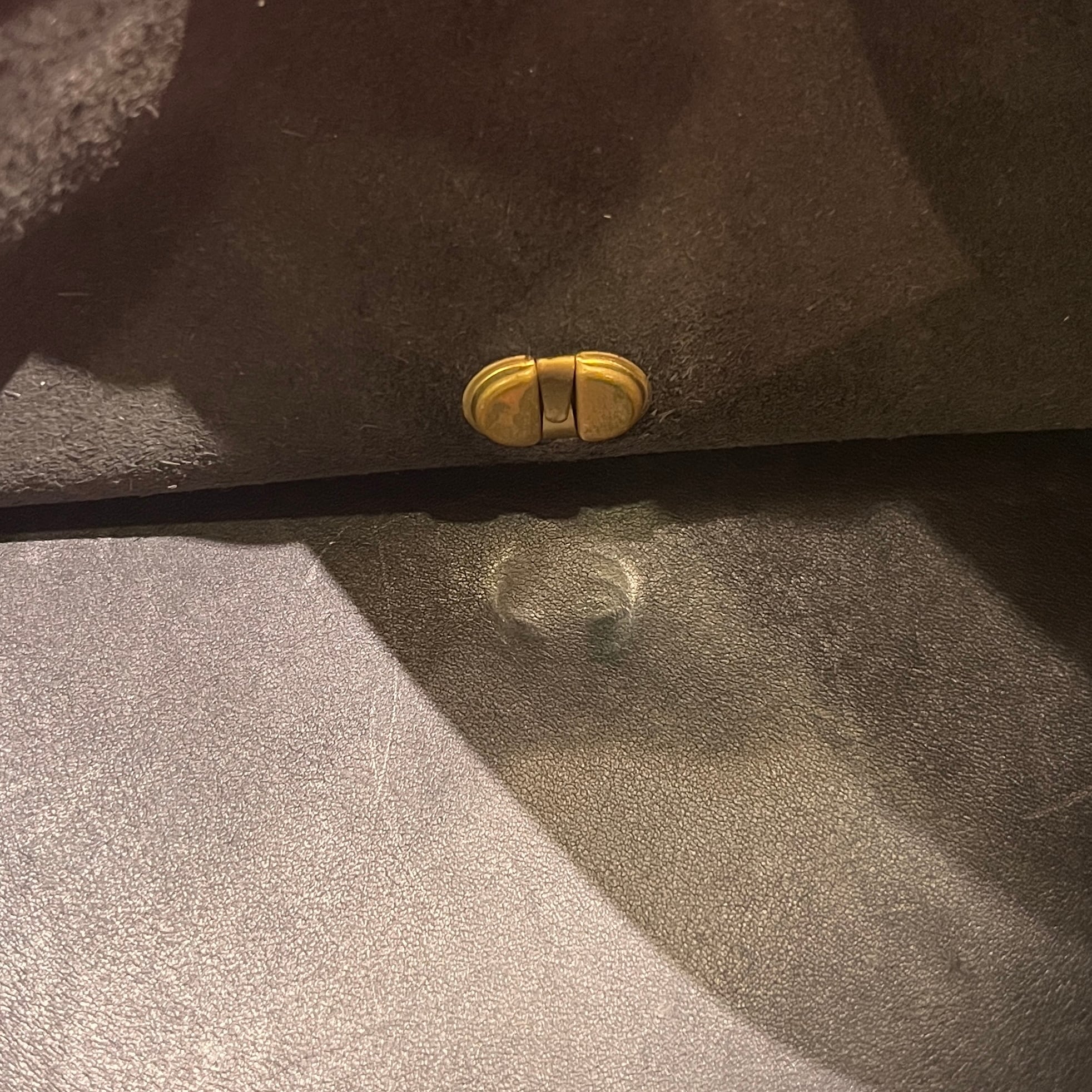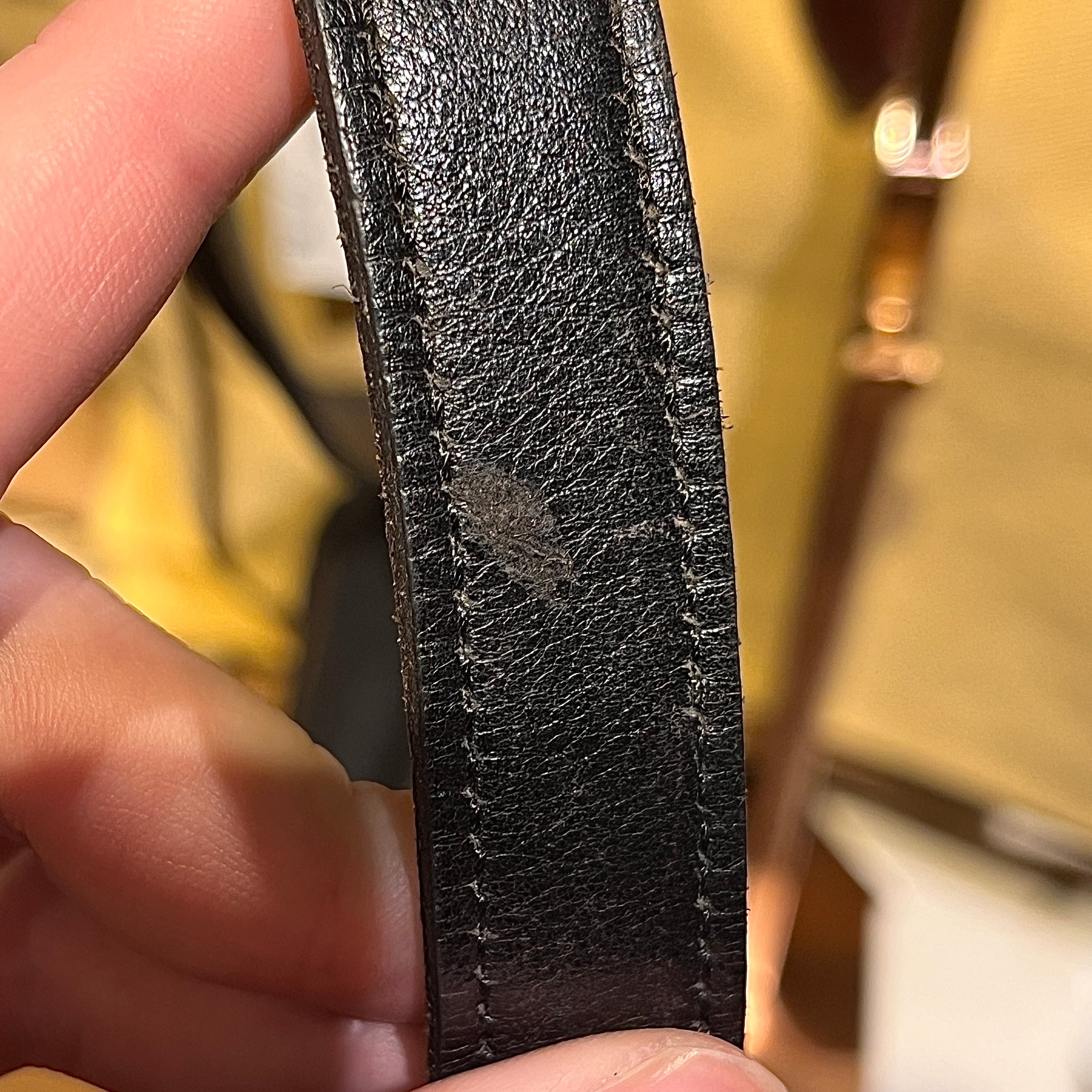 状態: USED品(中古品) ショルダー部分のレザーの剥がれ、表側の若干のスレや上蓋裏のうっすらとした焼けなどの多少の使用感が見られます。