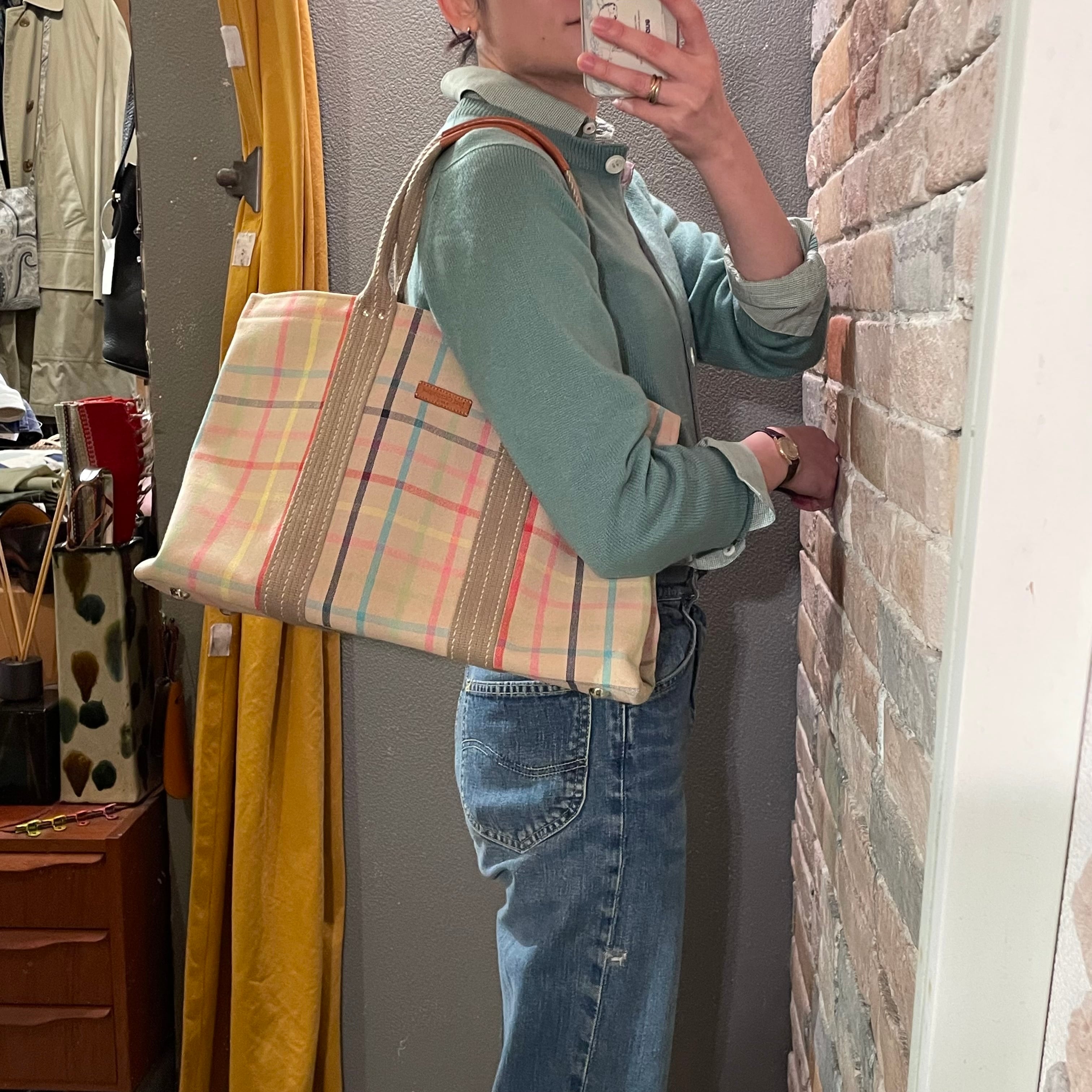 パステルマルチカラーチェック柄のトートバッグです。
