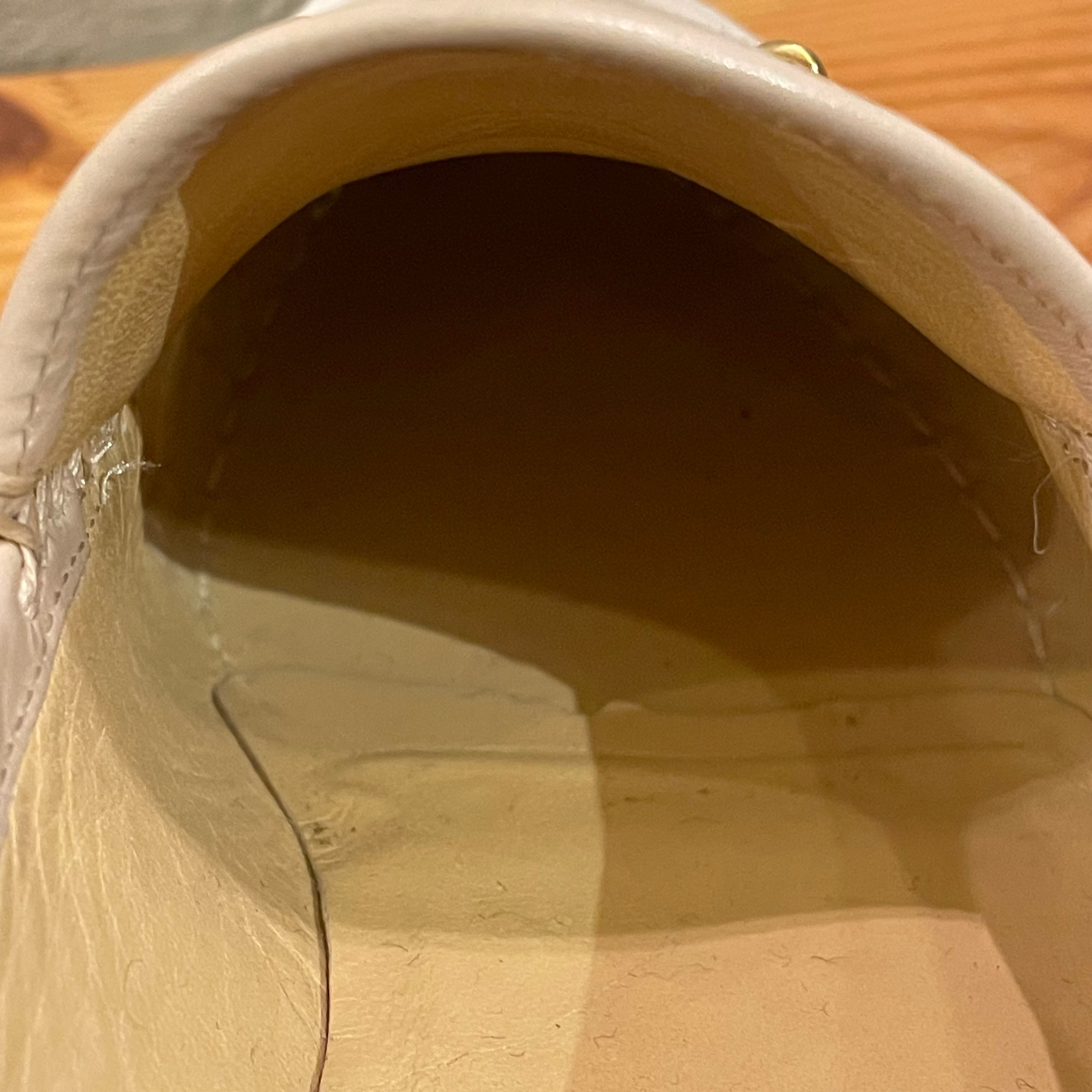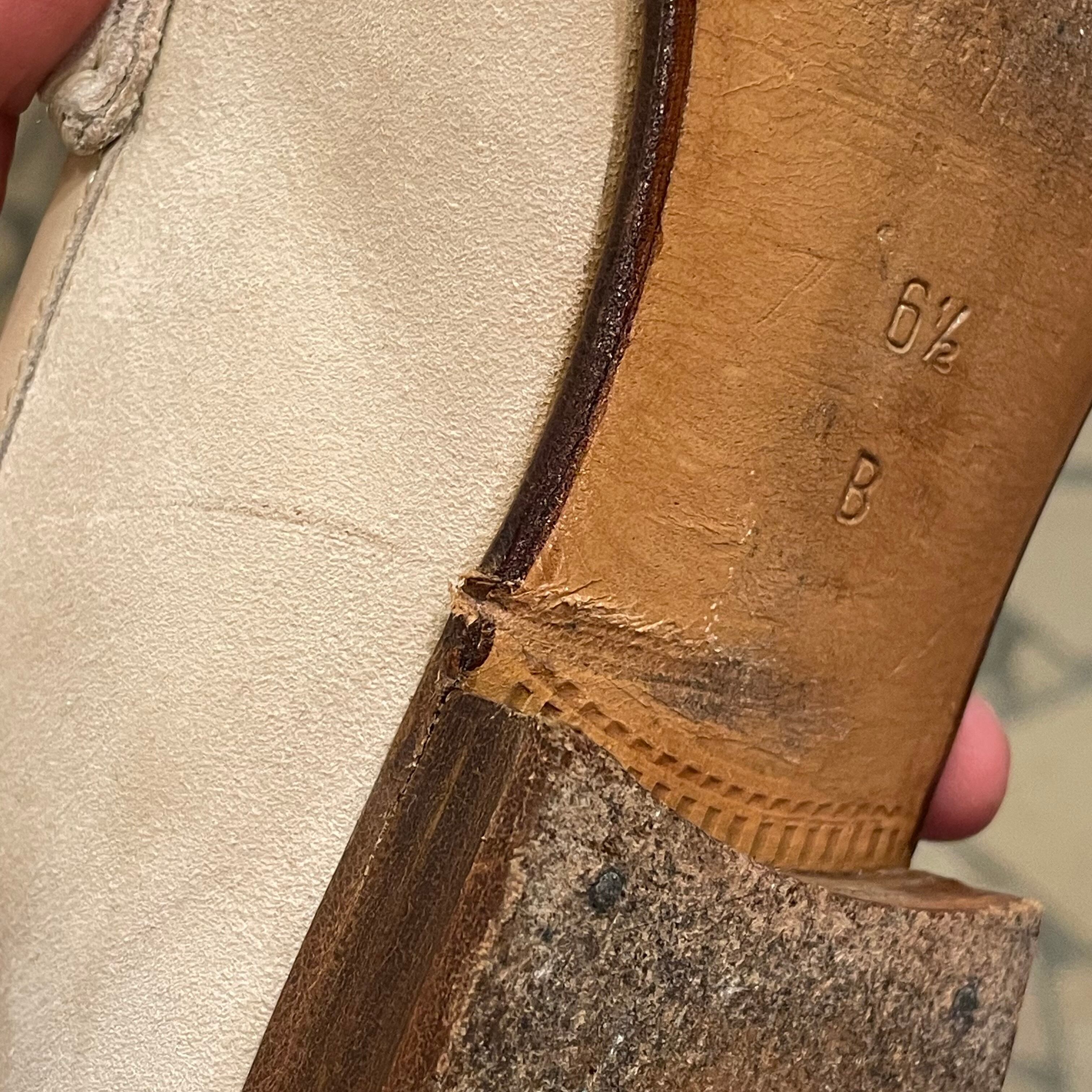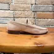 コーディネートが軽やかになるアイボリースエードにゴールドのビット、ソールはレザーソールでスッキリとしたシルエットです。