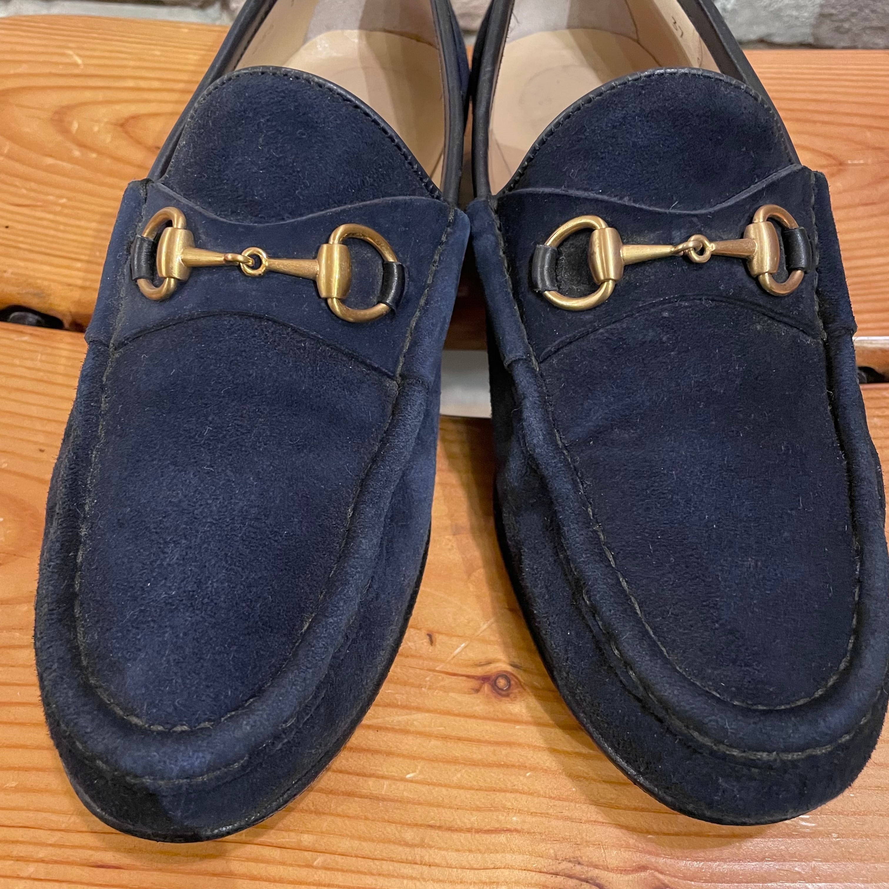 Gucci "ladies bit loafer" navy suede サイズ37C イタリア製 スエード ビットローファー グッチ