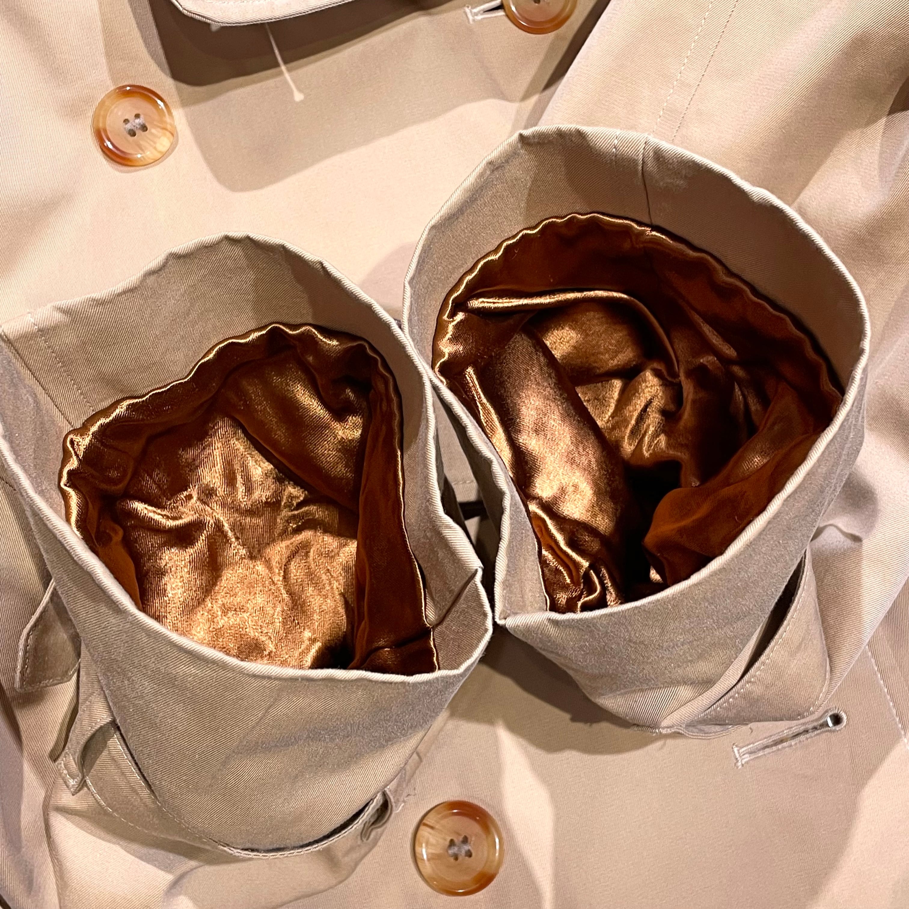 付け外しが可能なウールライナー付きのハニーベージュカラートレンチコート。