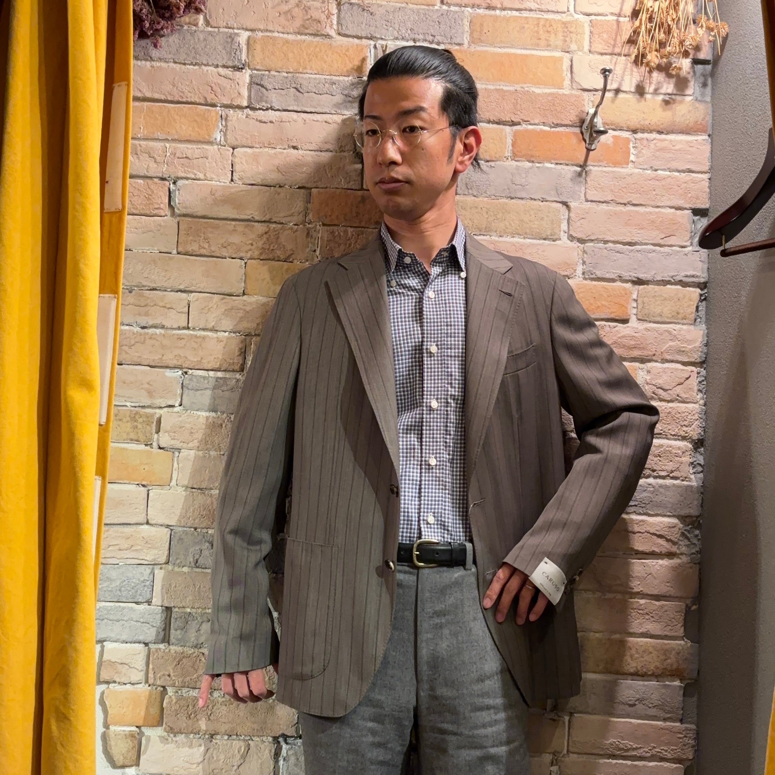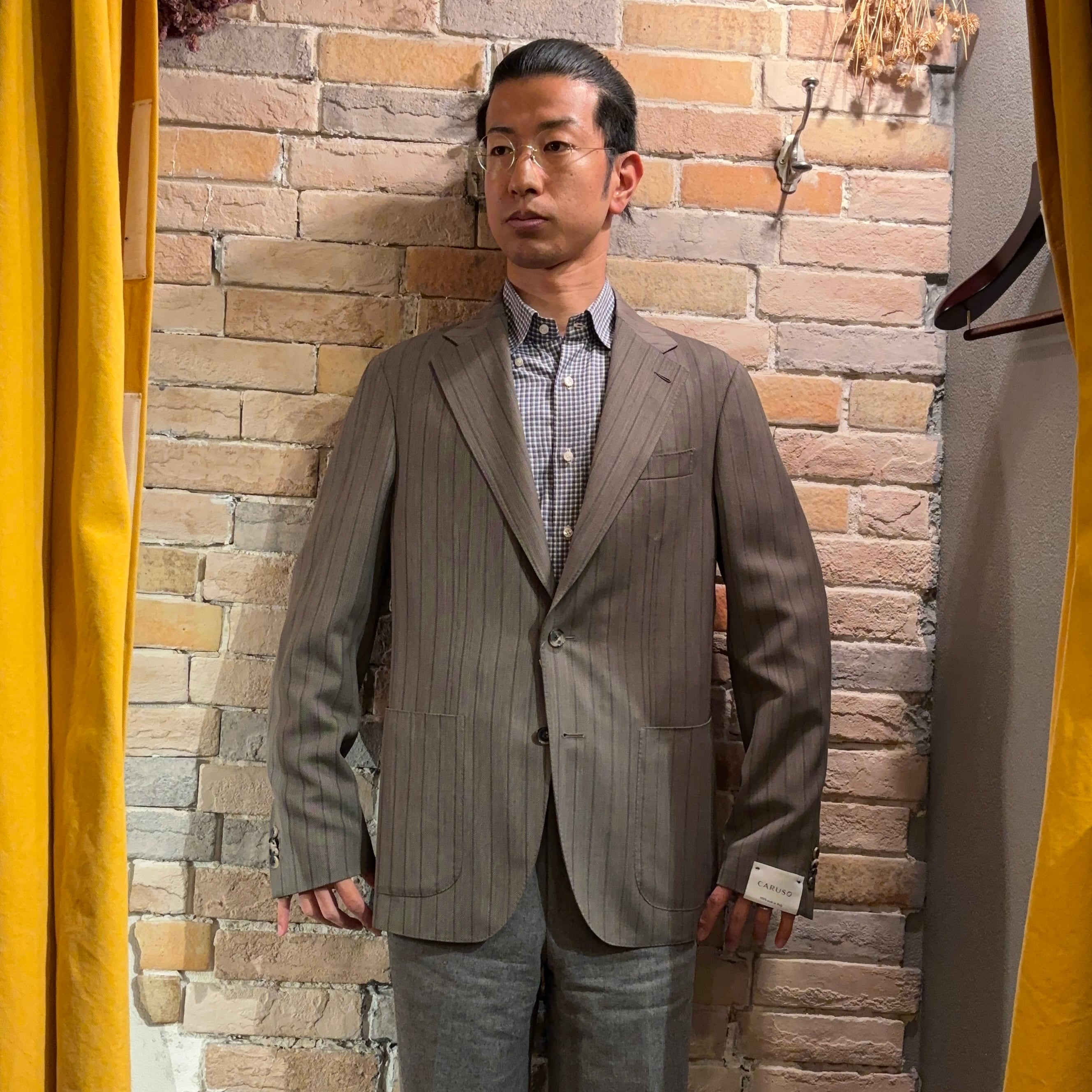 Caruso 未使用品 サイズ50「butterfly」グレーストライプ ウールジャケット イタリア製 カルーゾ