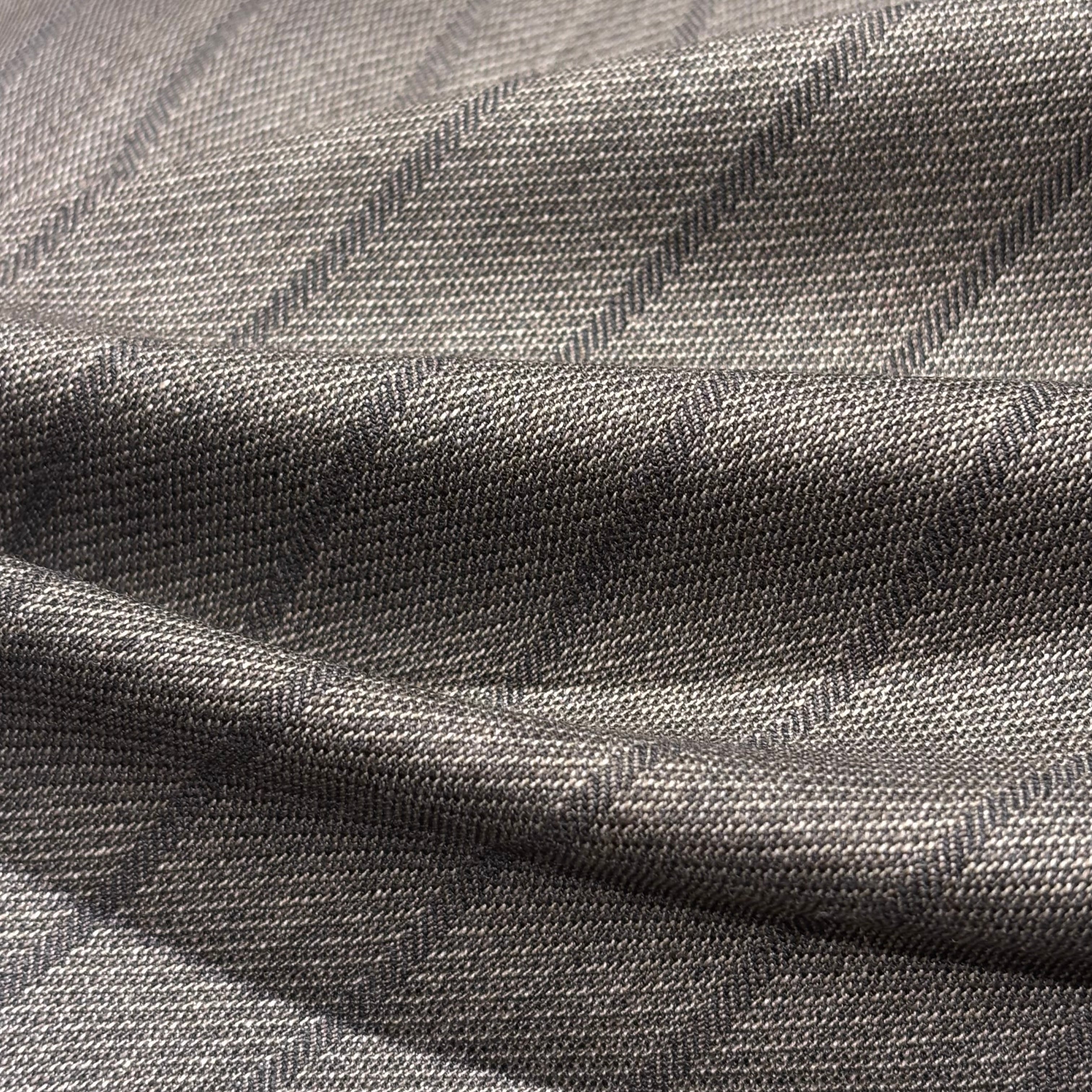 濃淡のあるグレーのストライプ柄に春夏向きのライトなソフトな生地感のアンコン仕立て。