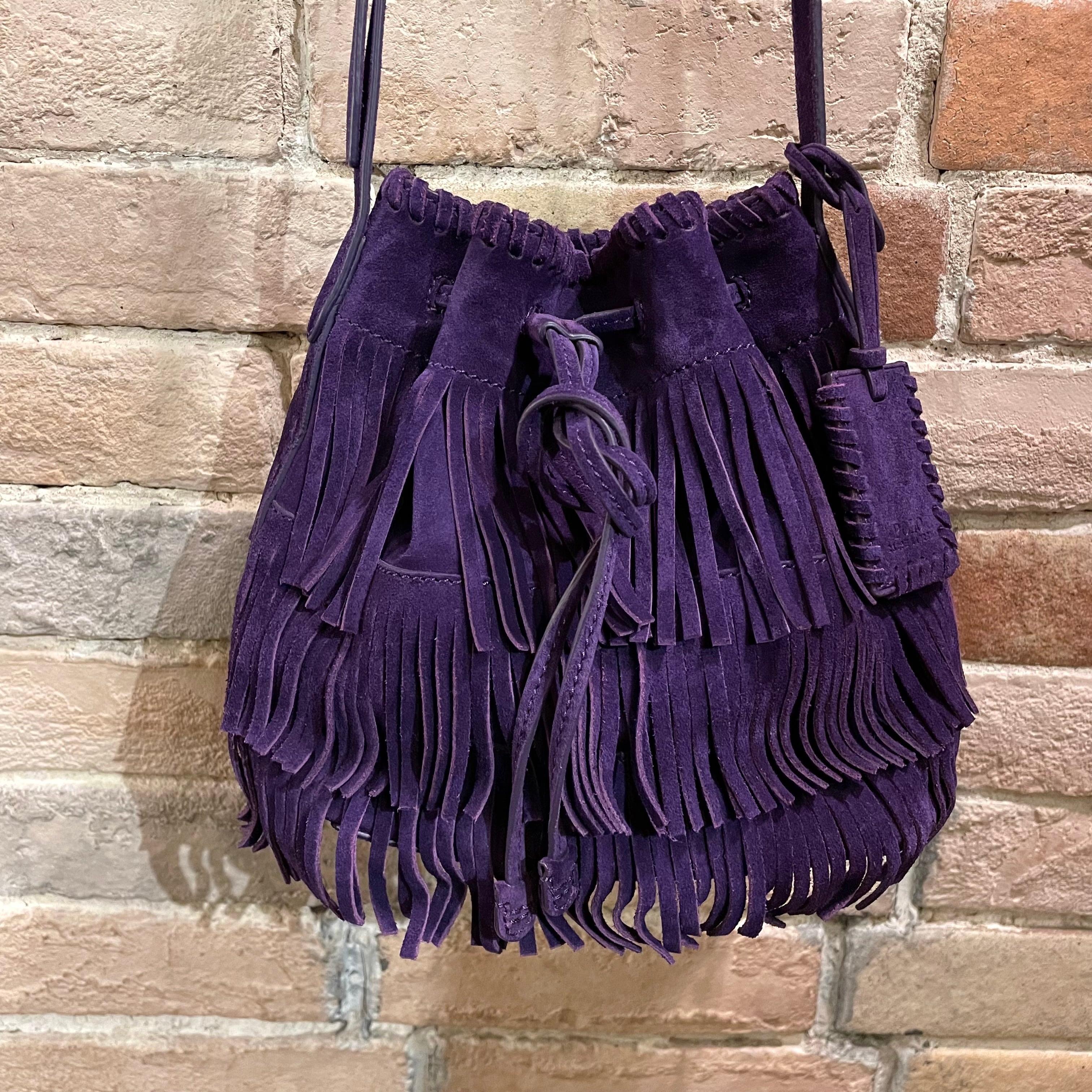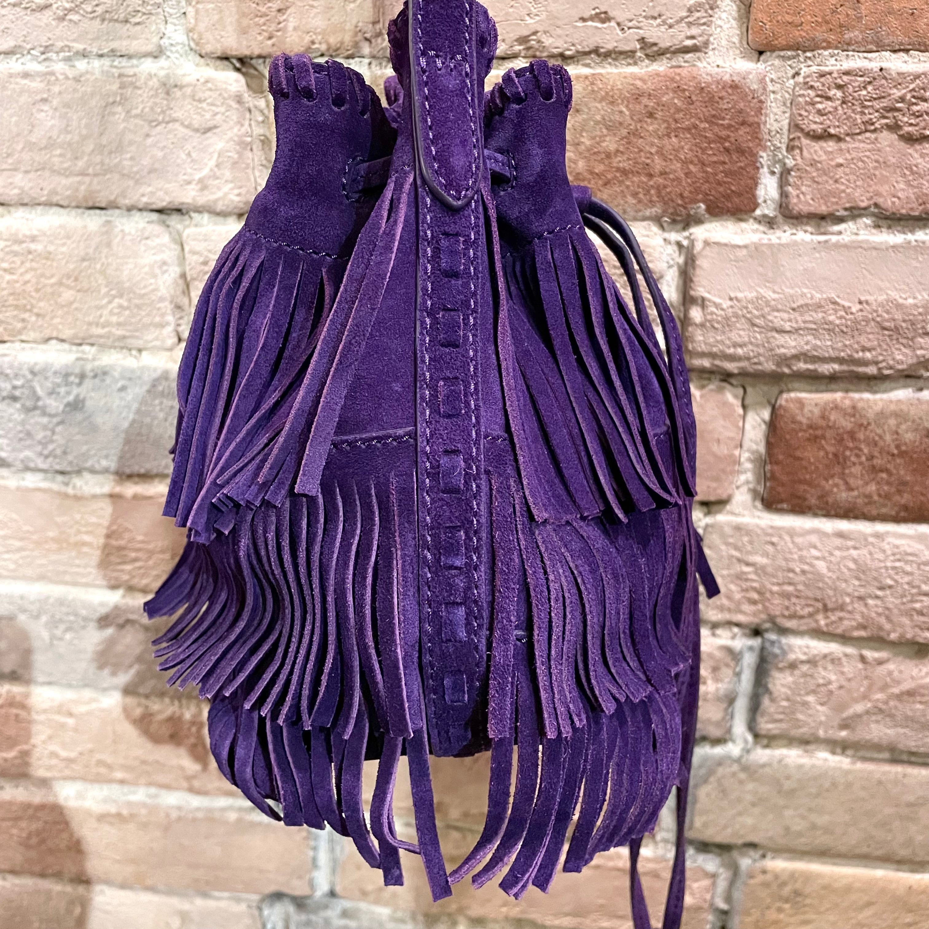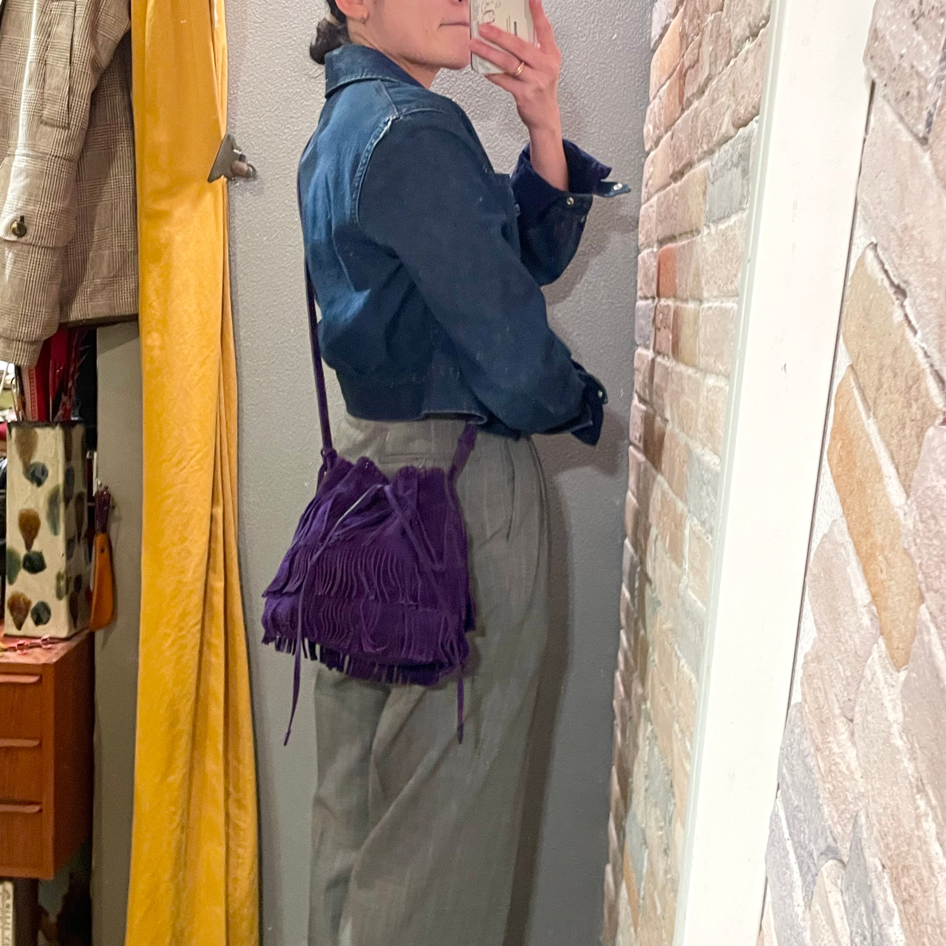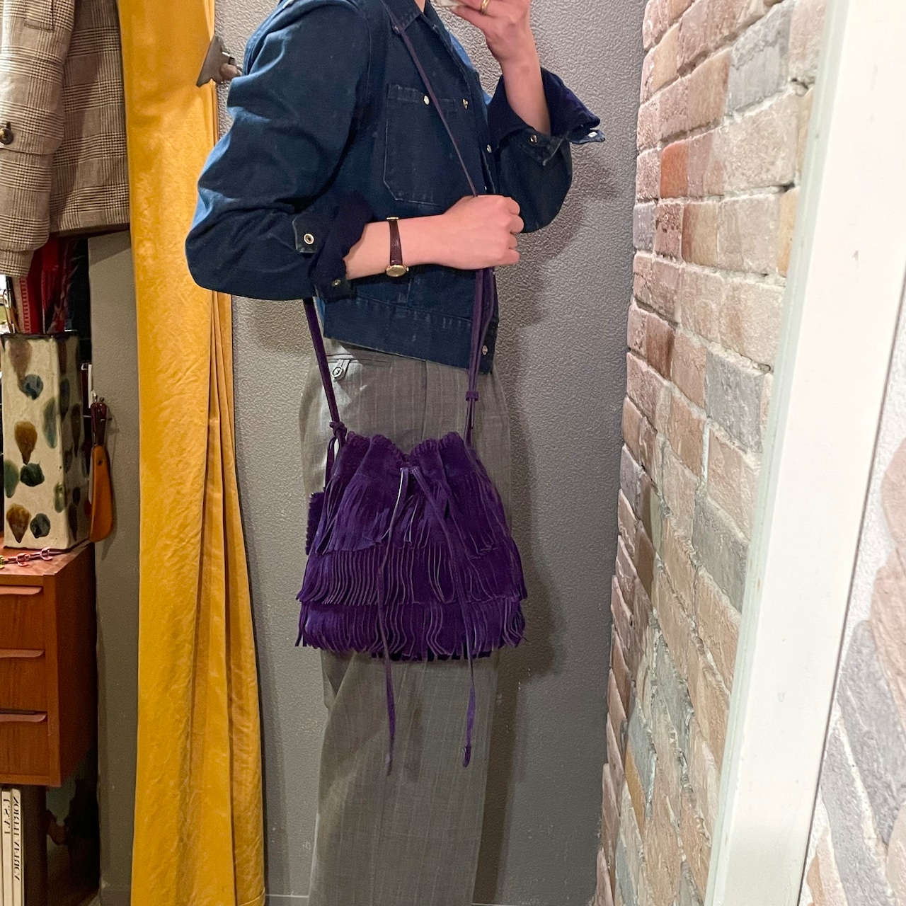 ラルフローレンの鮮やかなパープルのフリンジ巾着バッグです。