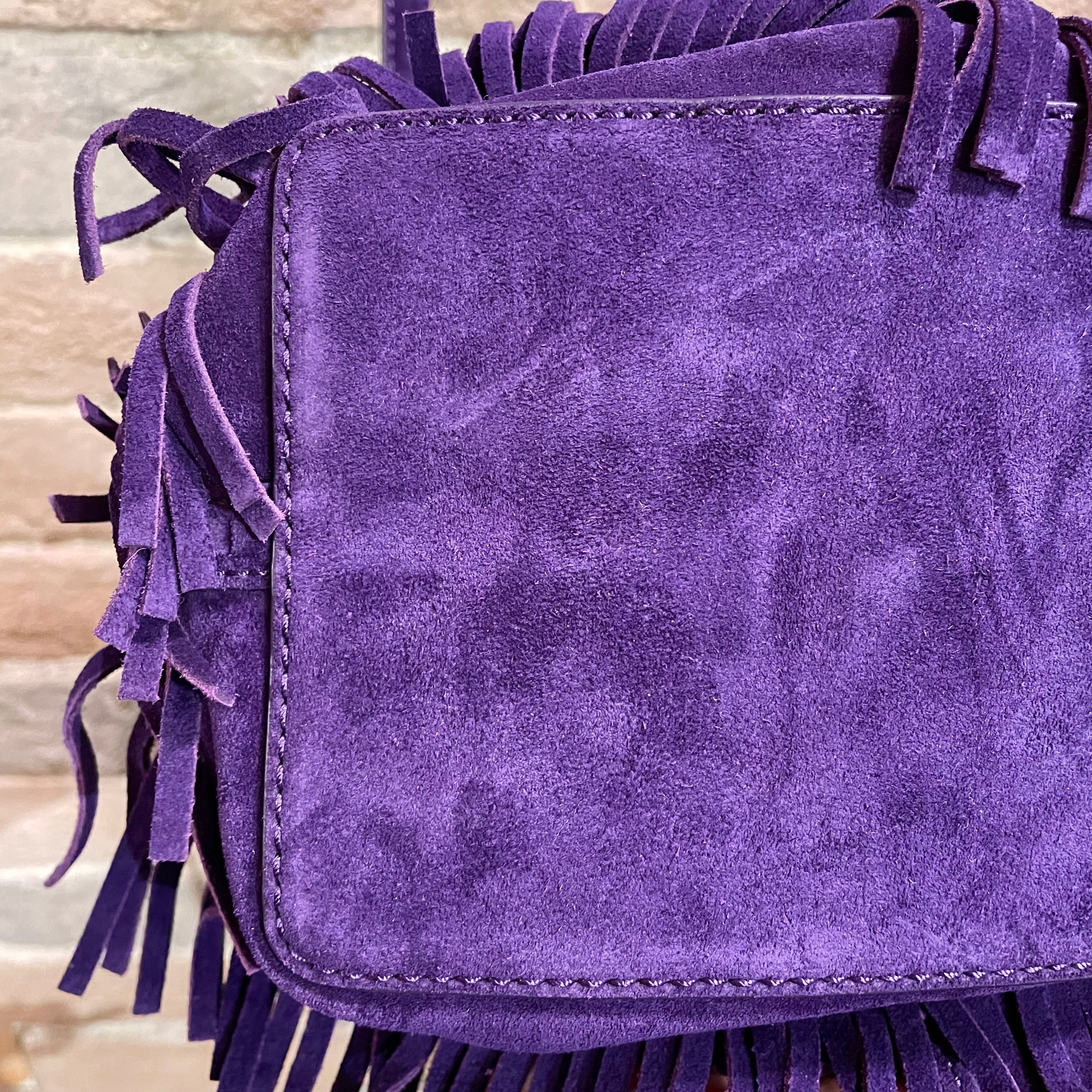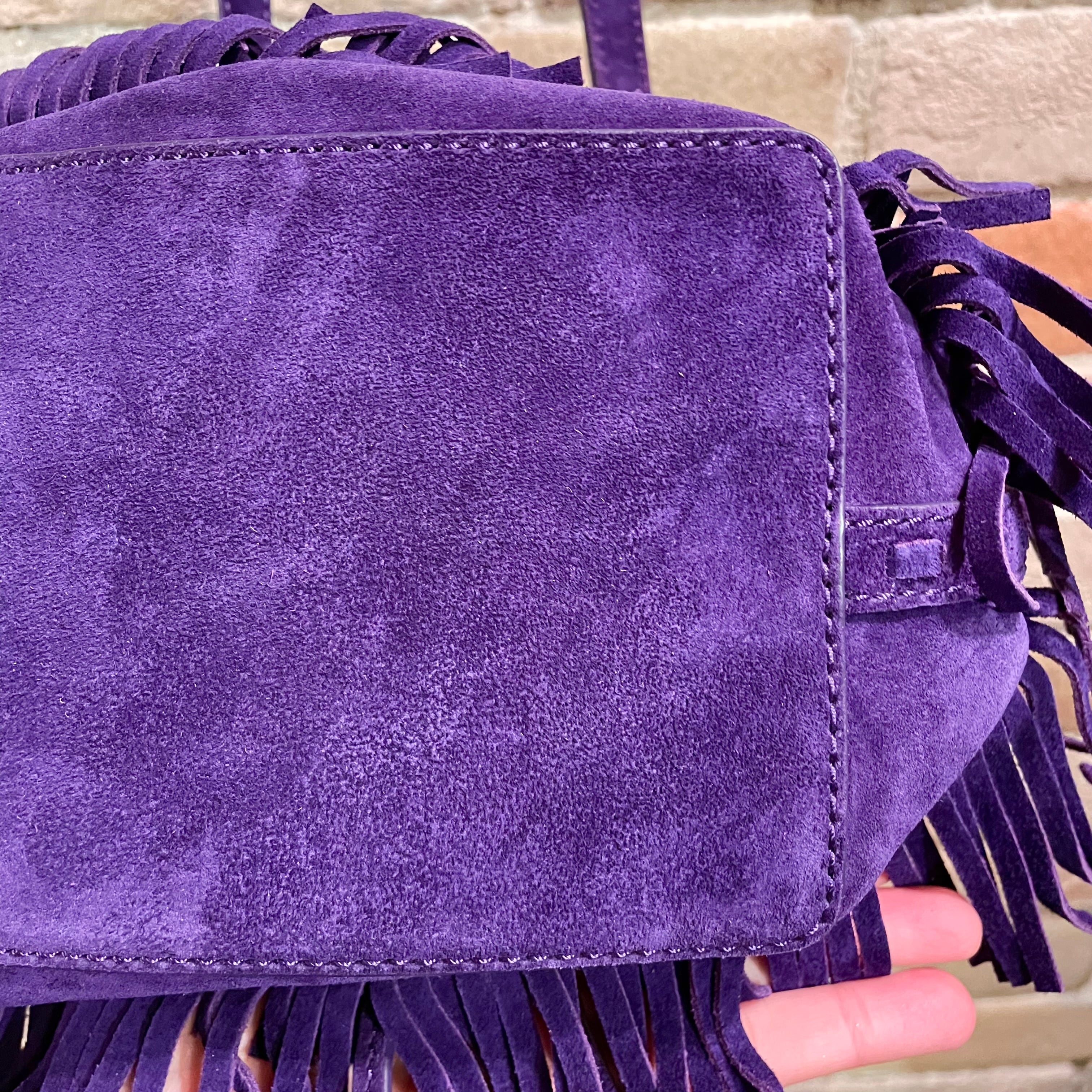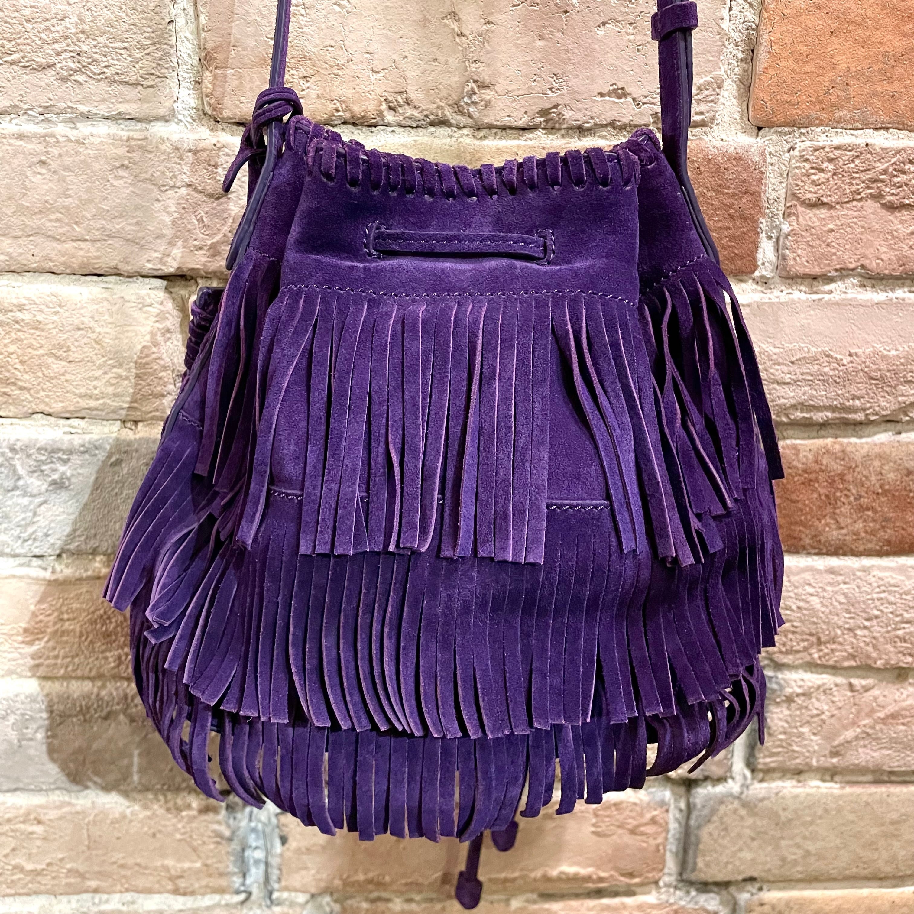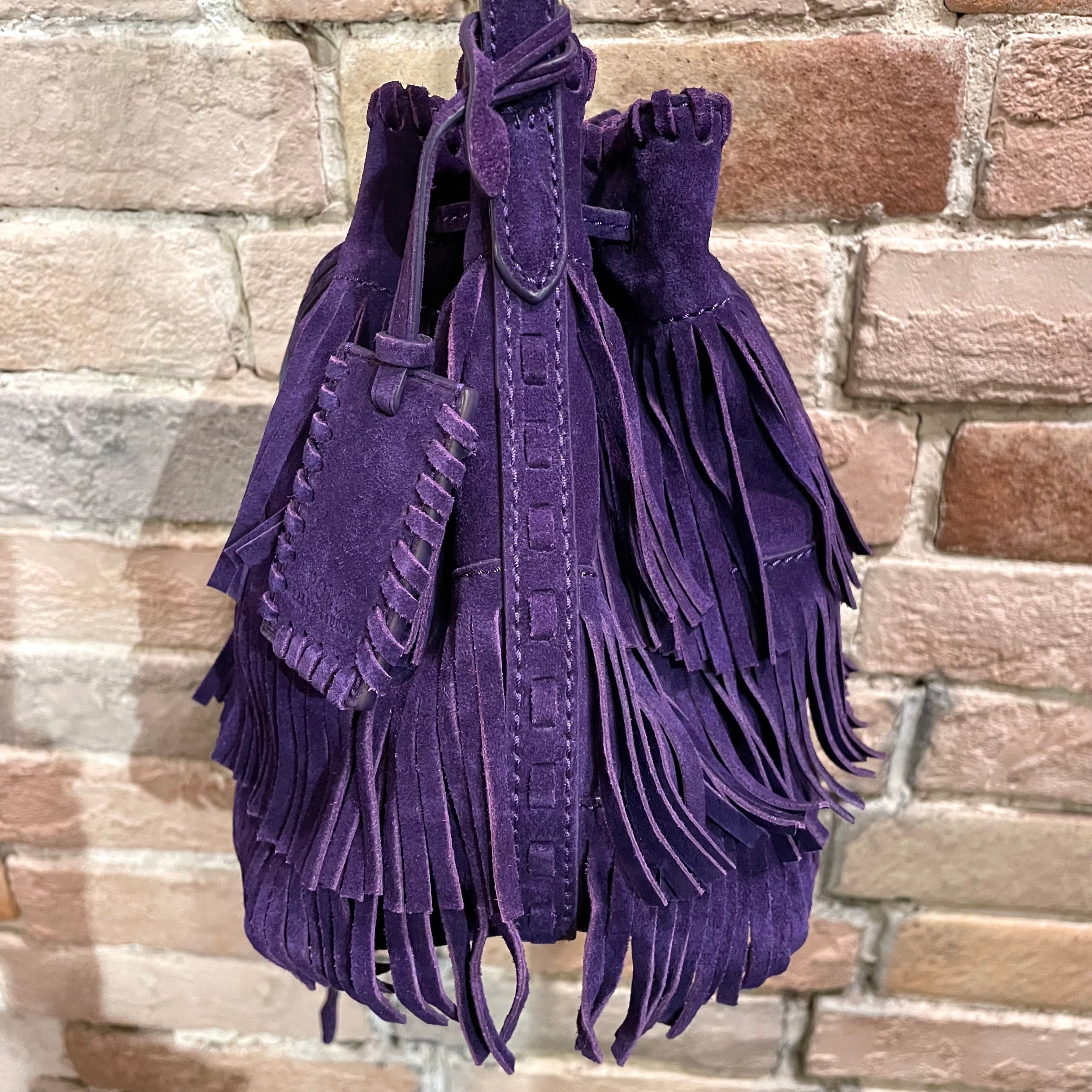 ラルフローレンの鮮やかなパープルのフリンジ巾着バッグです。