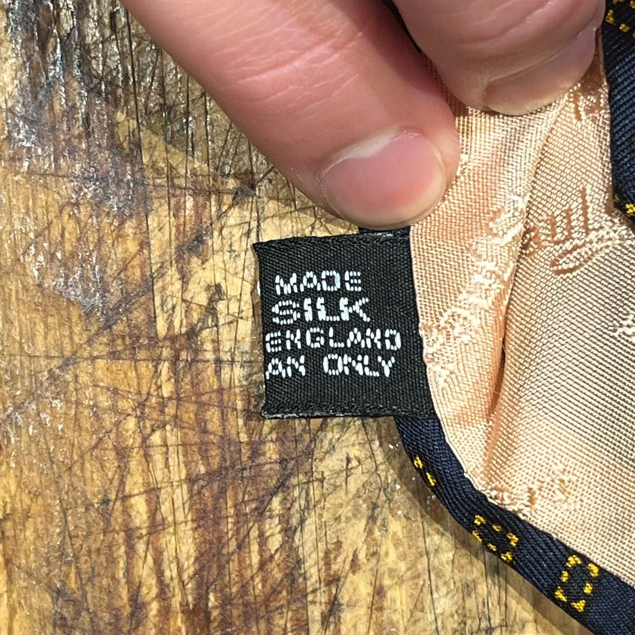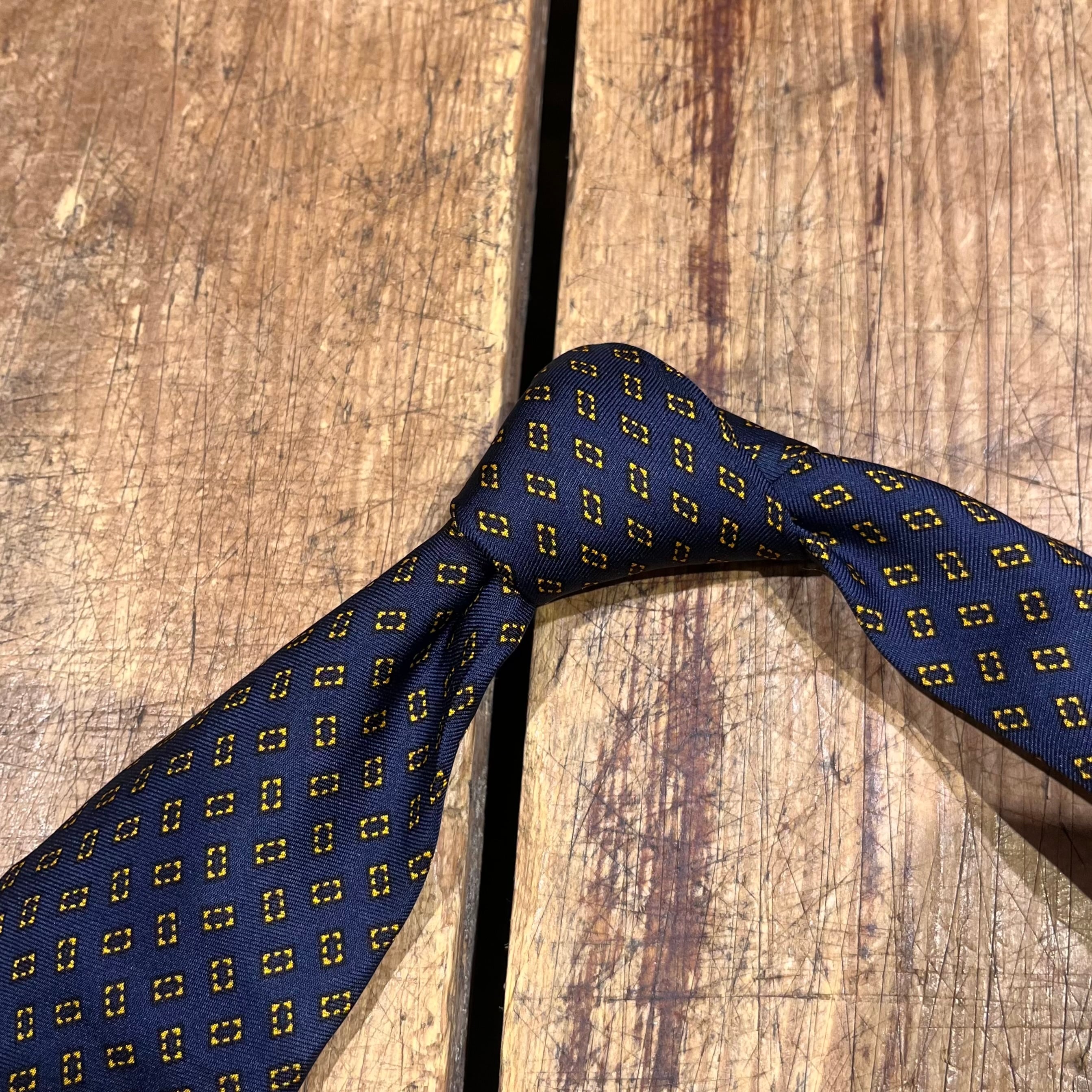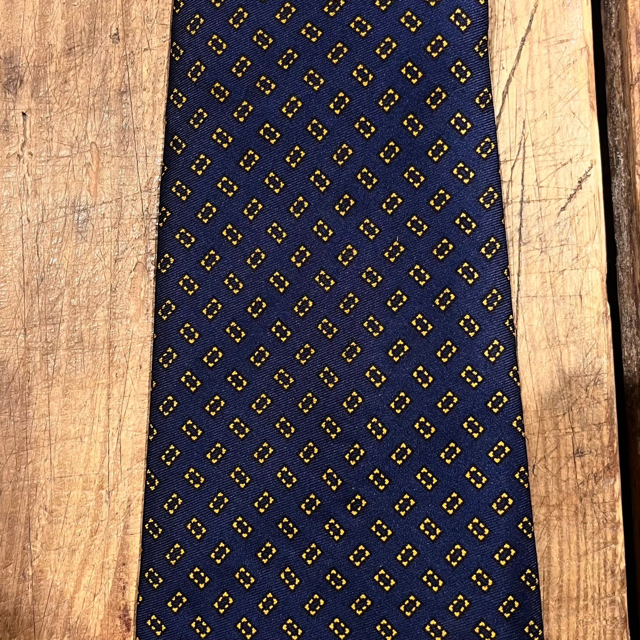 シルクの程良い艶感に落ち着いた配色が幅広いコーディネートに使用できる、イングランド製シルクネクタイ
