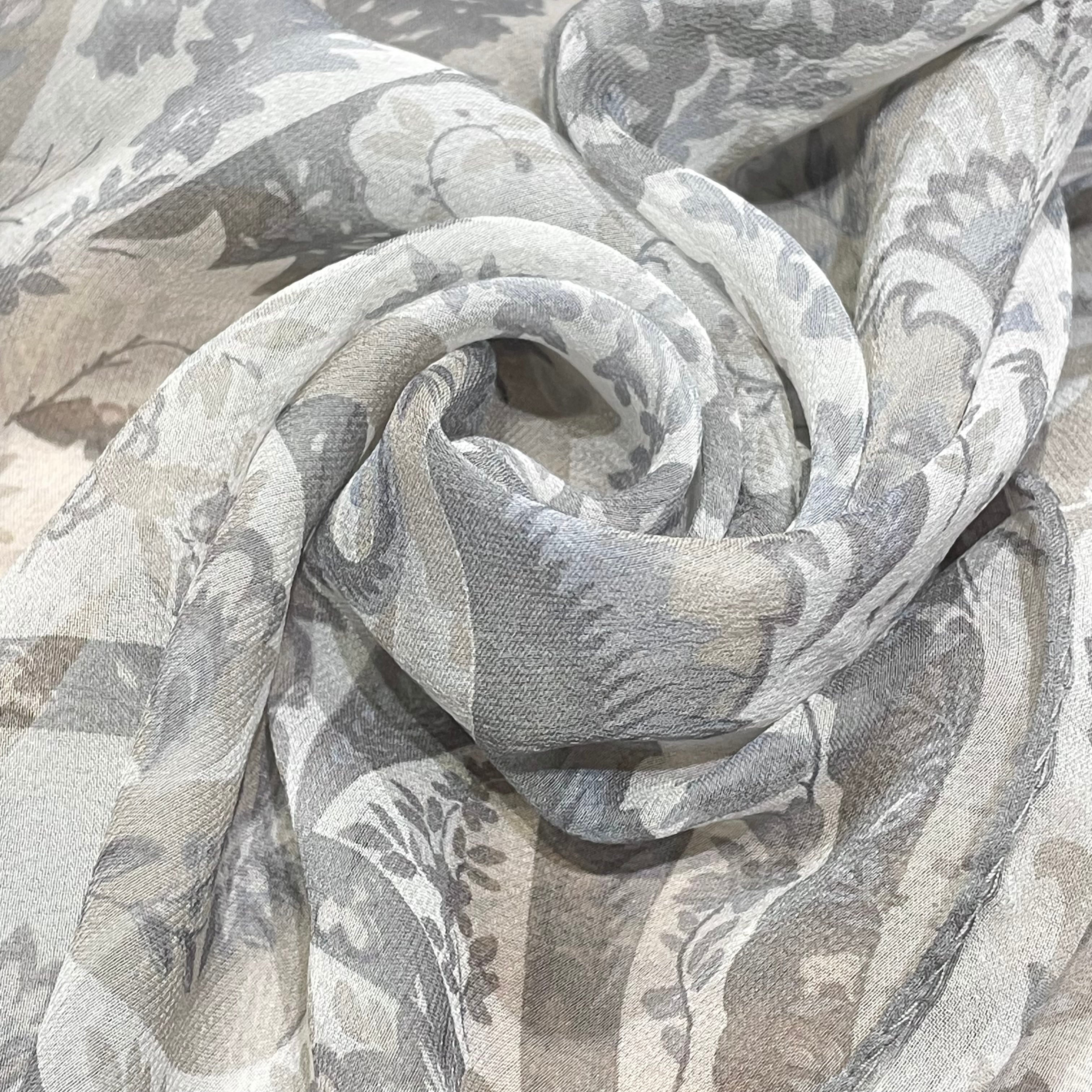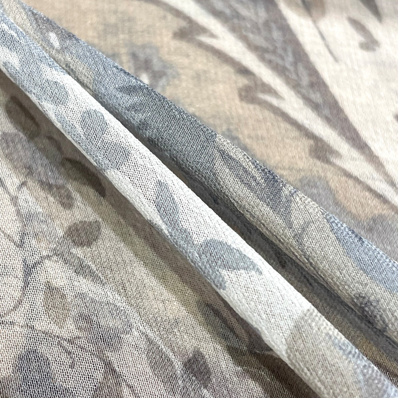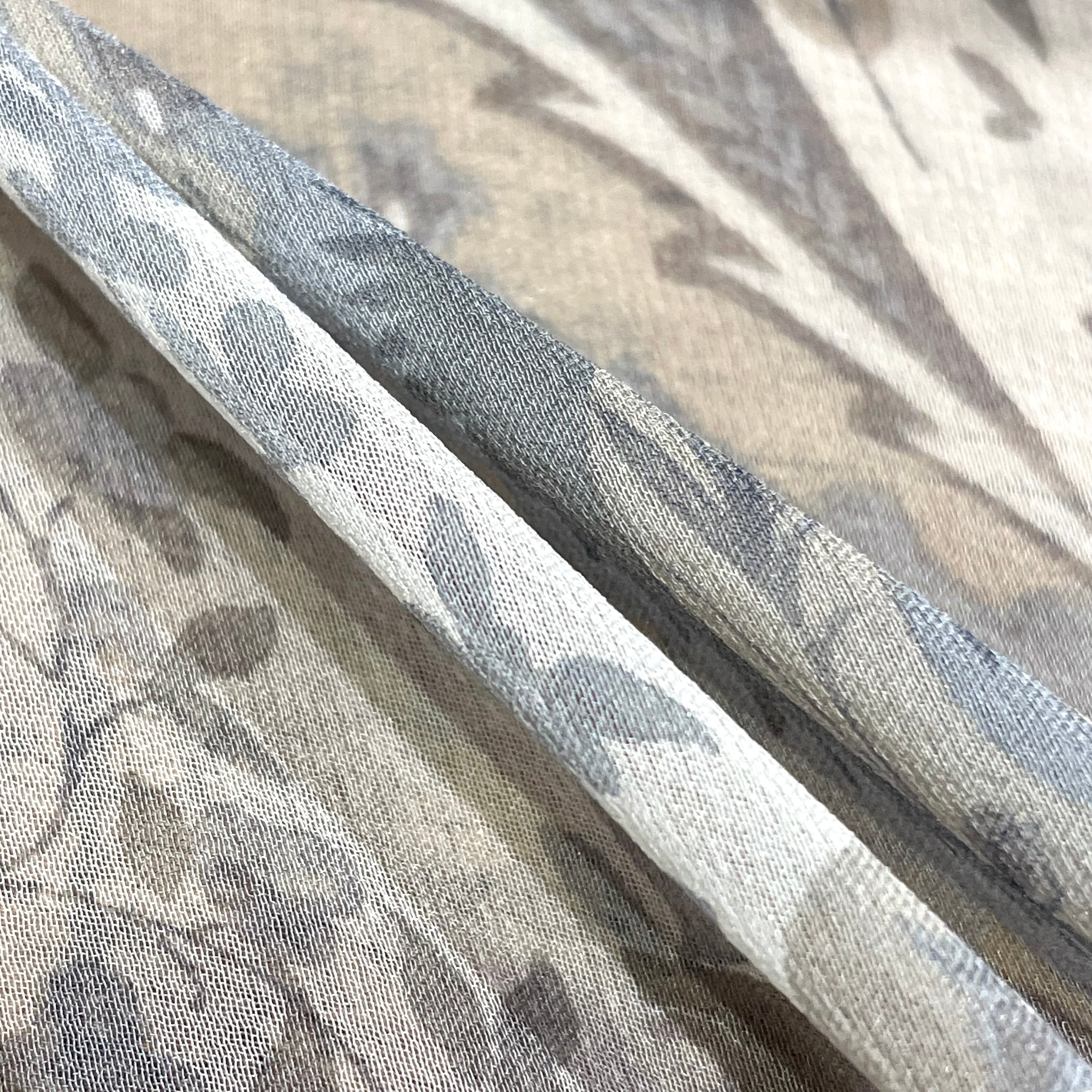 艶やかなシルク素材がコーディネートのポイントになる、花柄シルクシフォンストール