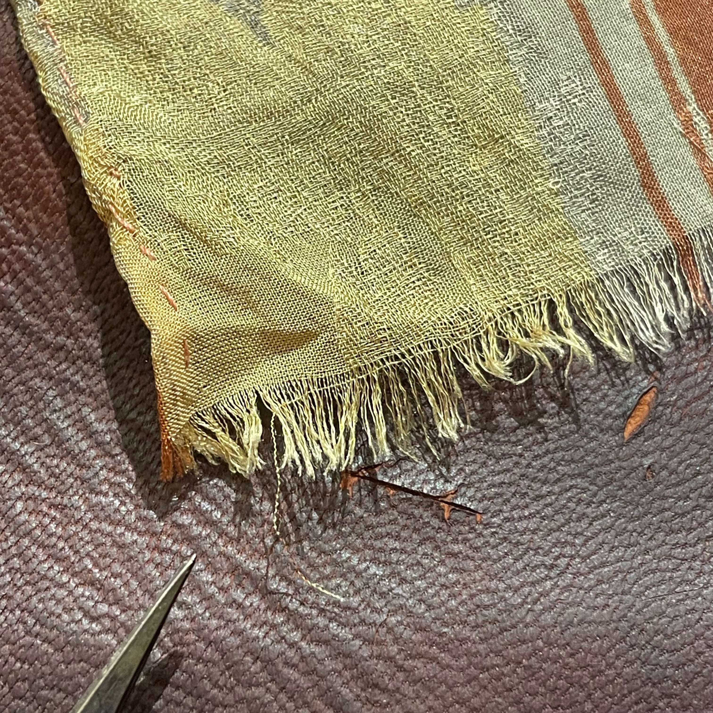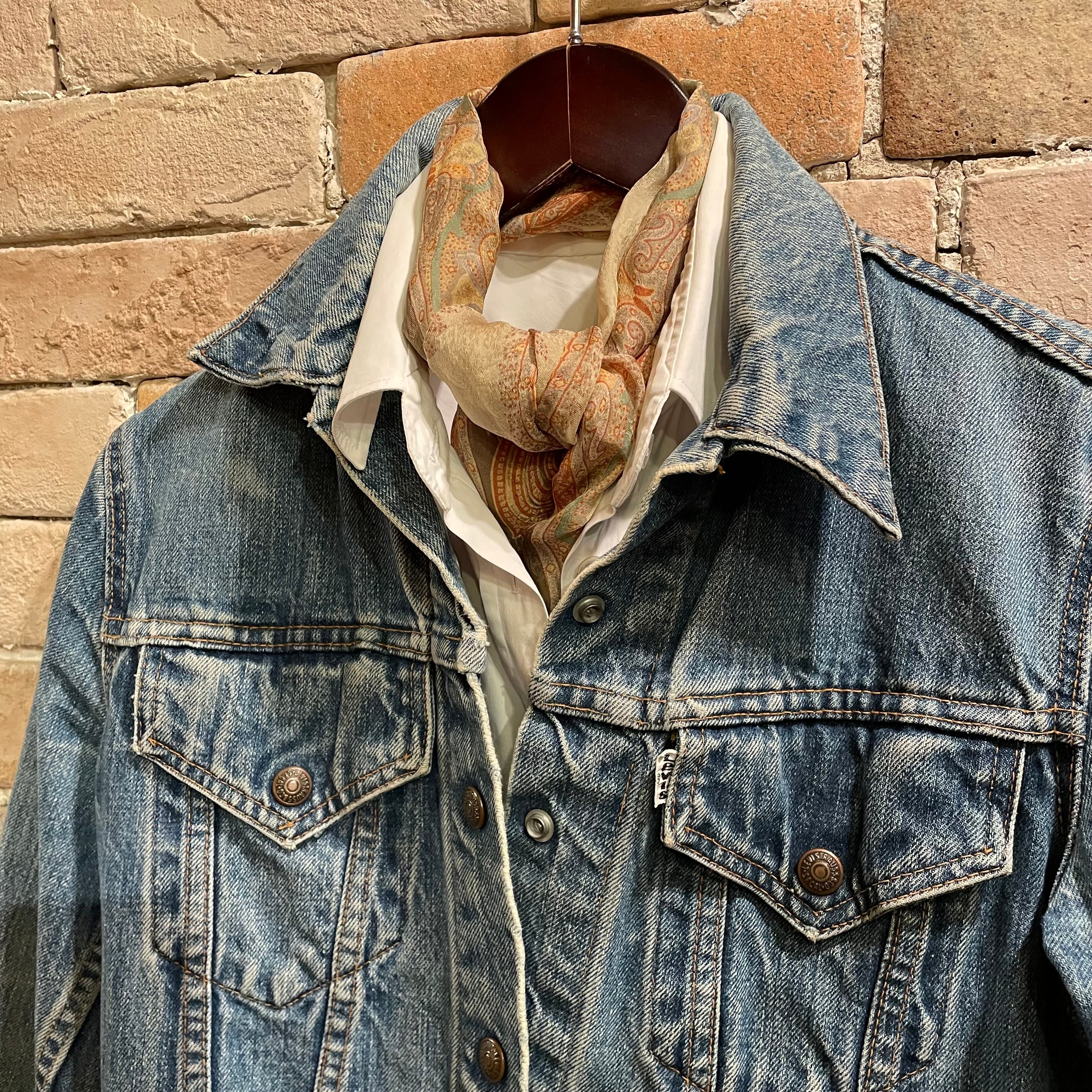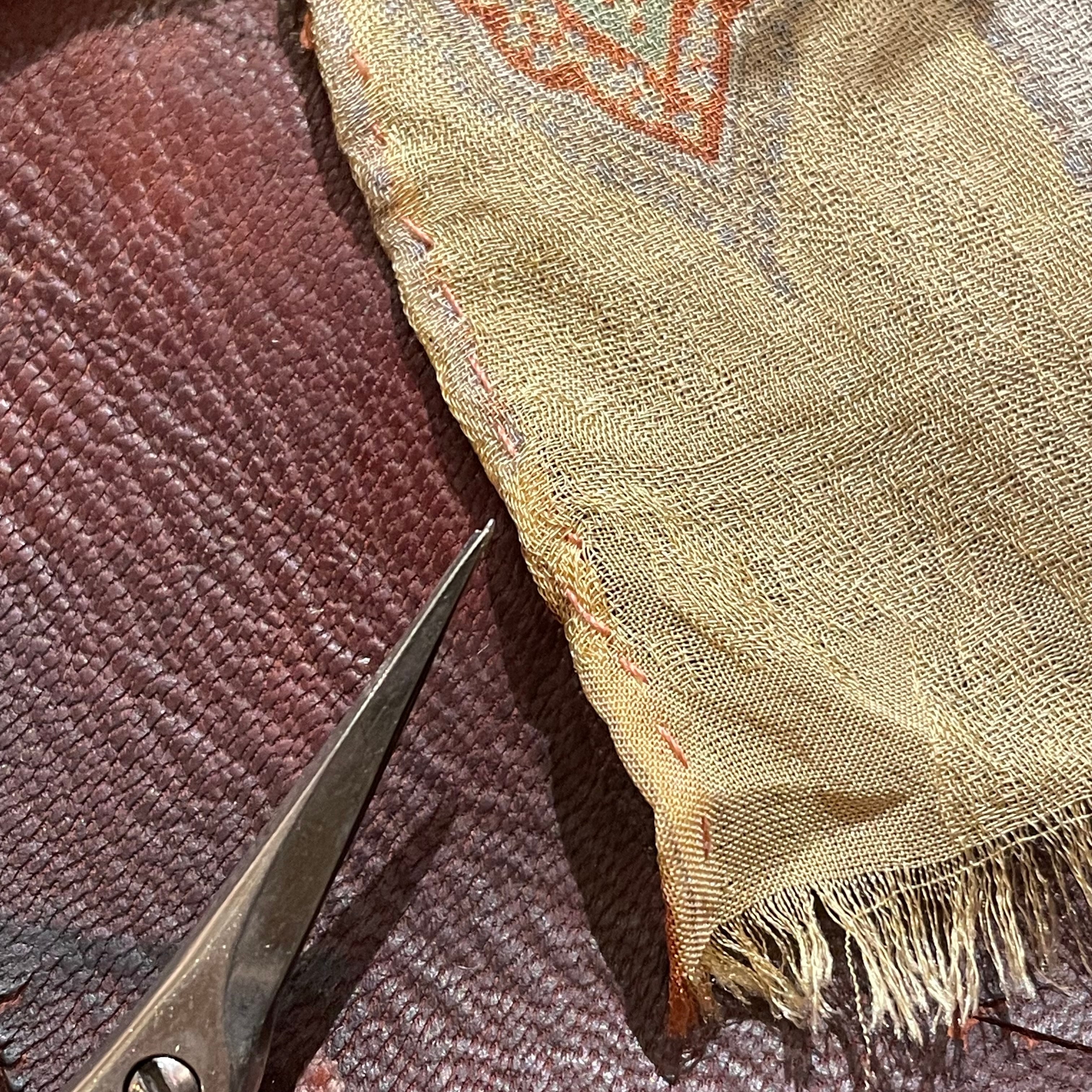 状態:USED品(中古品)端のフリンジの傷、端に長く伸びる糸ツレ、サイドのロールの直し跡、使用感がございますがストールとしてまだまだお使いいただける状態。