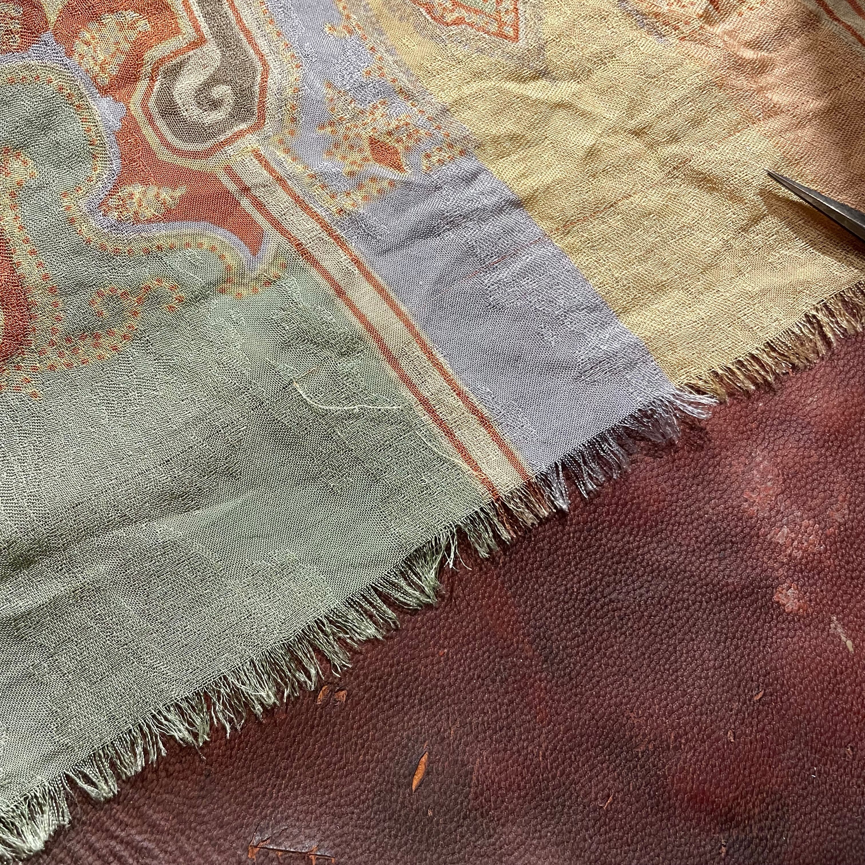 全体の色のペイズリー柄とは別で、織り柄でもペイズリー柄が全体にあしらわれ光の加減によりペイズリー柄が浮き出て見えます。