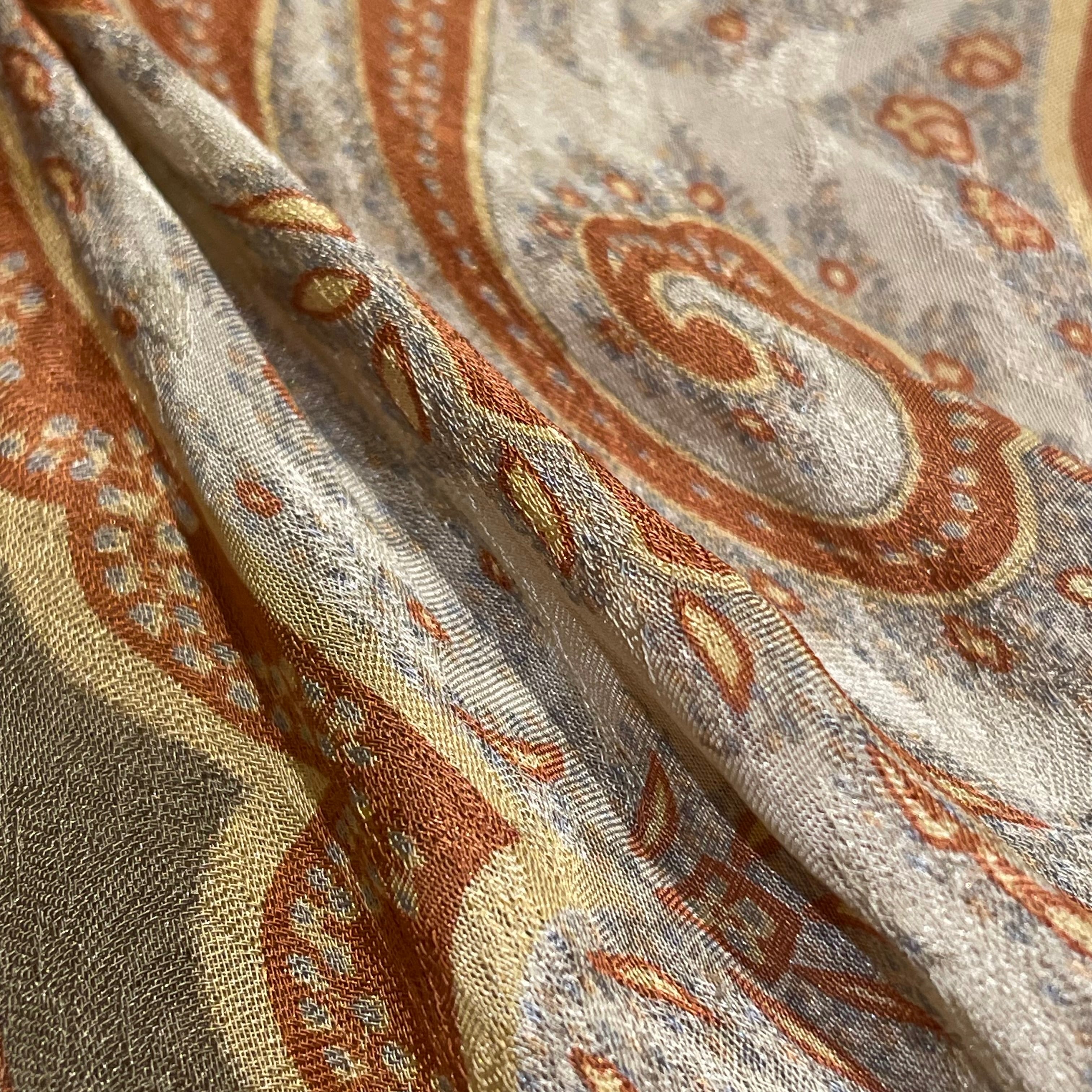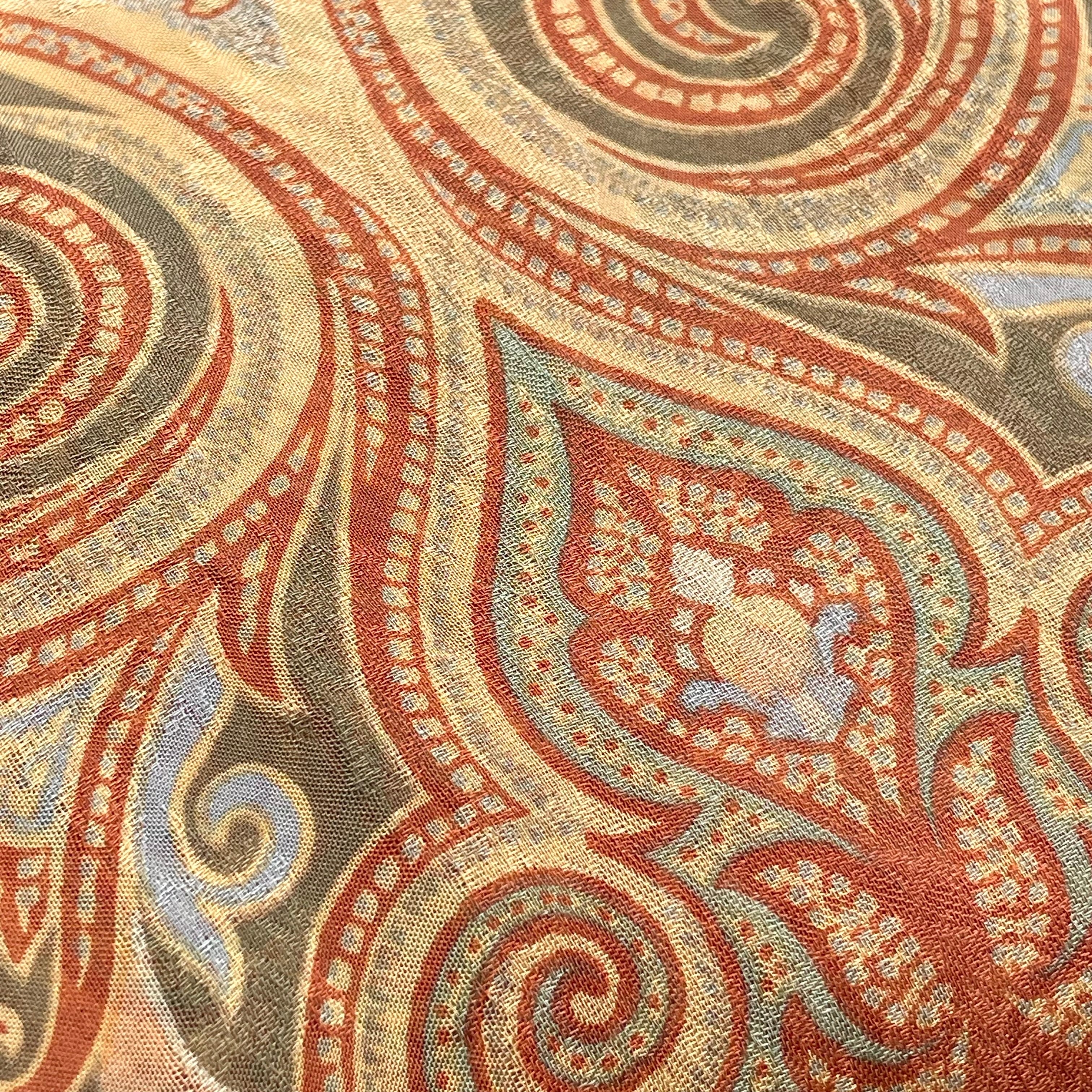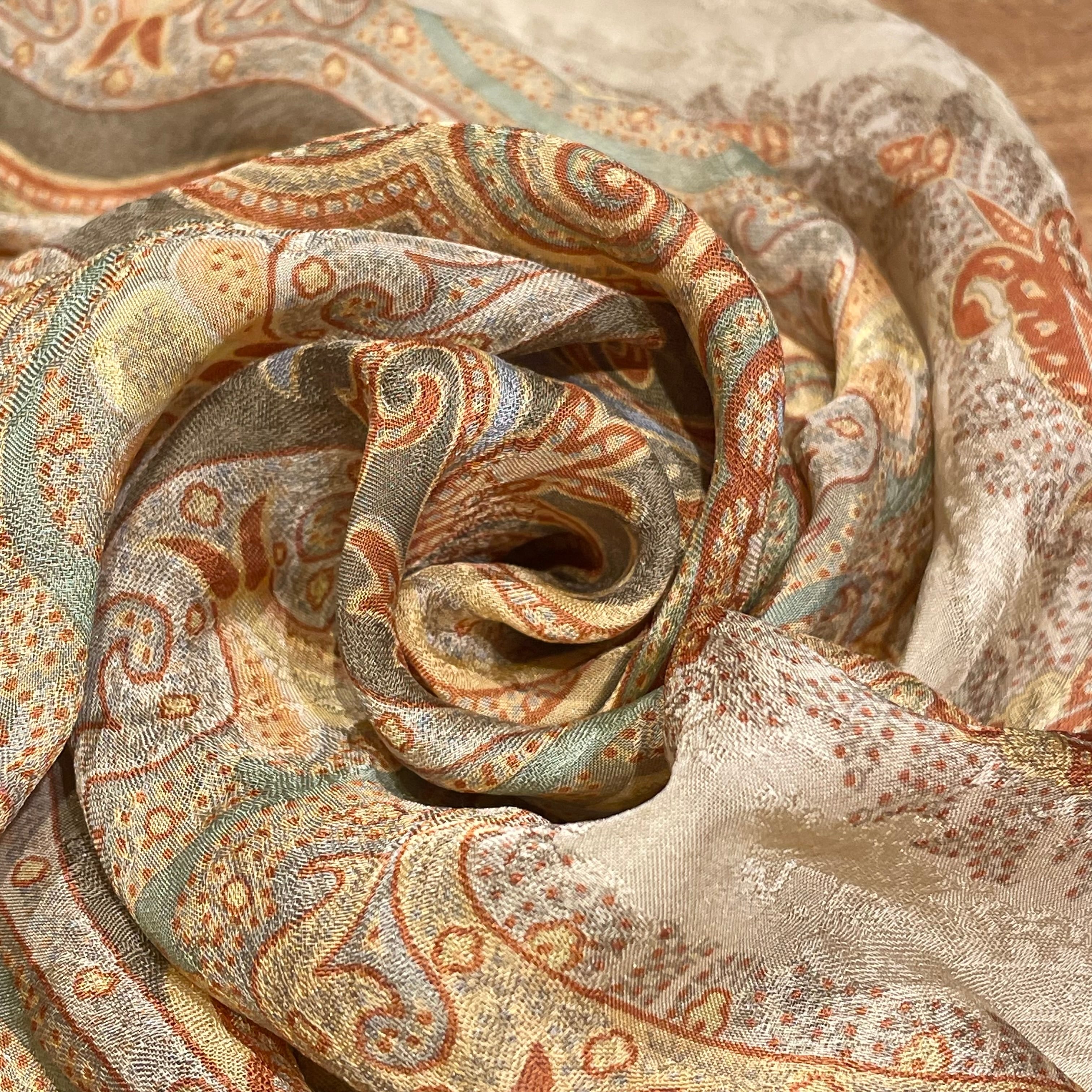 シルク100%の軽やかなシフォン素材のペイズリー柄ストールです。