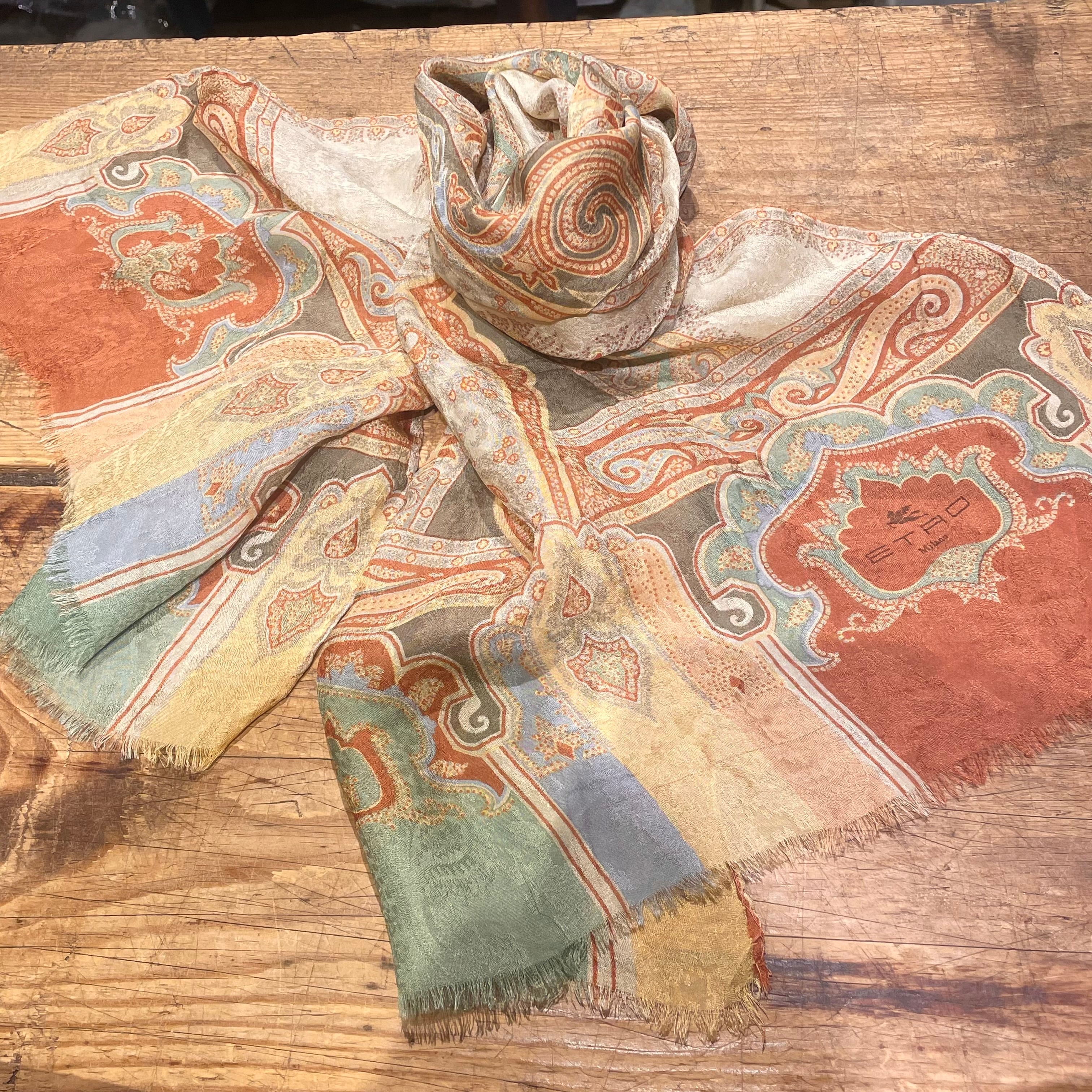 ETRO "silk stole" イタリア製 シルク100% ペイズリー柄ストール シフォンスカーフ エトロ